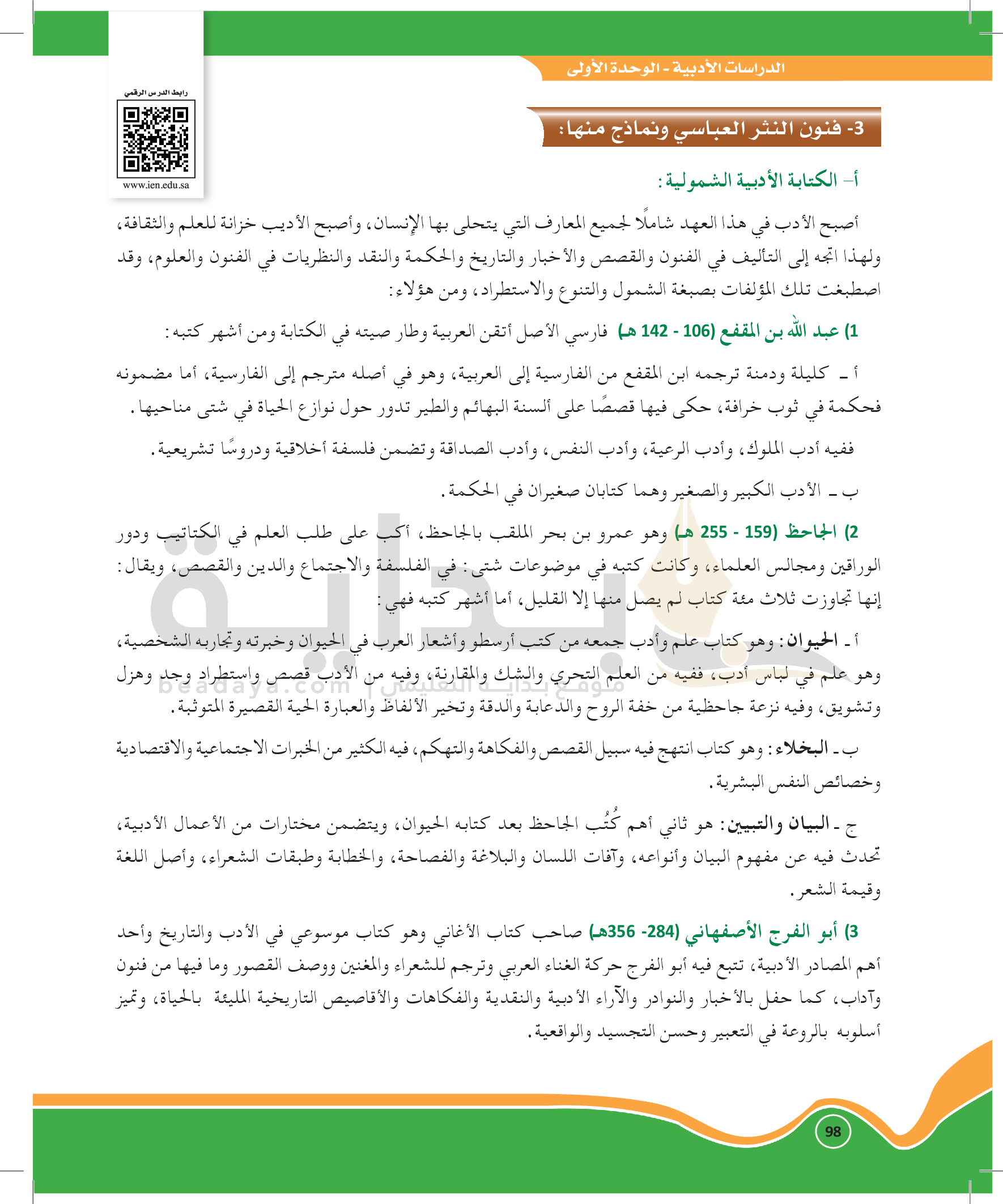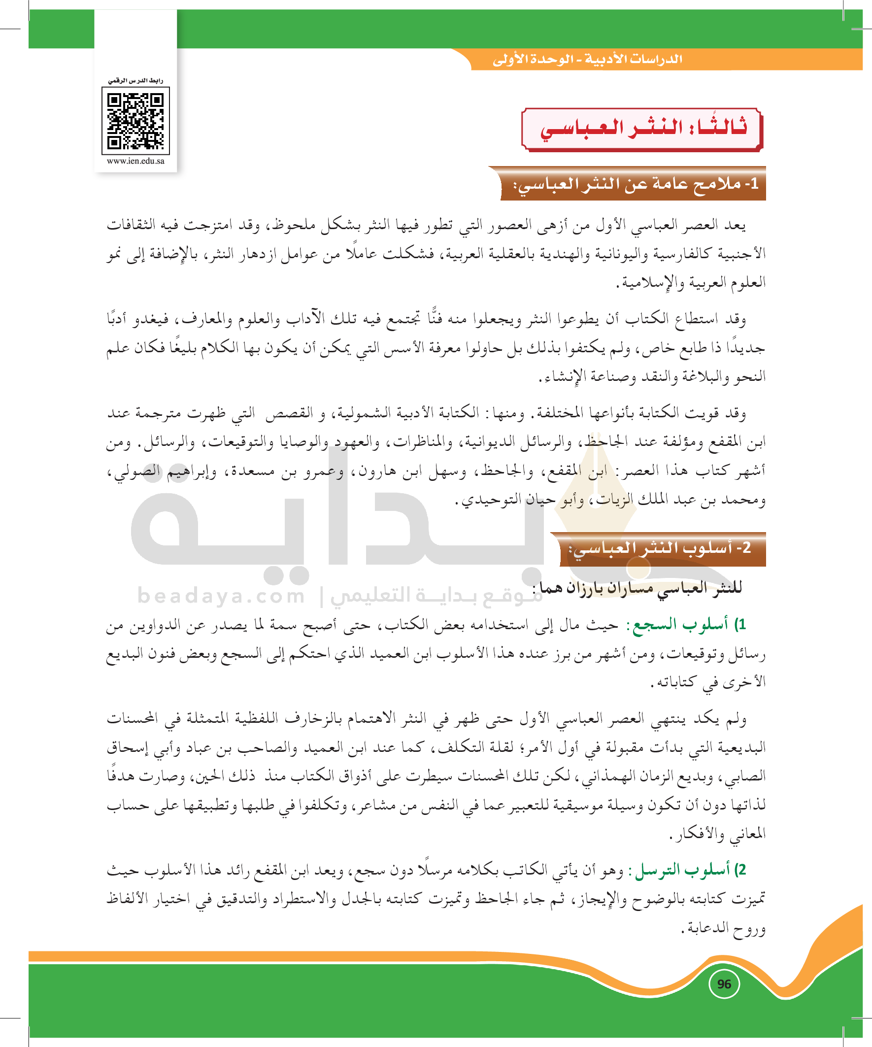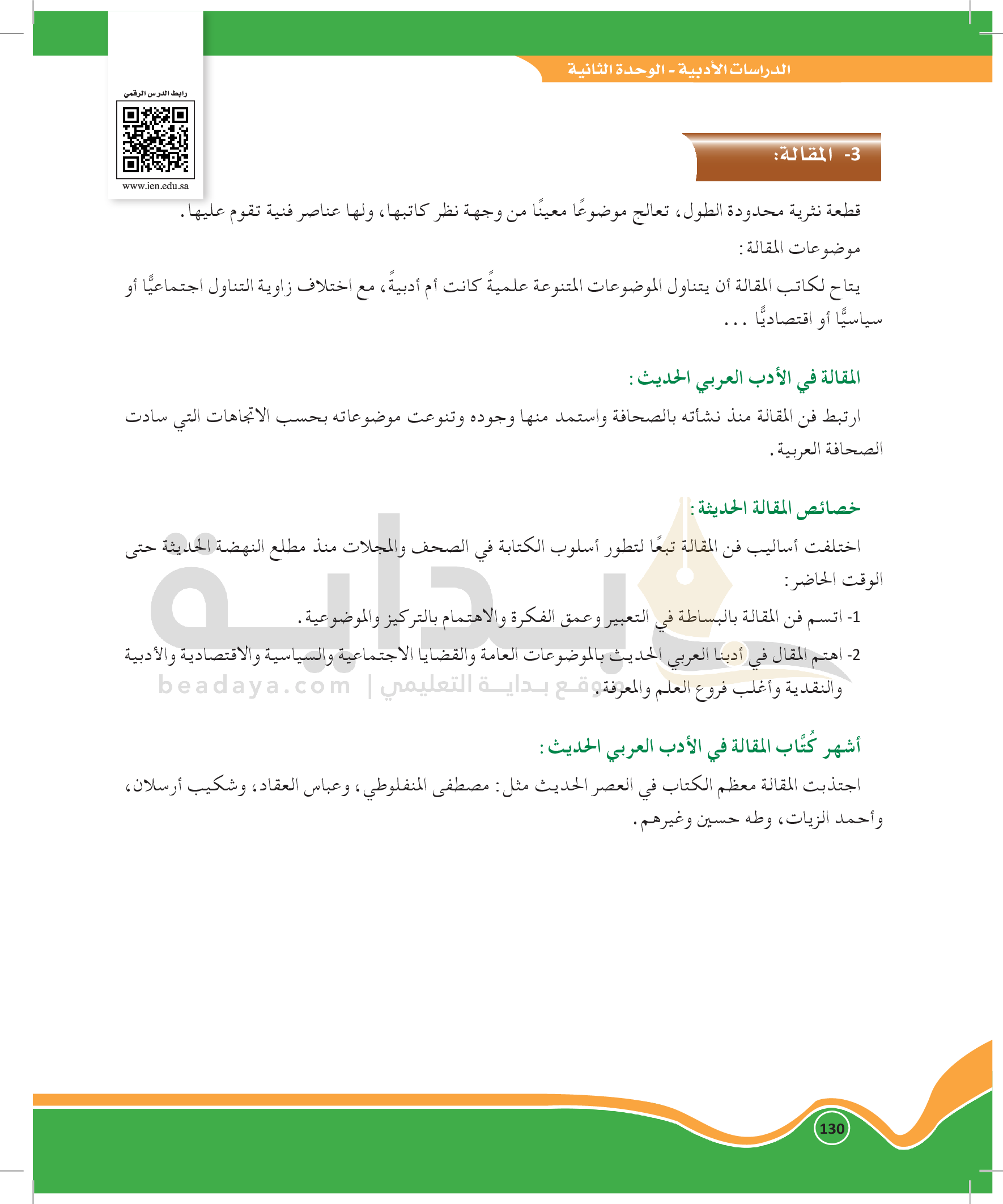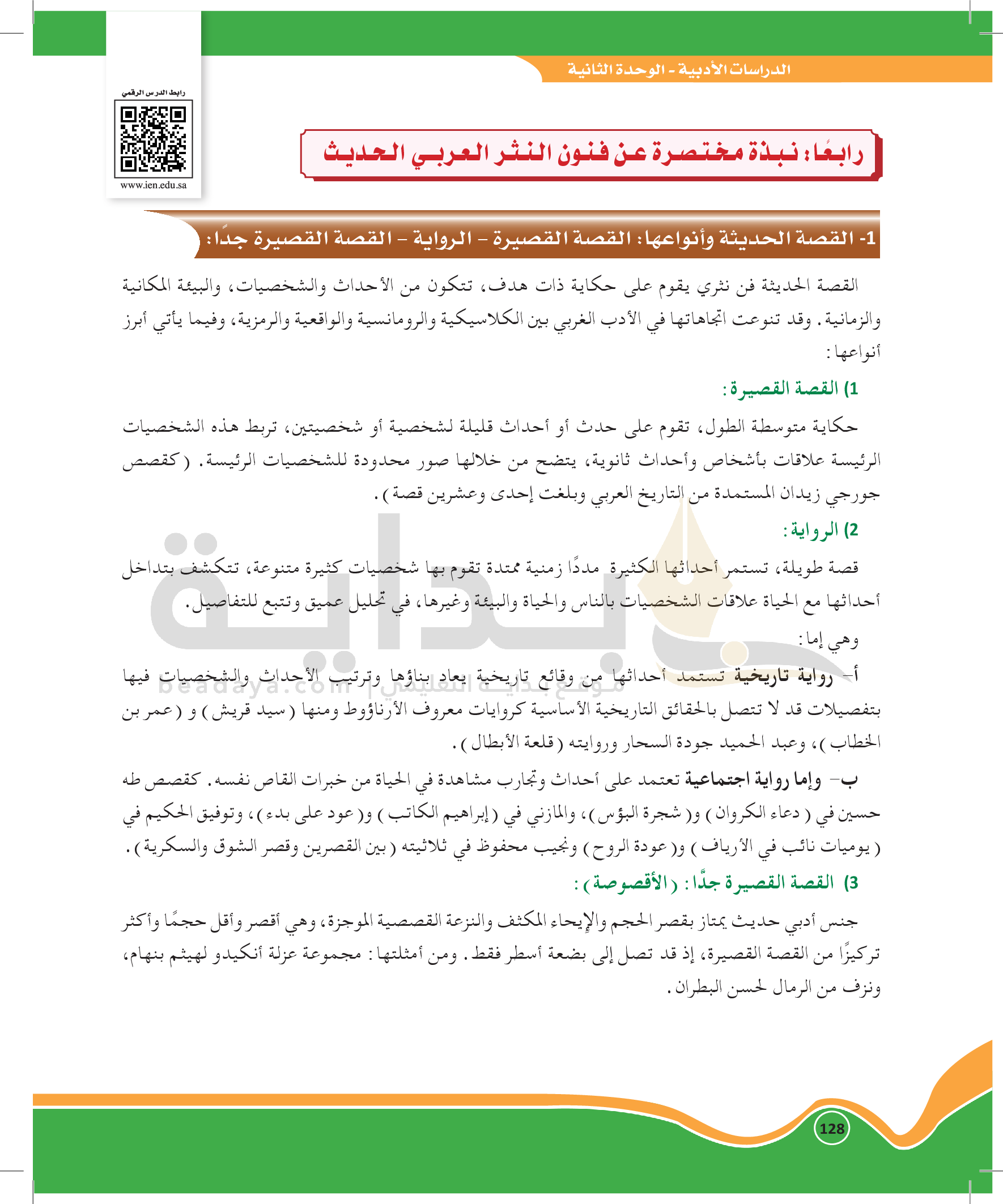 رابعاً: نبذة مختصرة عن فنون النثر العربي الحديث.