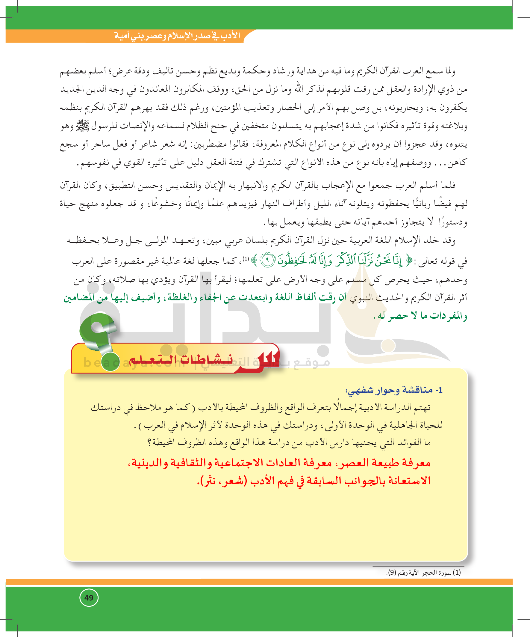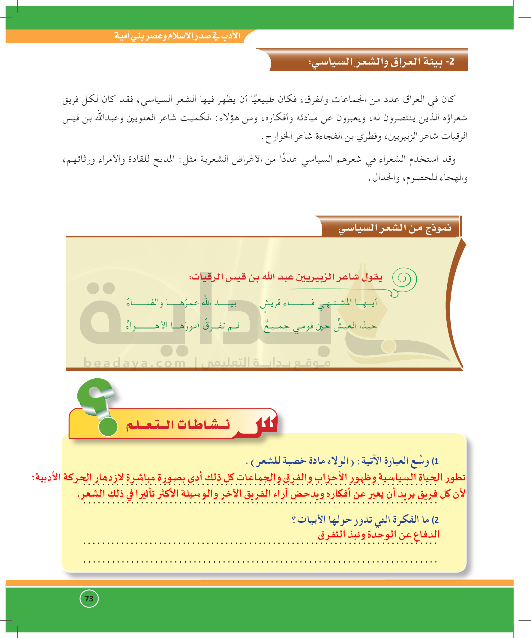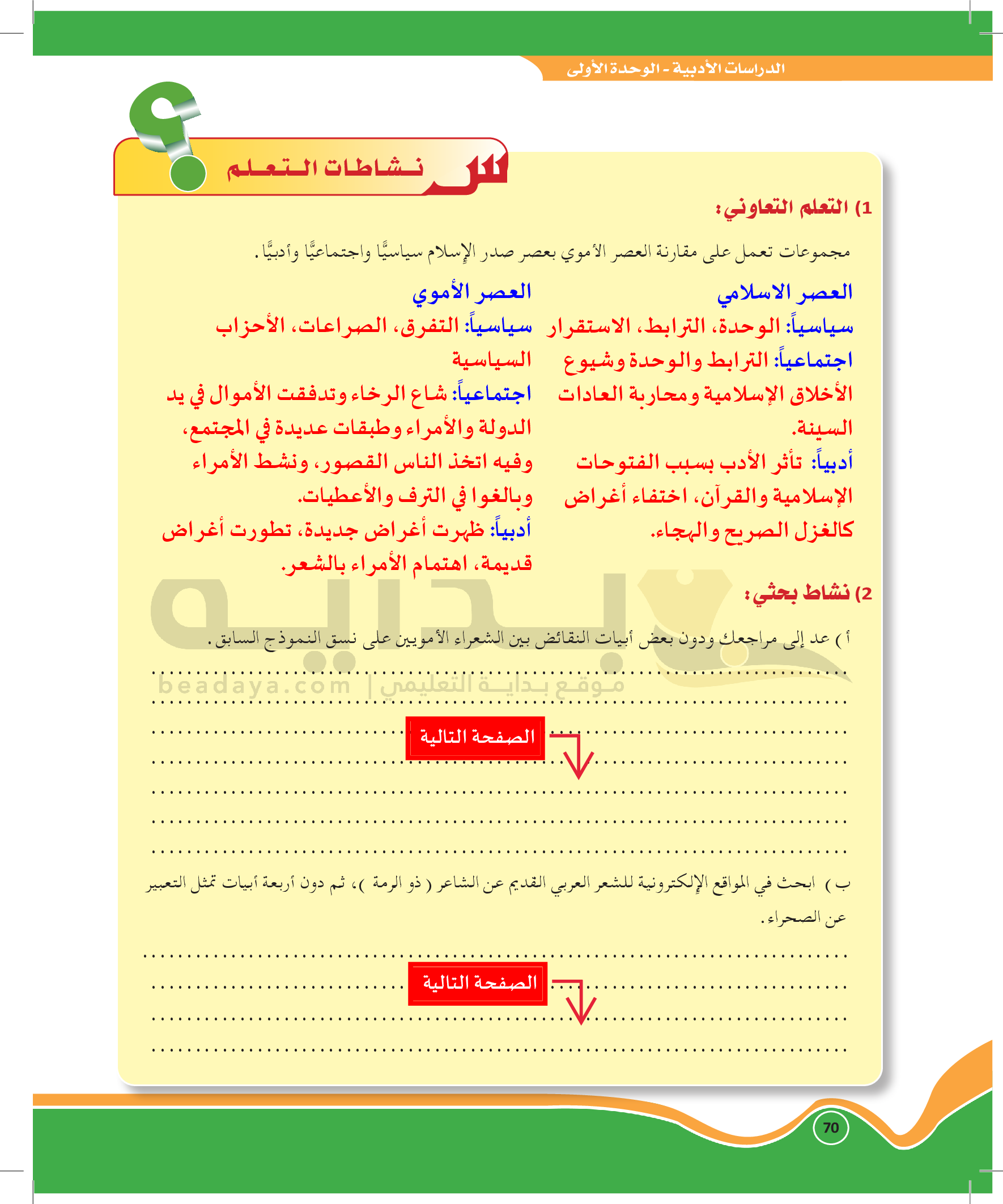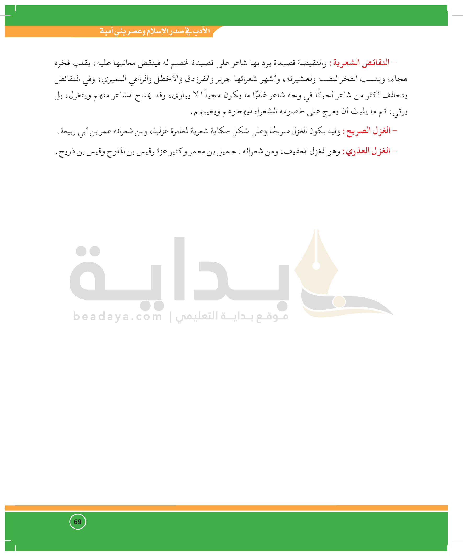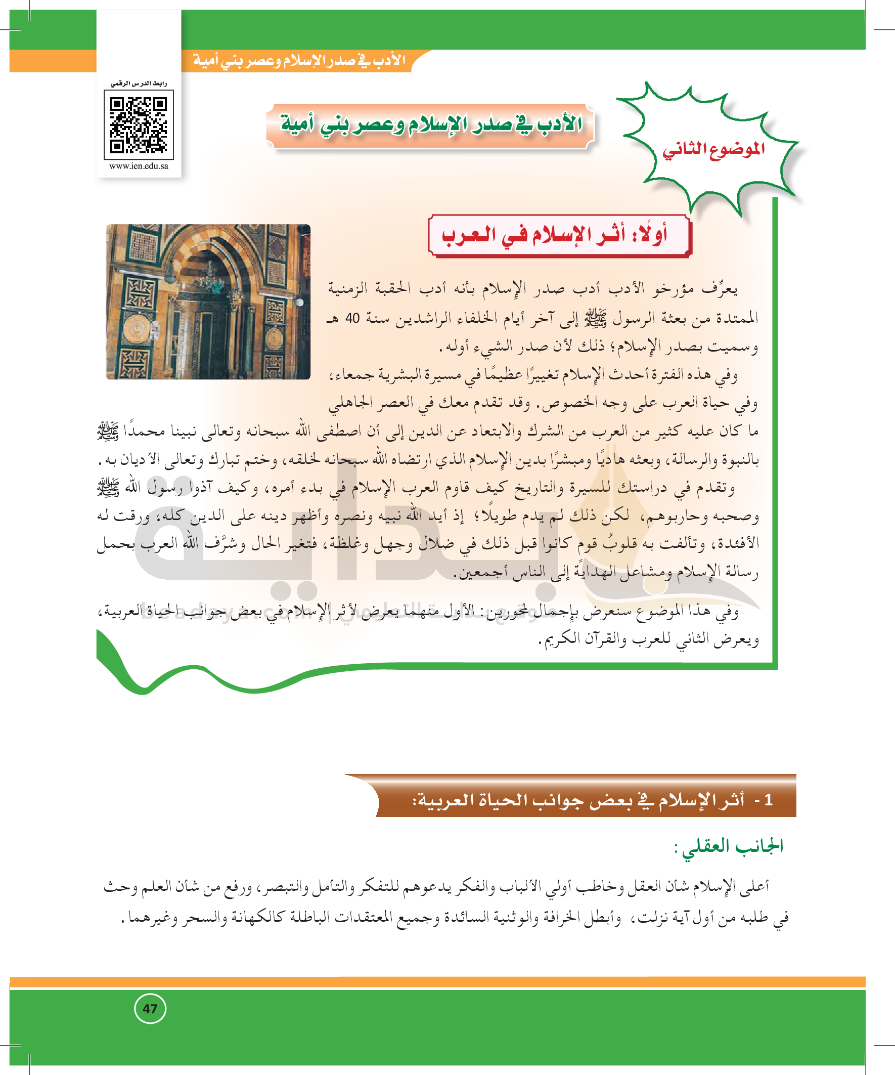 الموضوع الثاني: الأدب في صدر الإسلام وعصر بني أمية