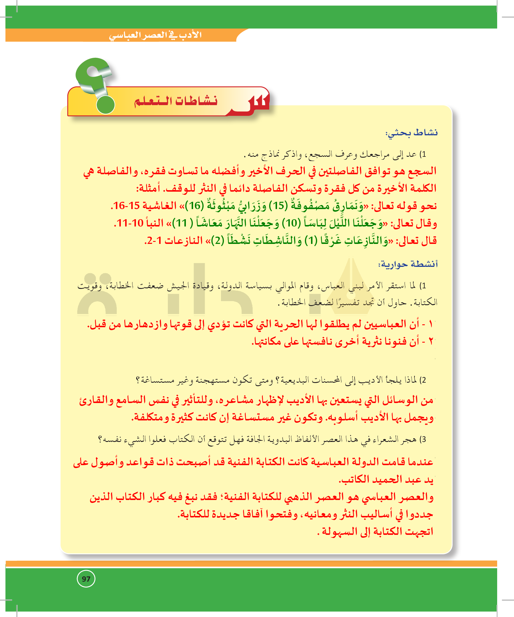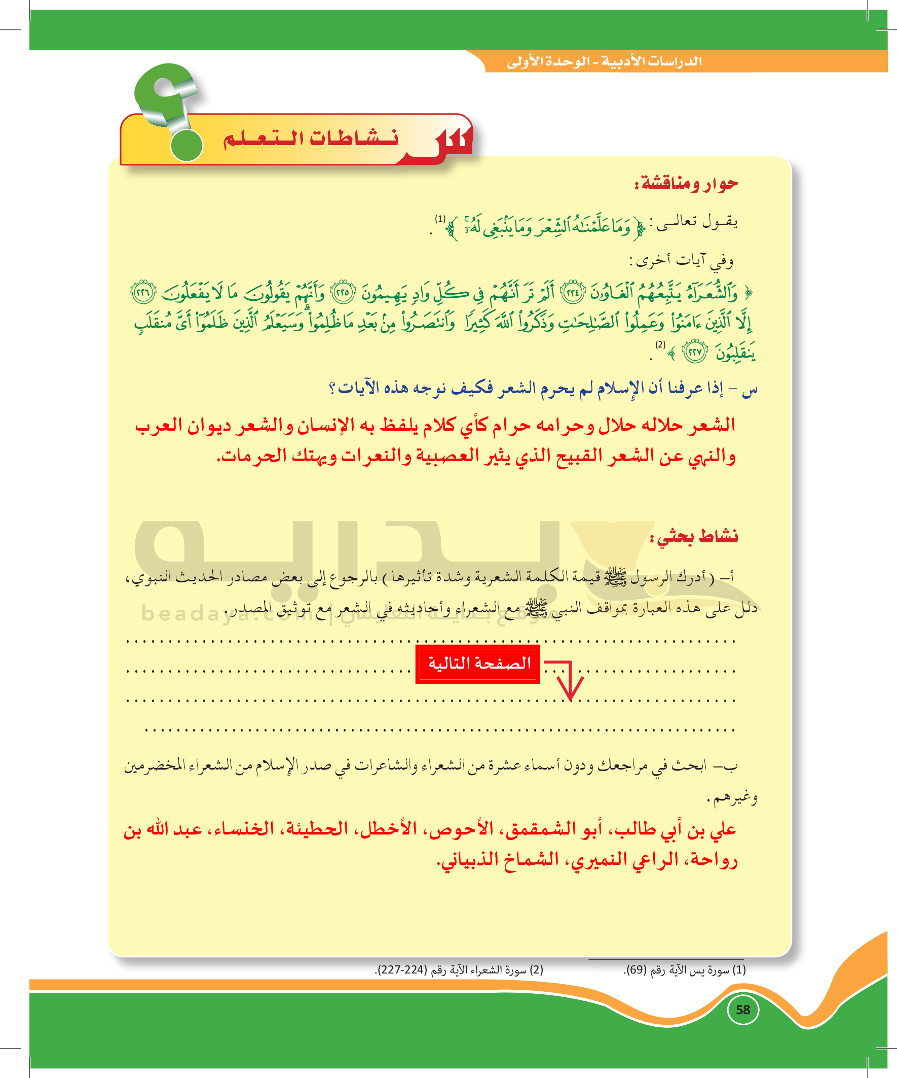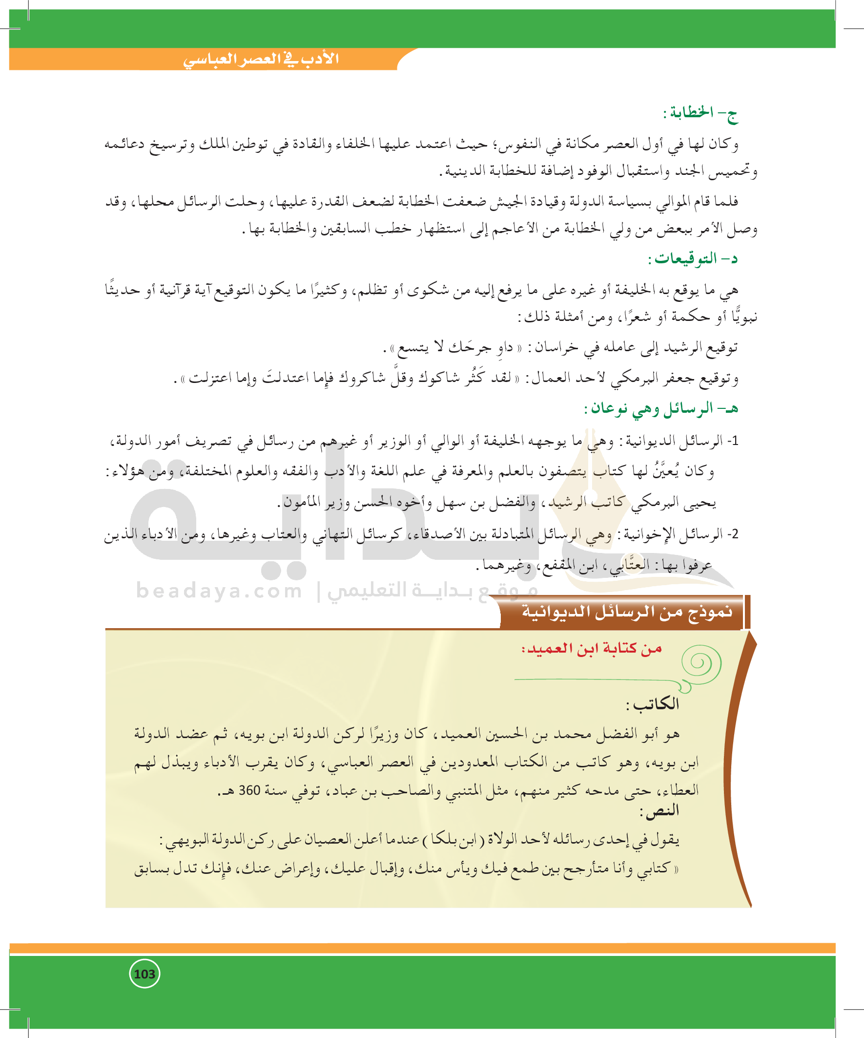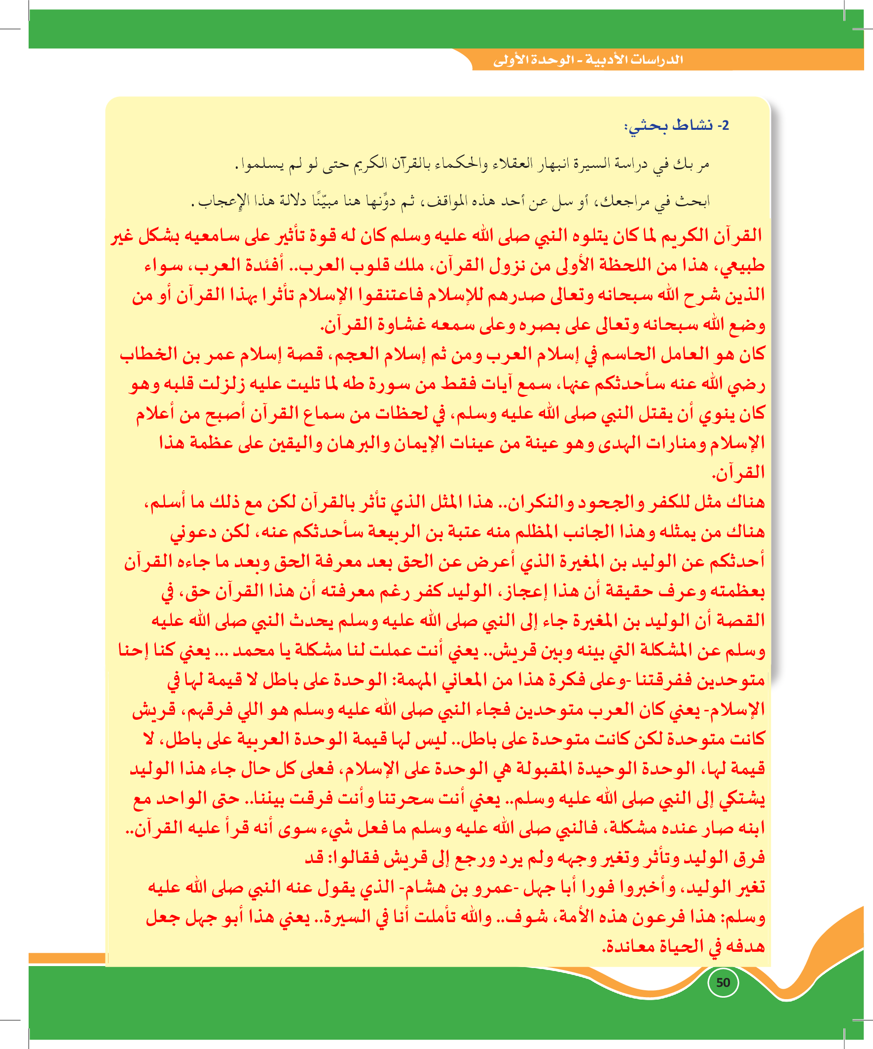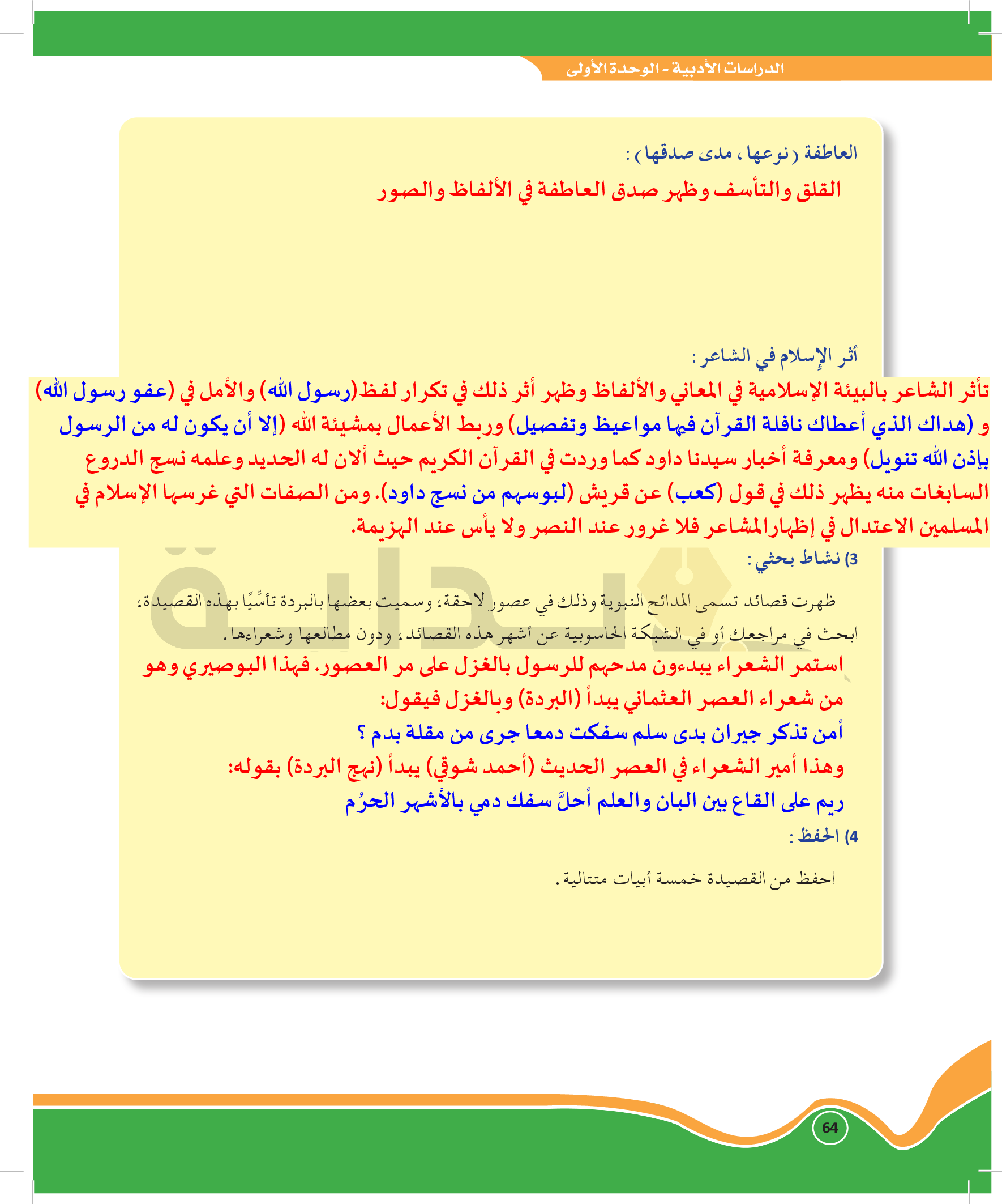 الموضوع الثاني: الأدب في صدر الإسلام وعصر بني أمية