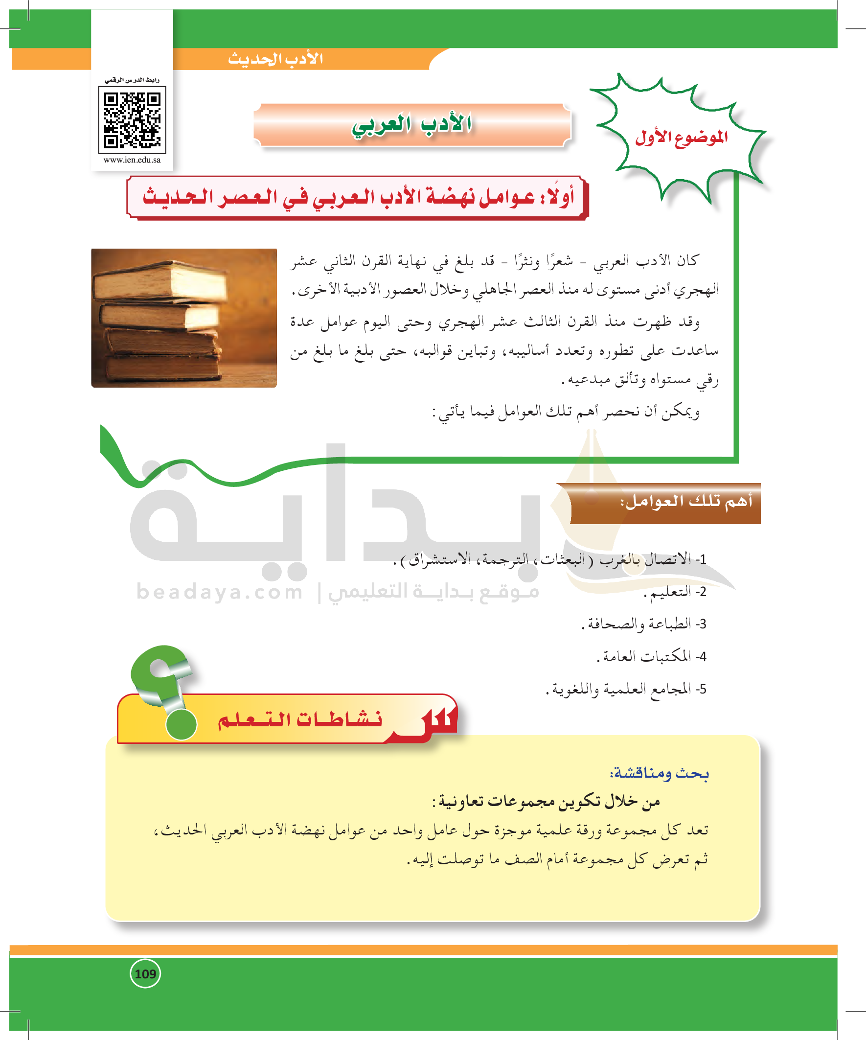 أولاً: عوامل نهضة الأدب العربي في العصر الحديث.