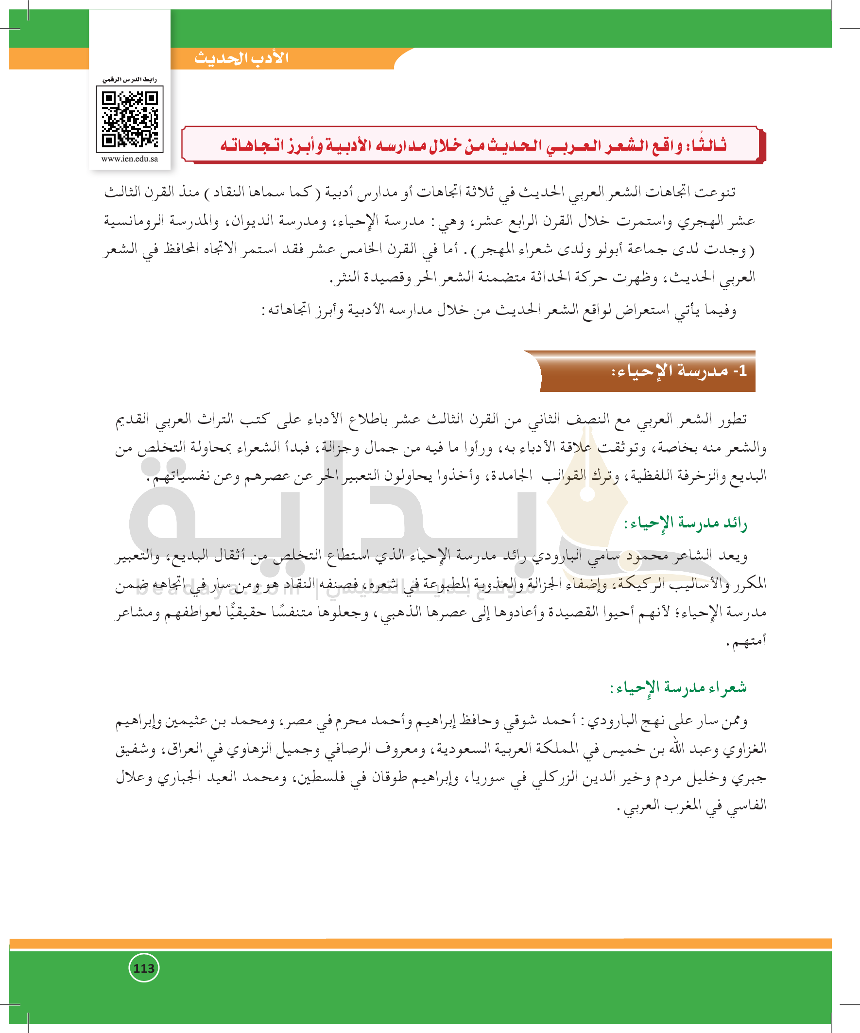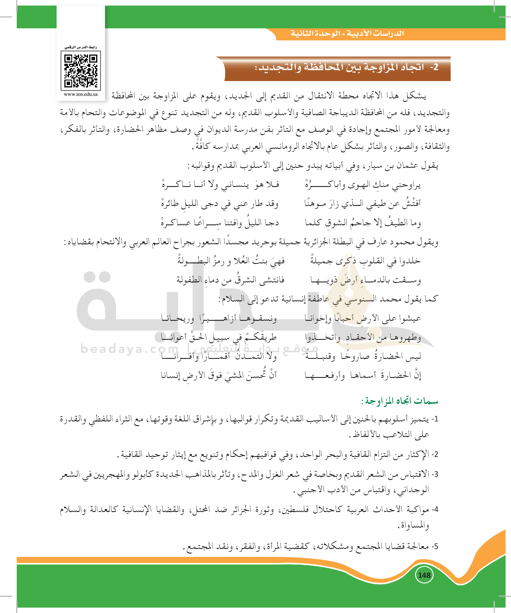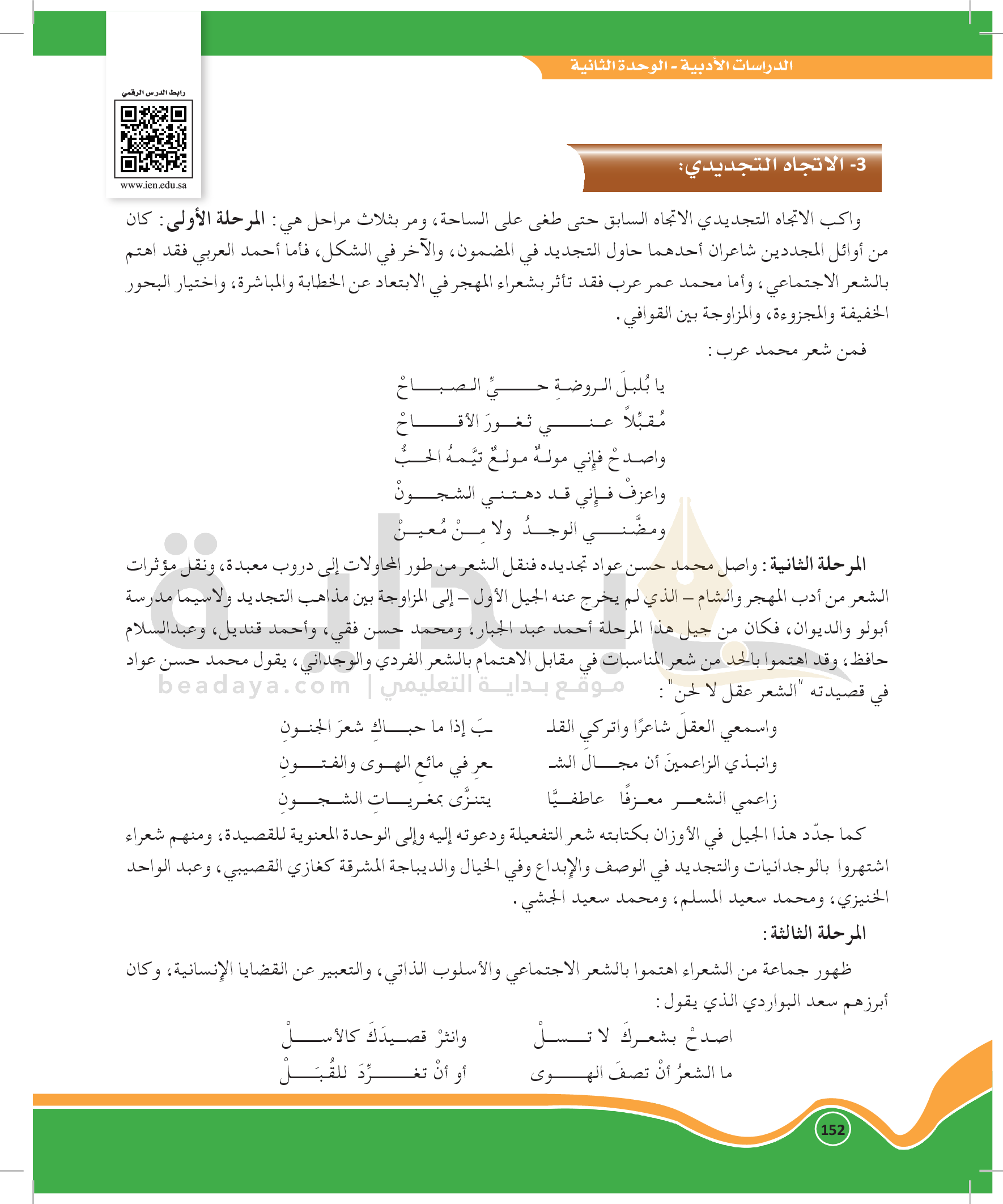 ثالثاً: واقع الشعر العربي الحديث من خلال مدارسه الأدبية وأبرز اتجاهاته.