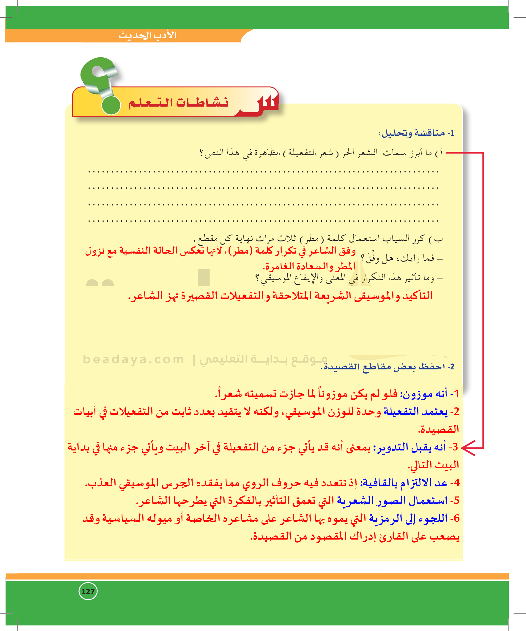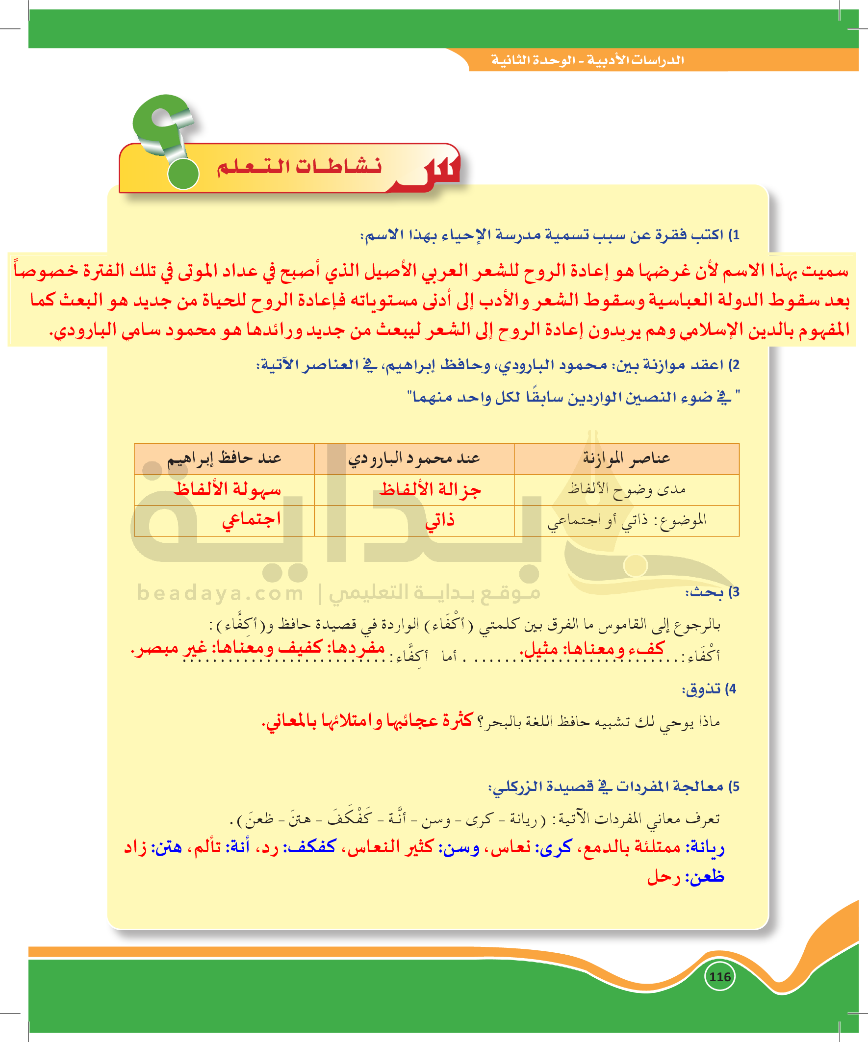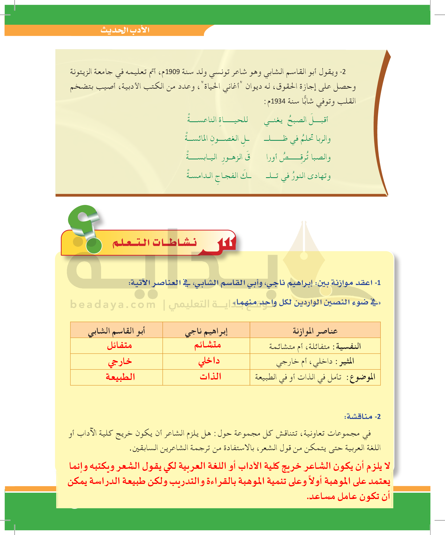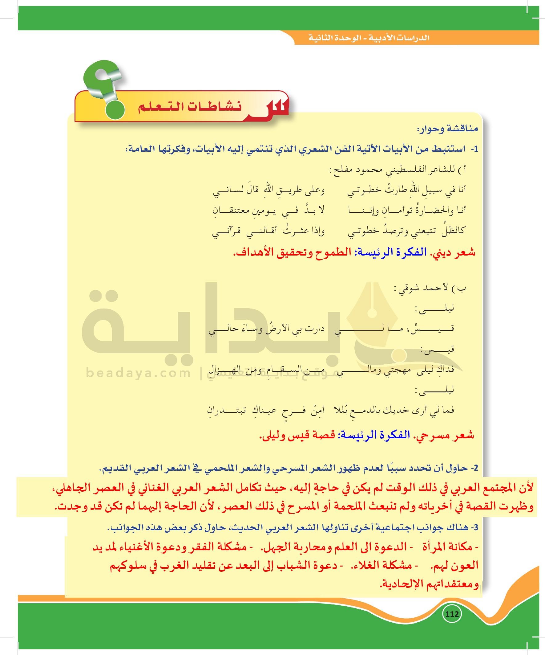 ثالثاً: واقع الشعر العربي الحديث من خلال مدارسه الأدبية وأبرز اتجاهاته.
