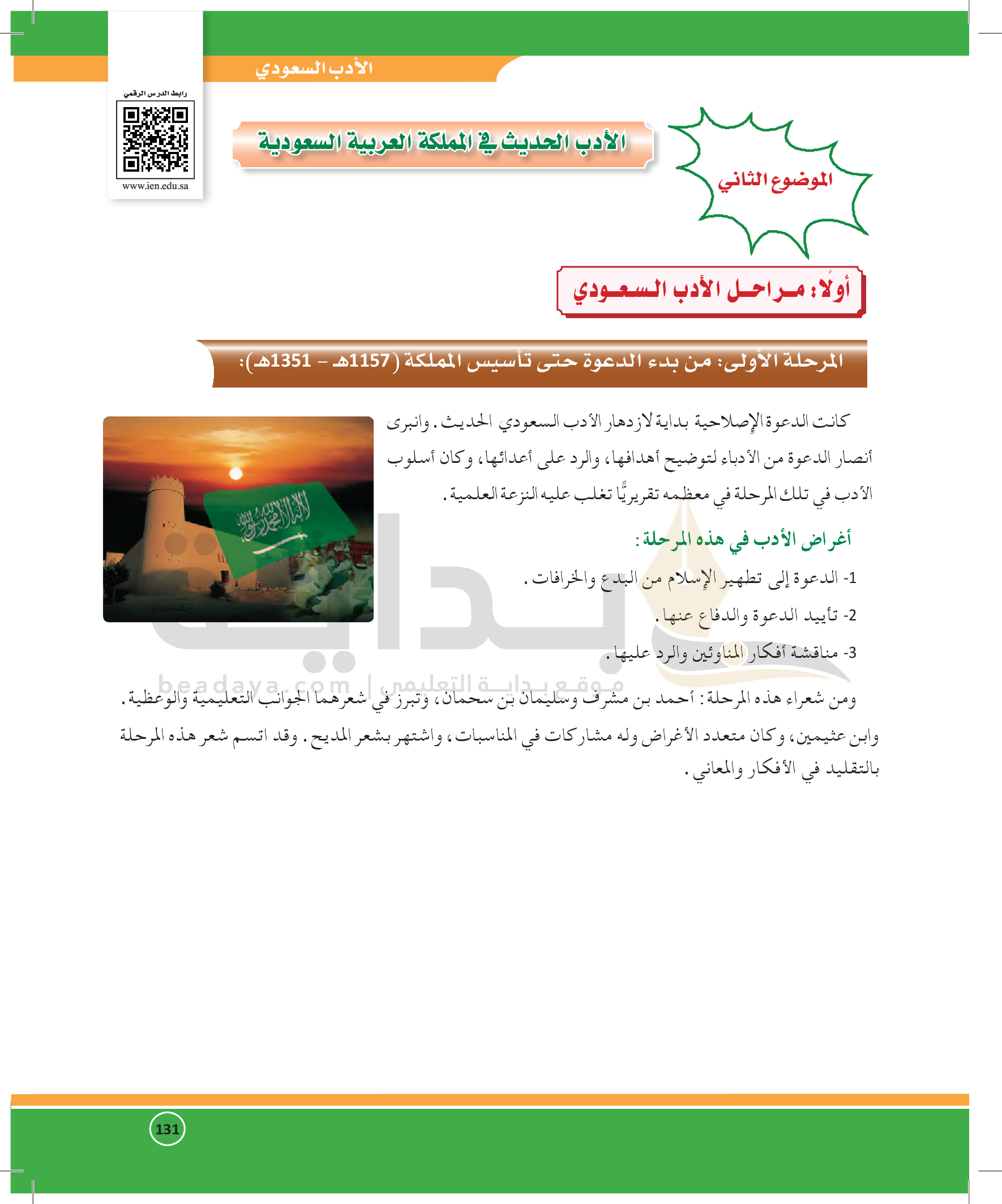 الموضوع الثاني: الأدب الحديث في المملكة العربية السعودية