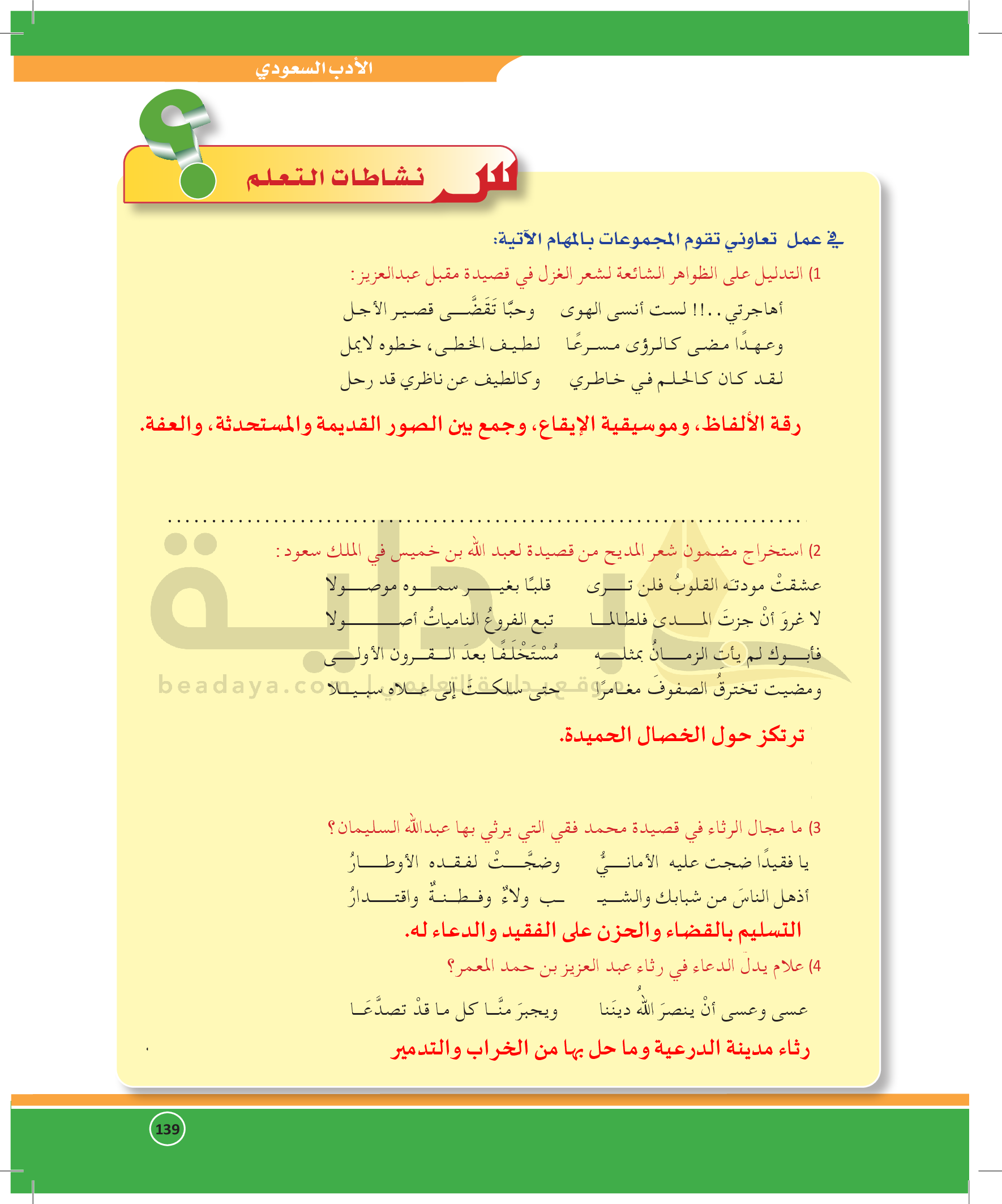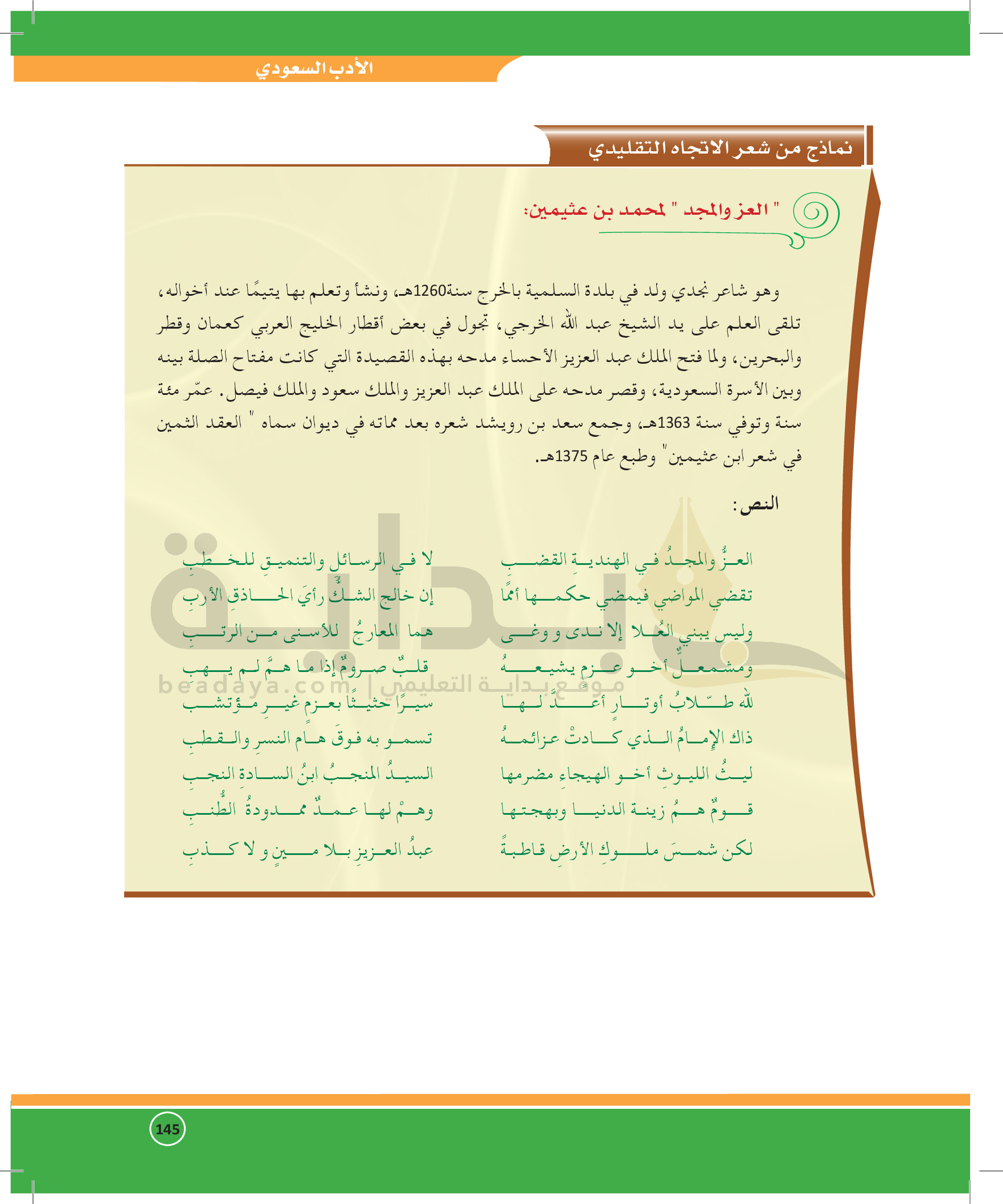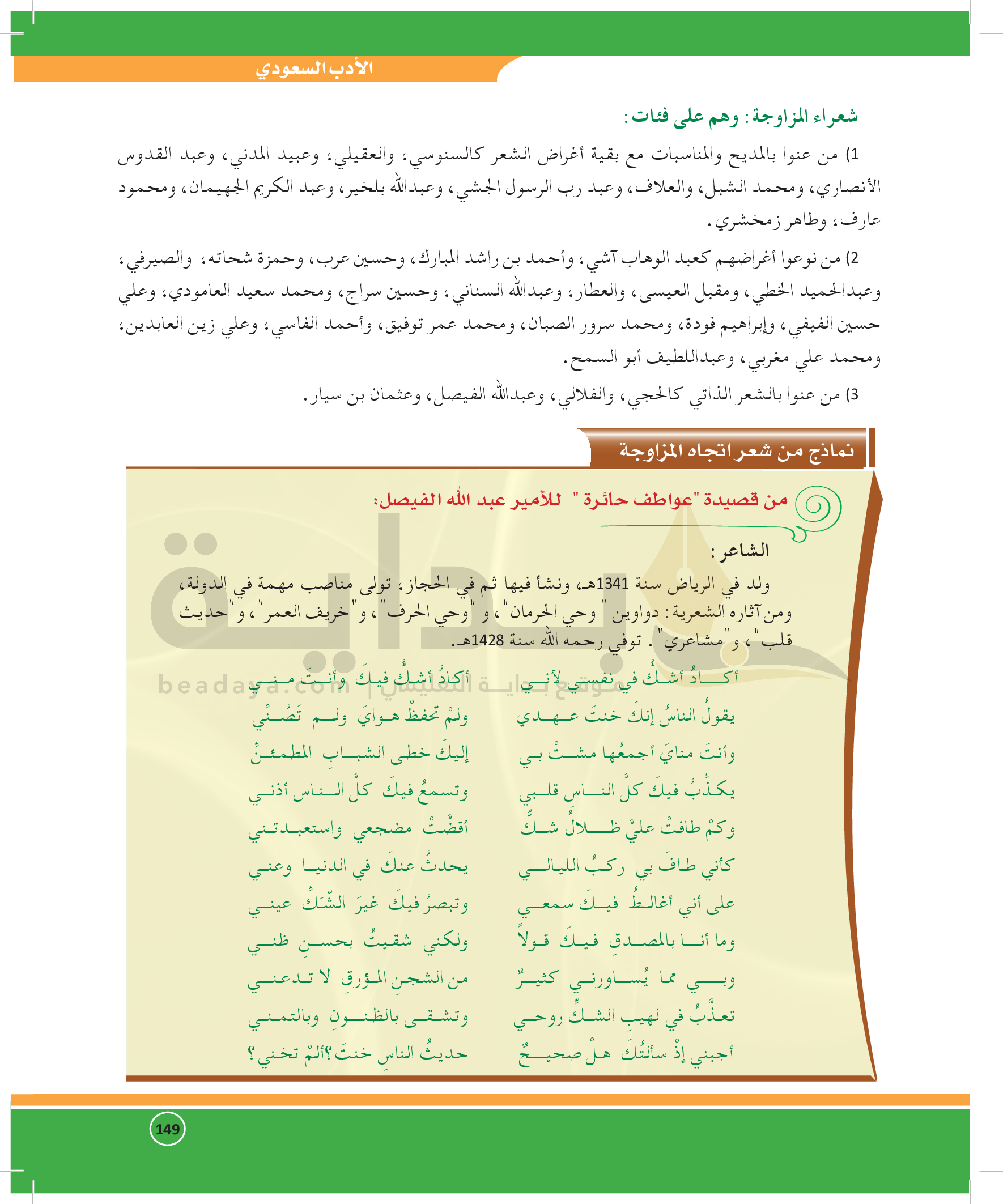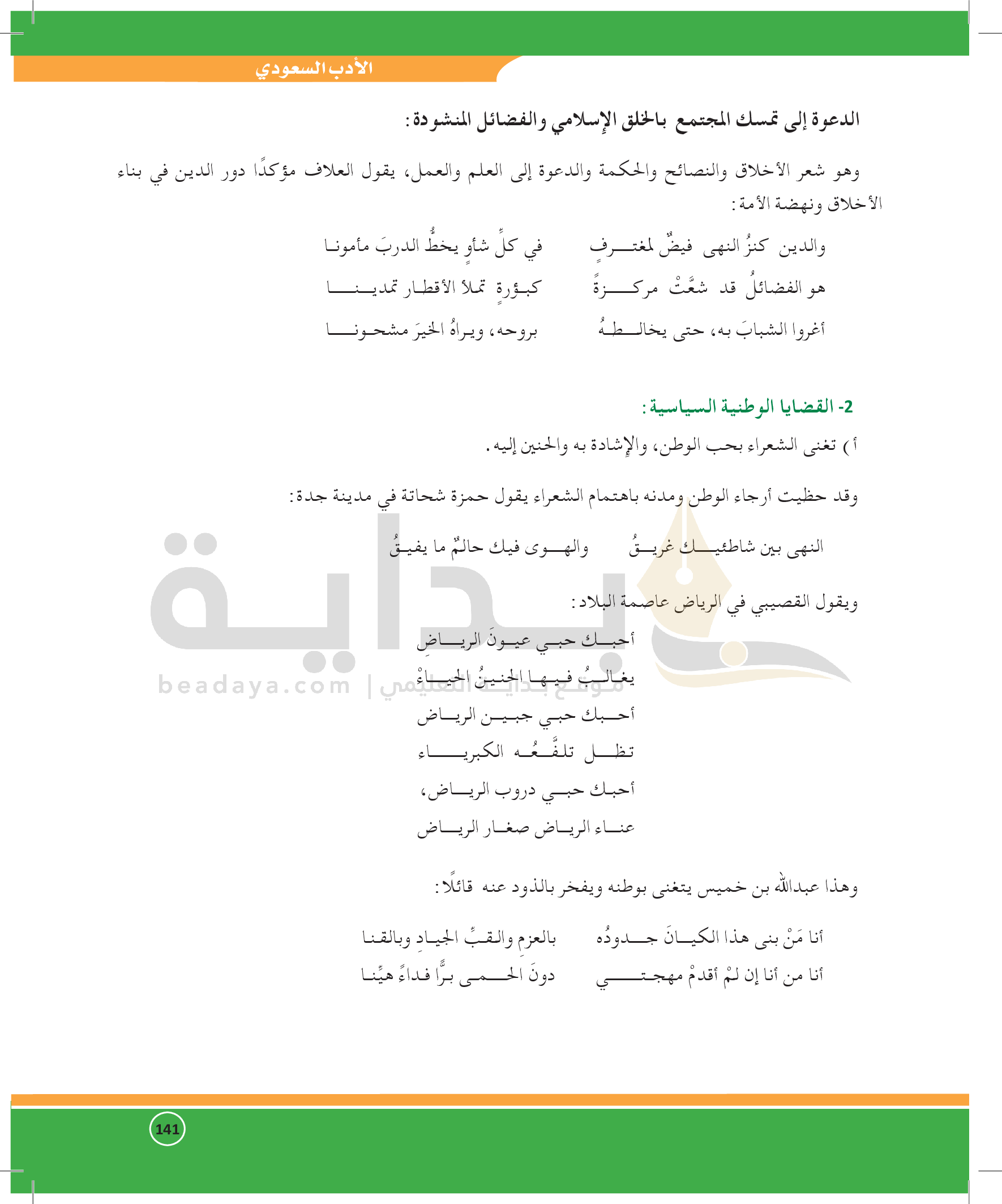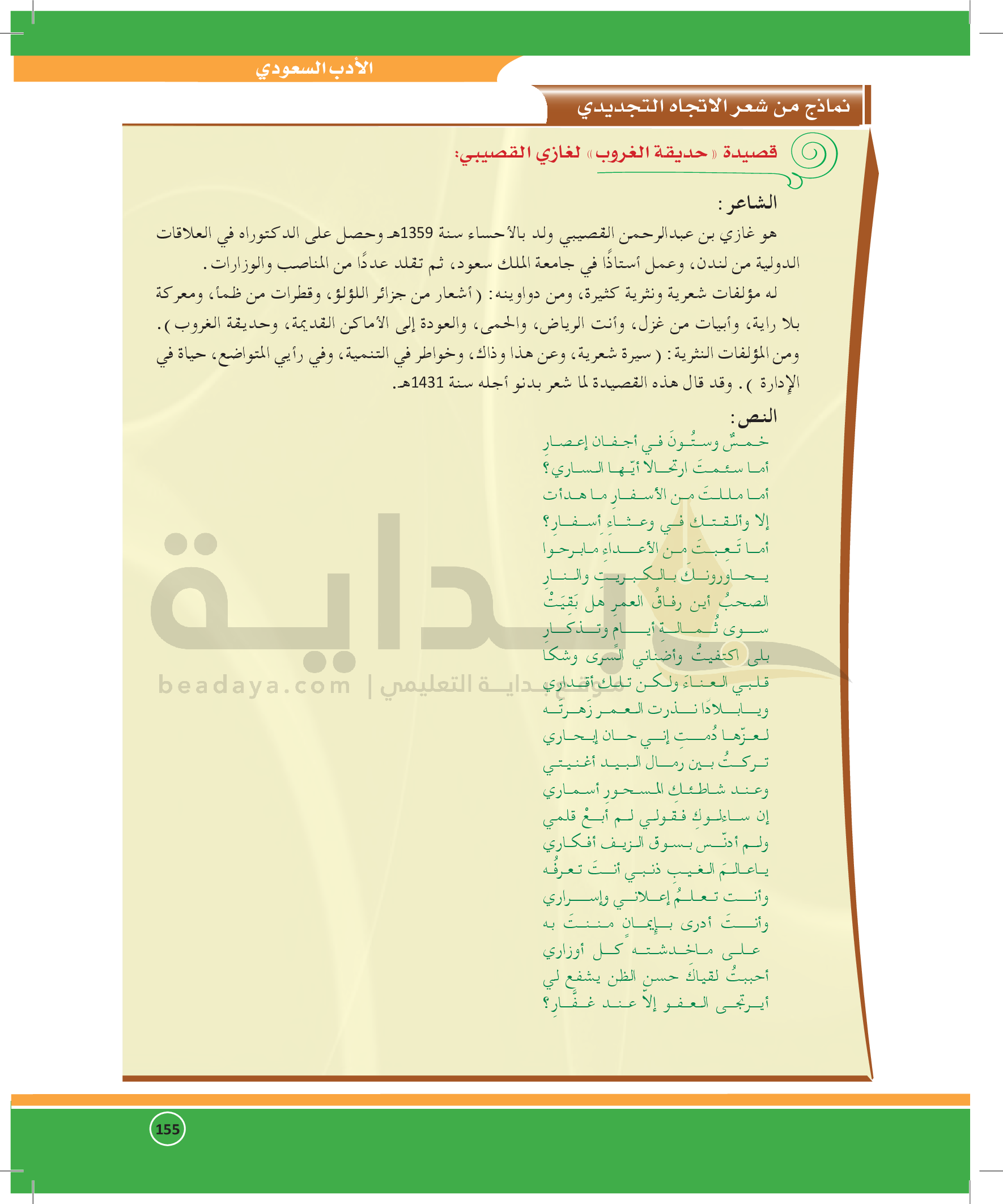 ثانياً: الشعر السعودي: أغراضه وموضوعاته الحديثة.