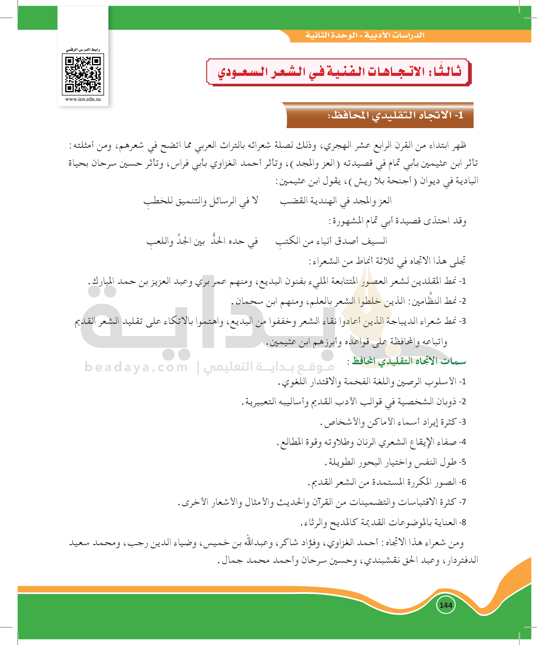 ثالثاً: الاتجاهات الفنية في الشعر السعودي.