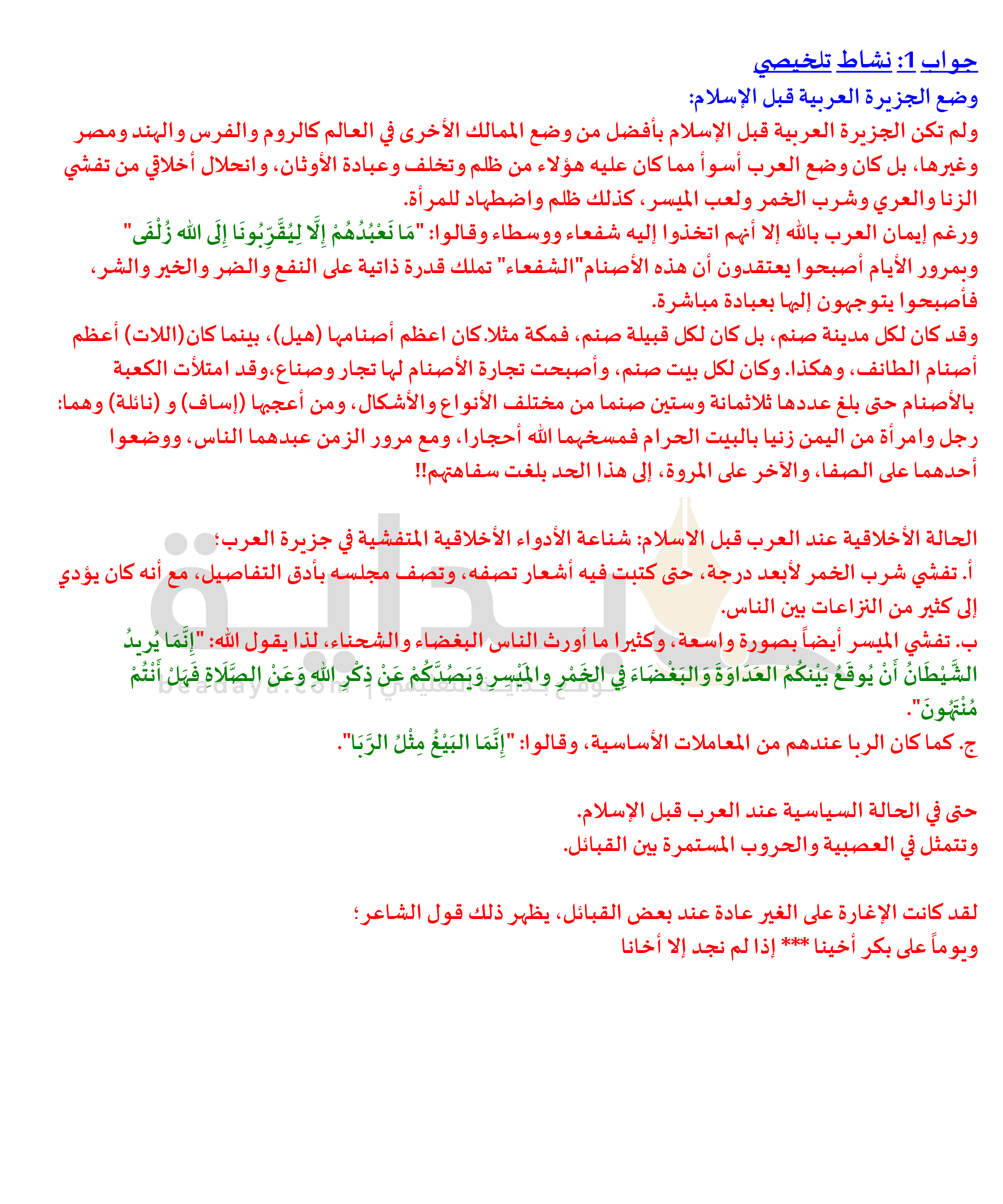 ثانياً: بيئة العرب في العصر الجاهلي.