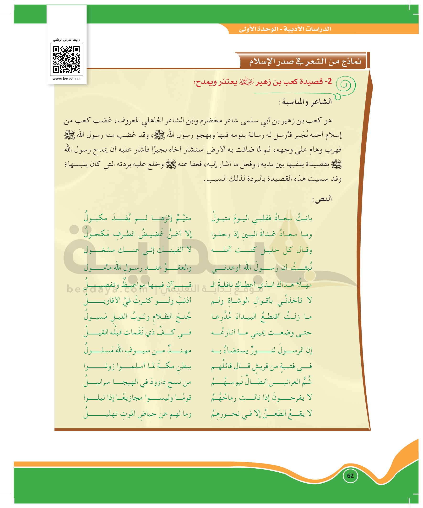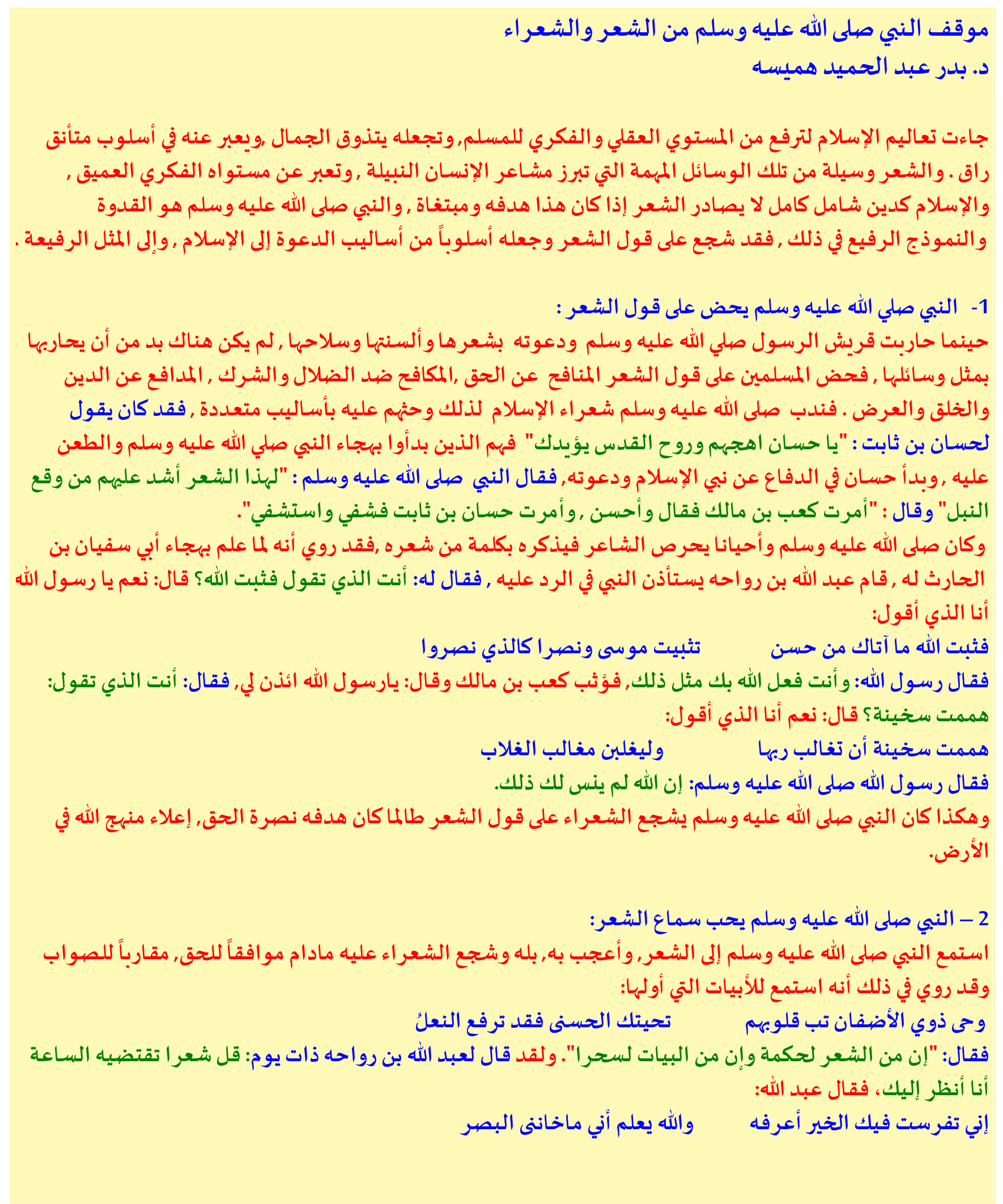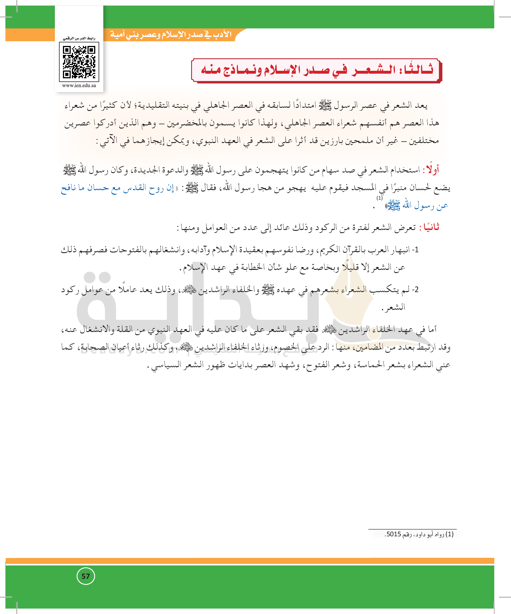 ثالثاً: الشعر ي صدر الإسلام ونماذج منه.