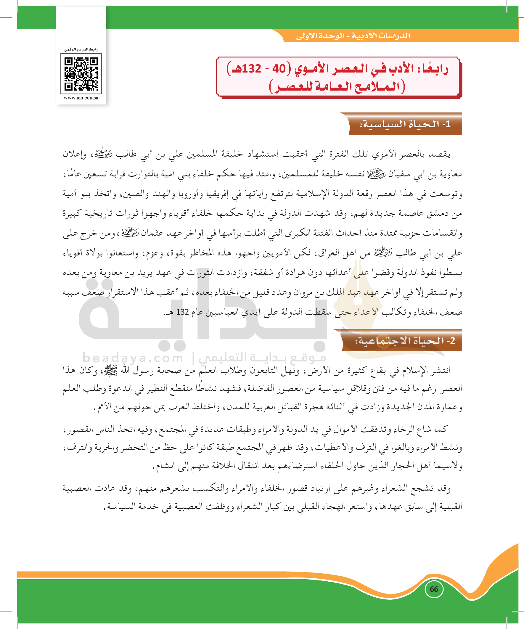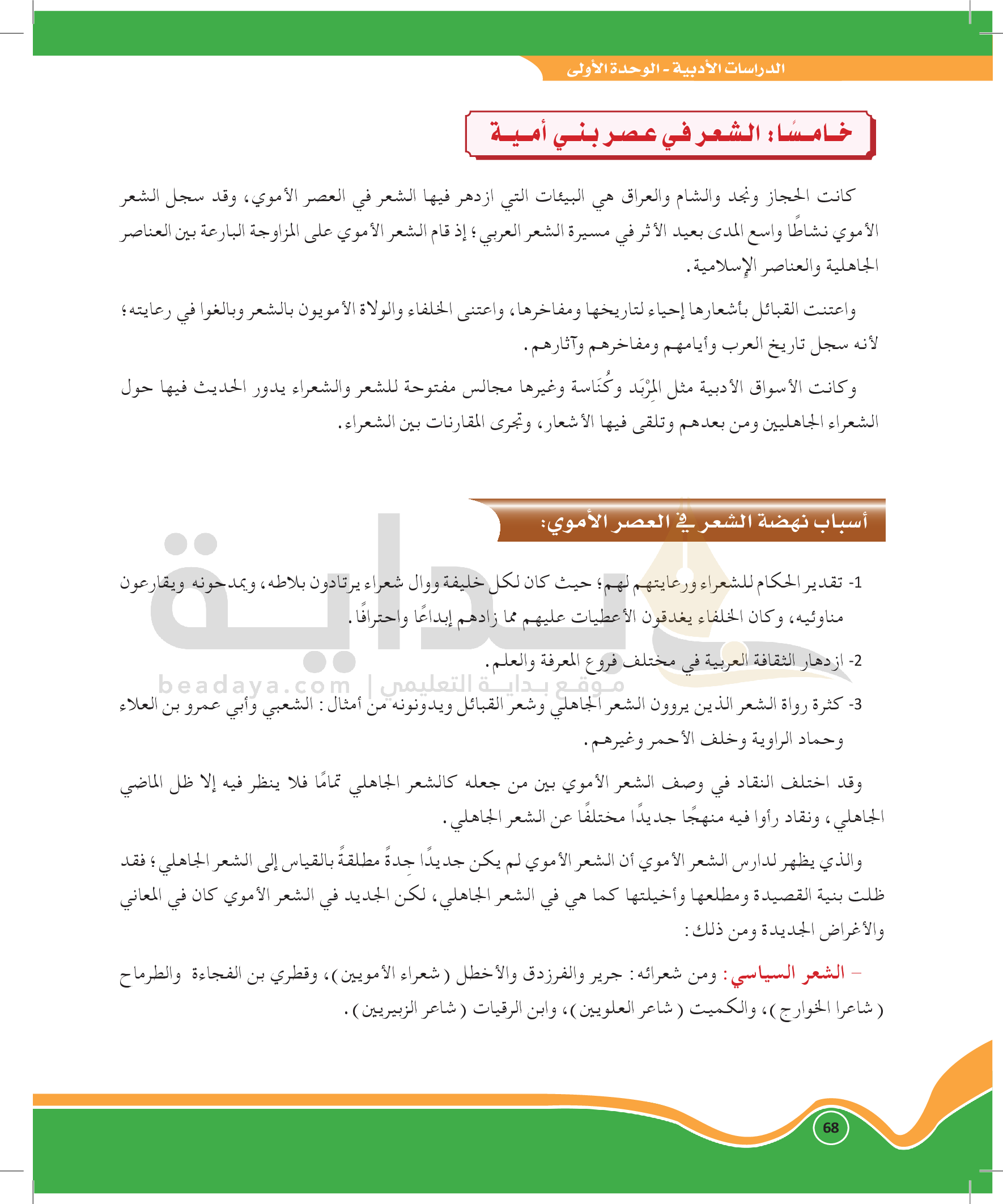 رابعاً: الأدب في العصر الأموي (40-132هـ)(الملامح العامة للعصر)