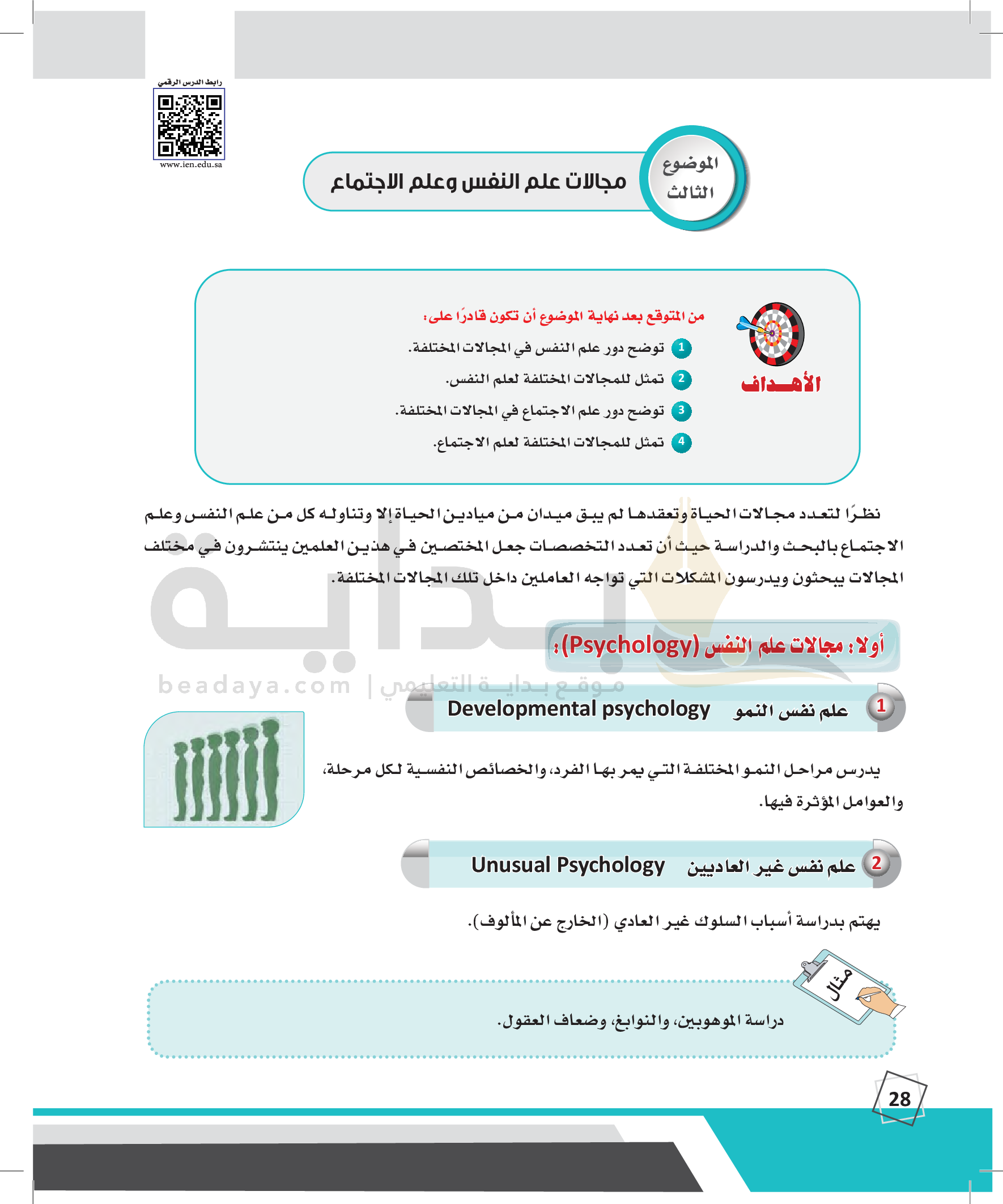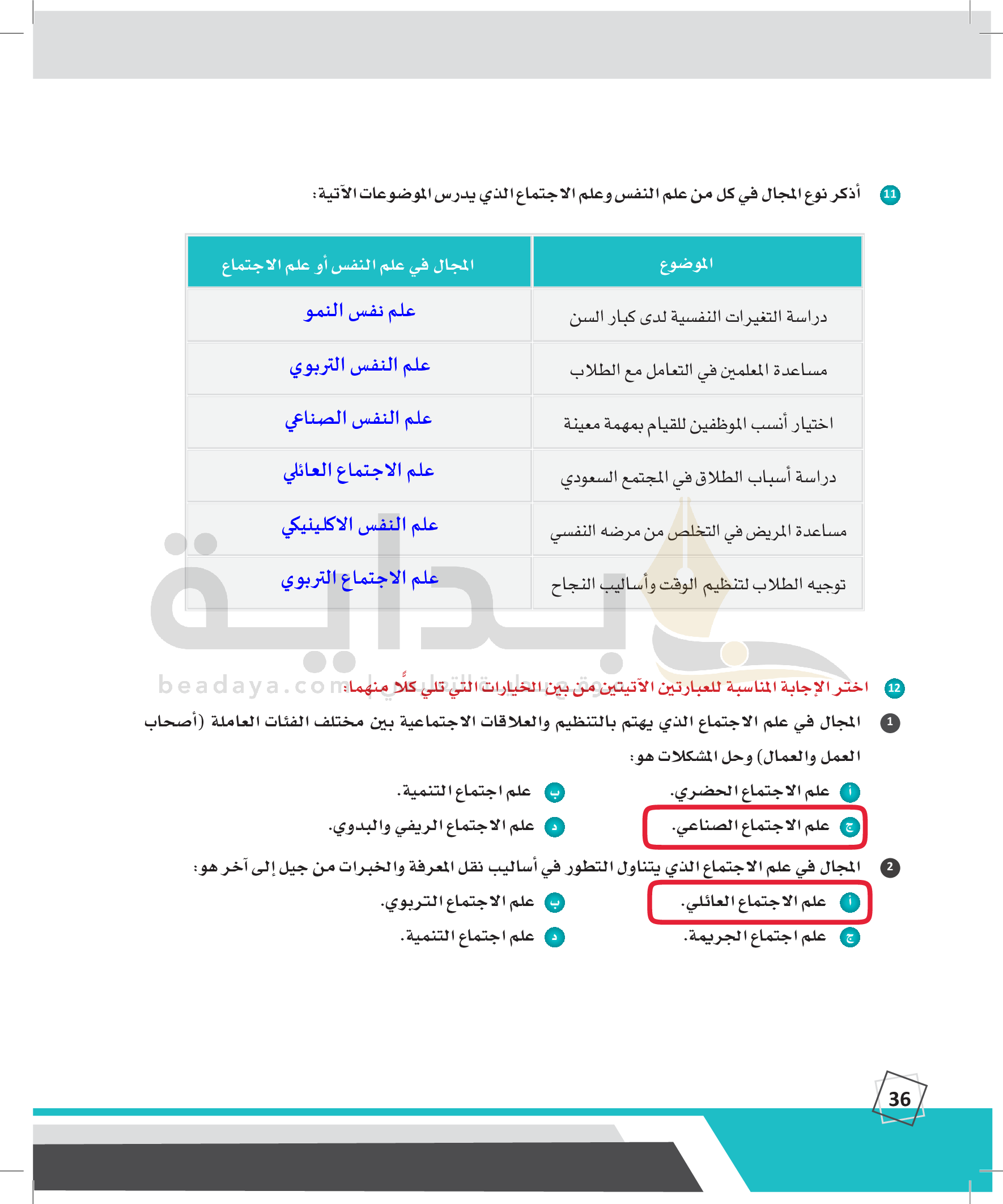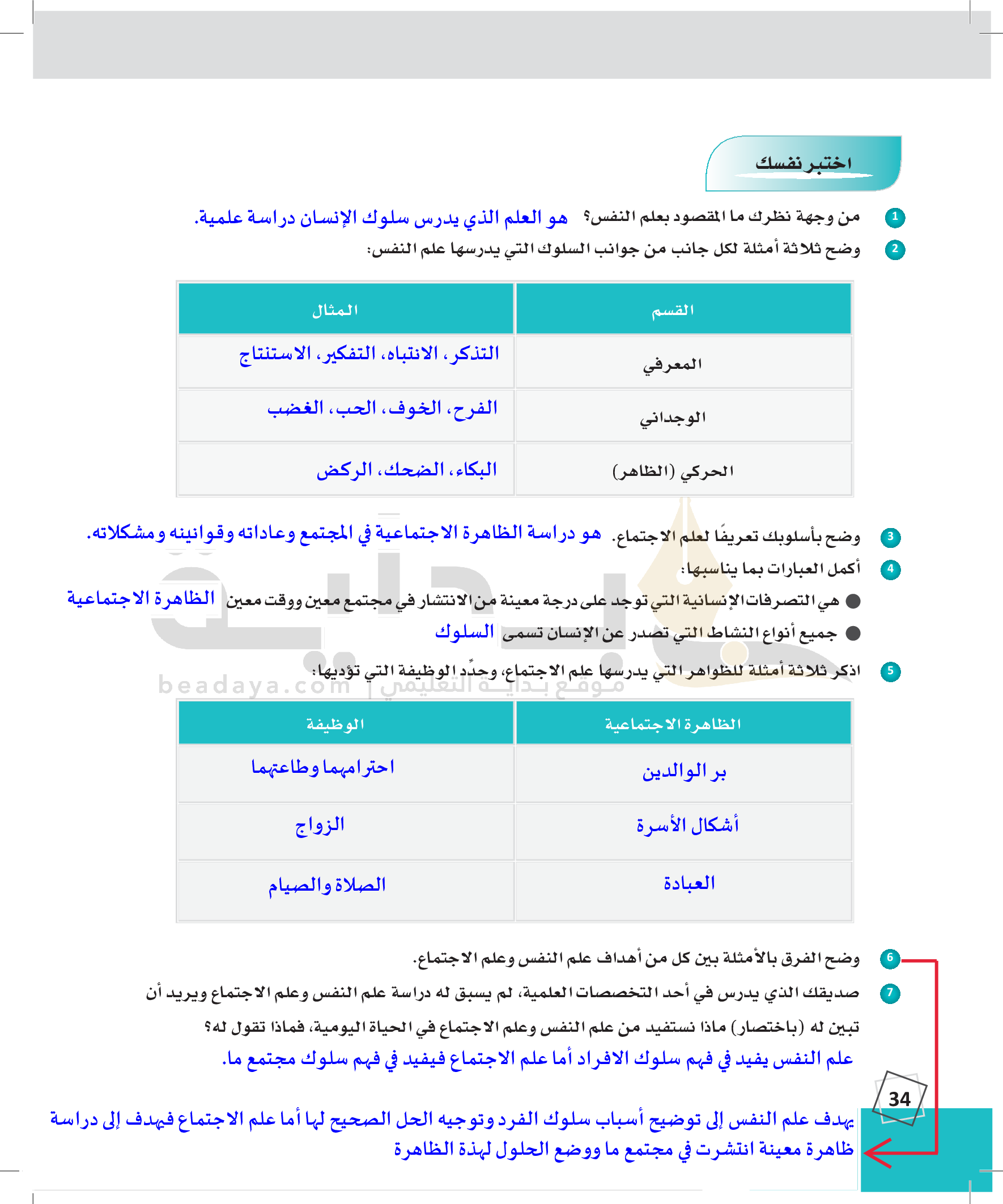 حل اختبار (ماهية علم النفس و علم الاجتماع)