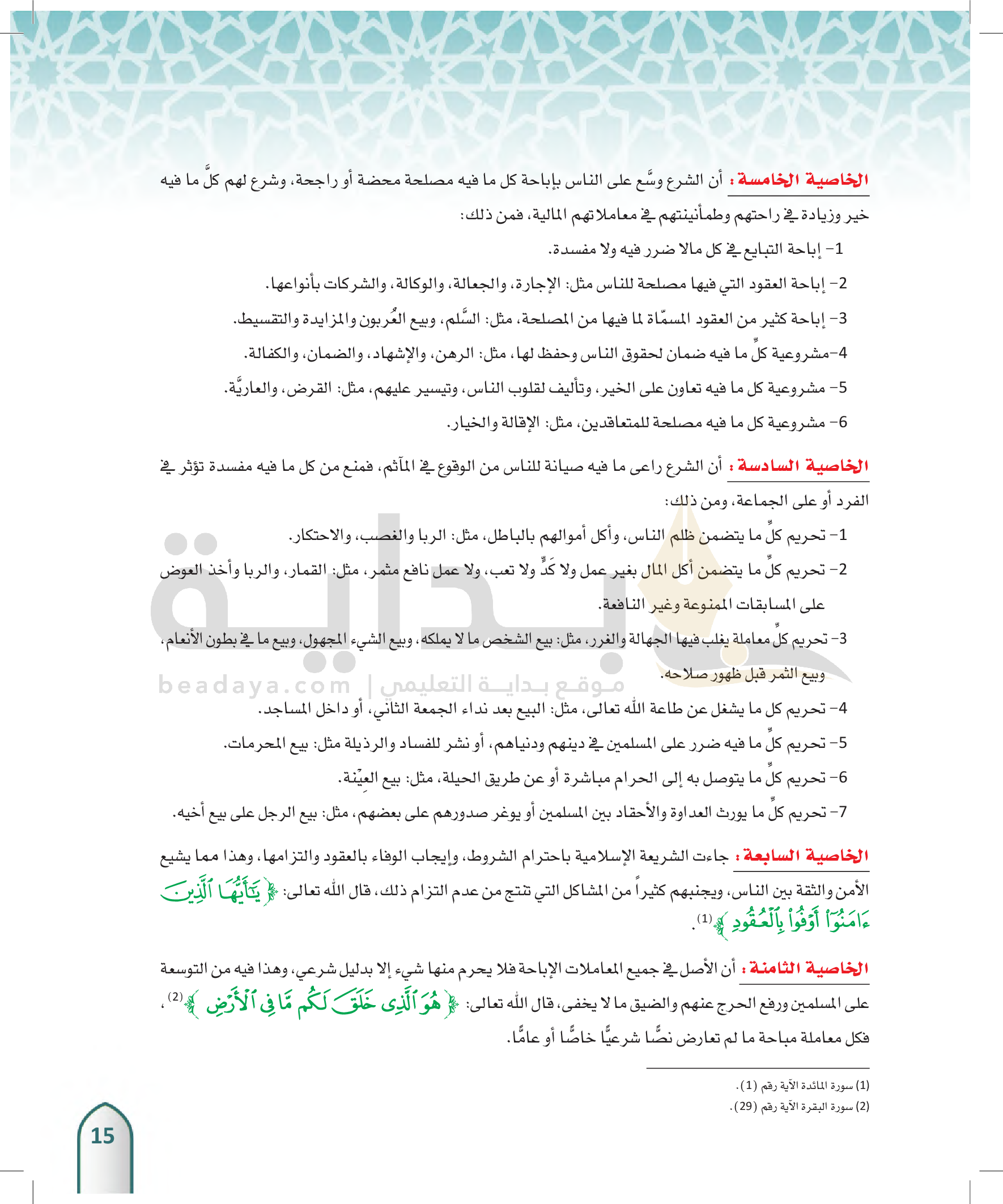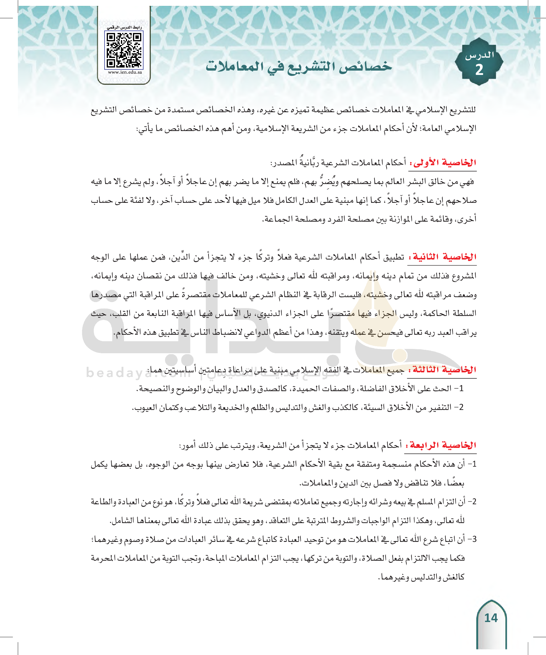 خصائص التشريع في المعاملات