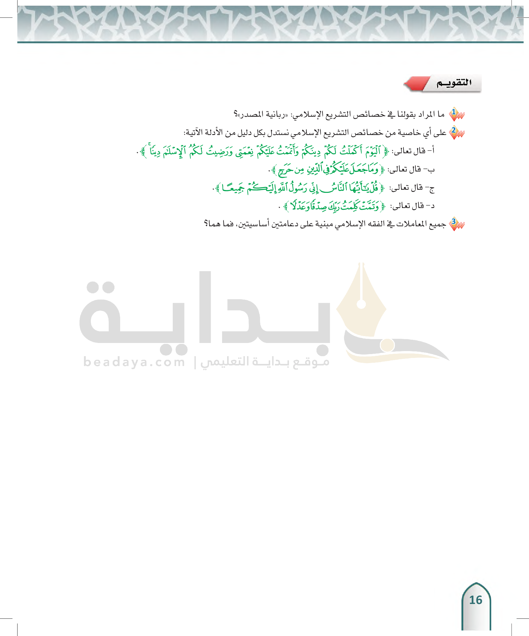 خصائص التشريع الإسلامي ومميزاته