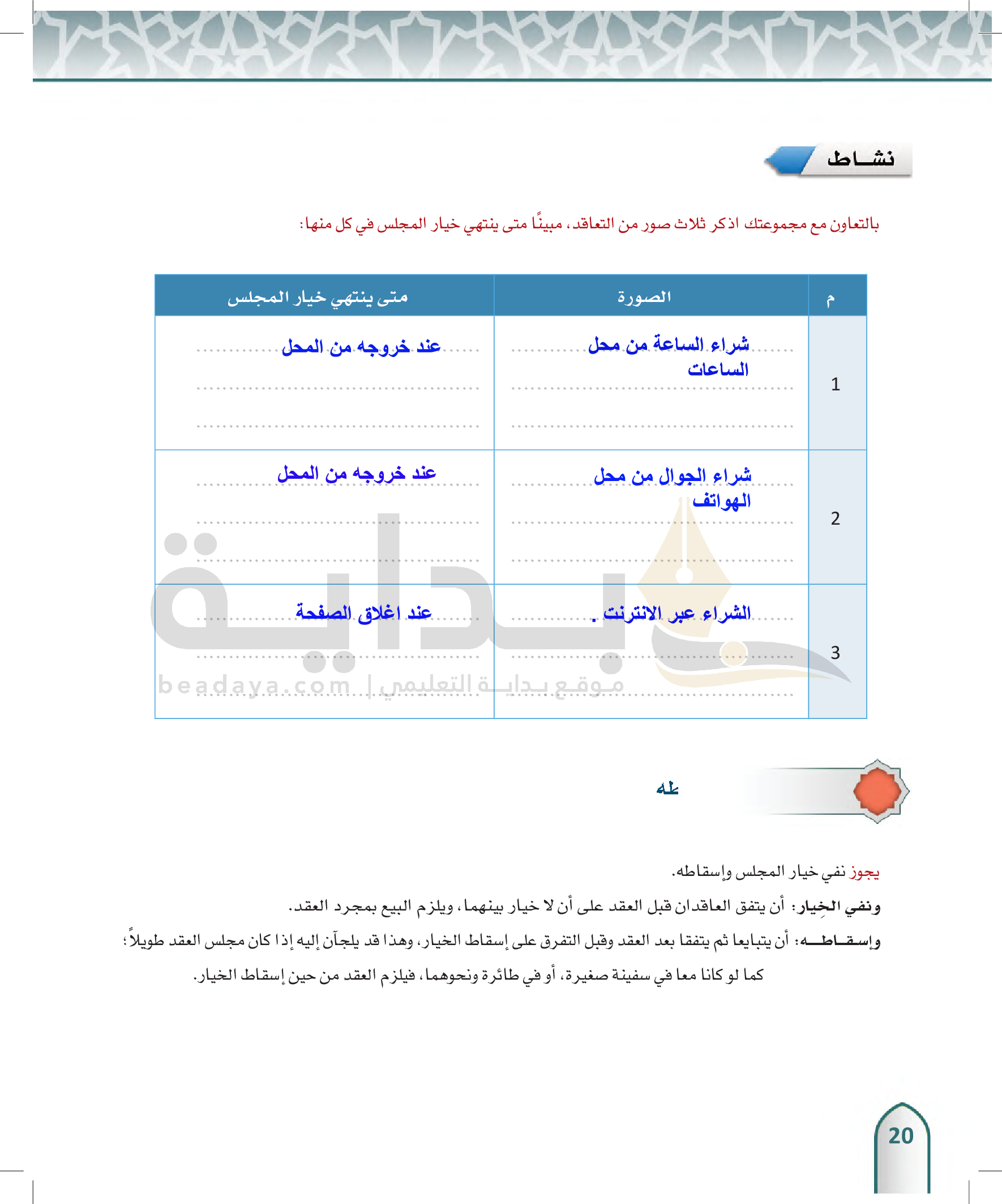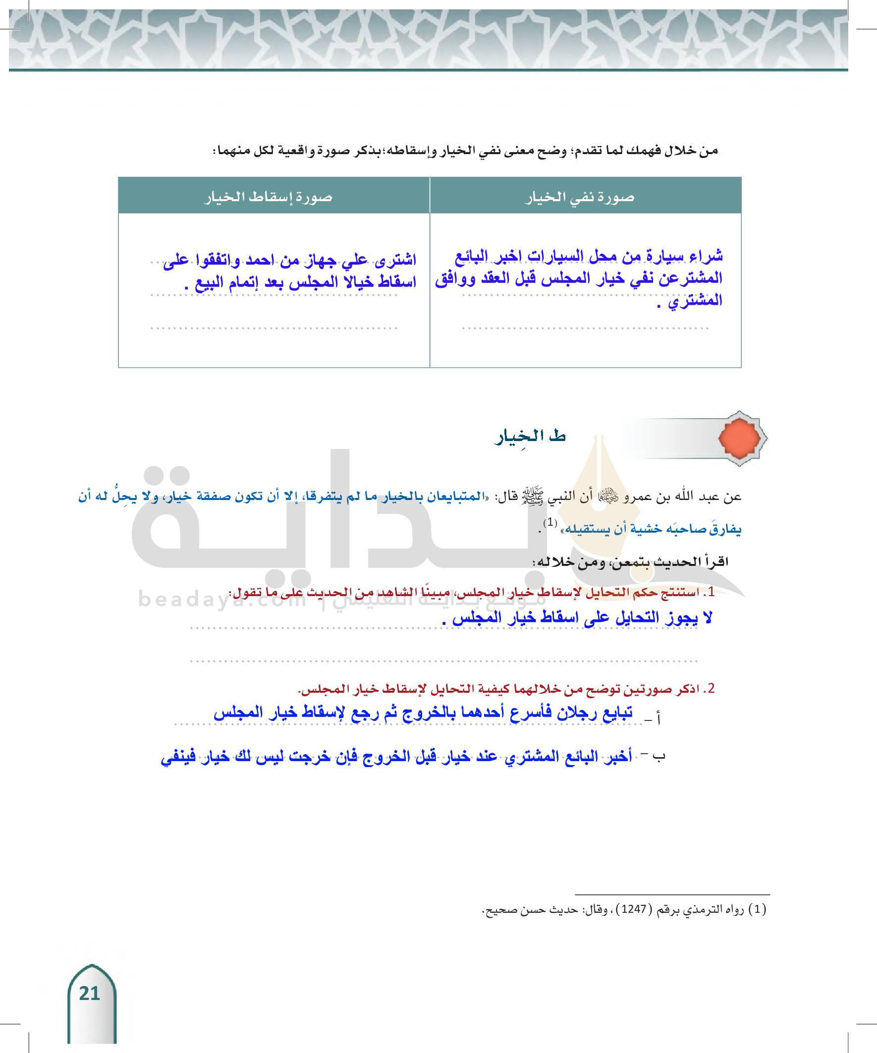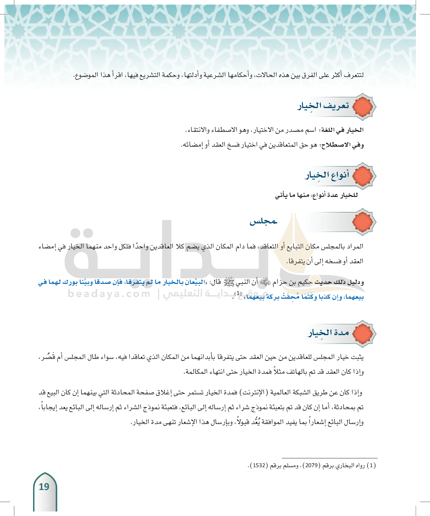 الخيار في البيع