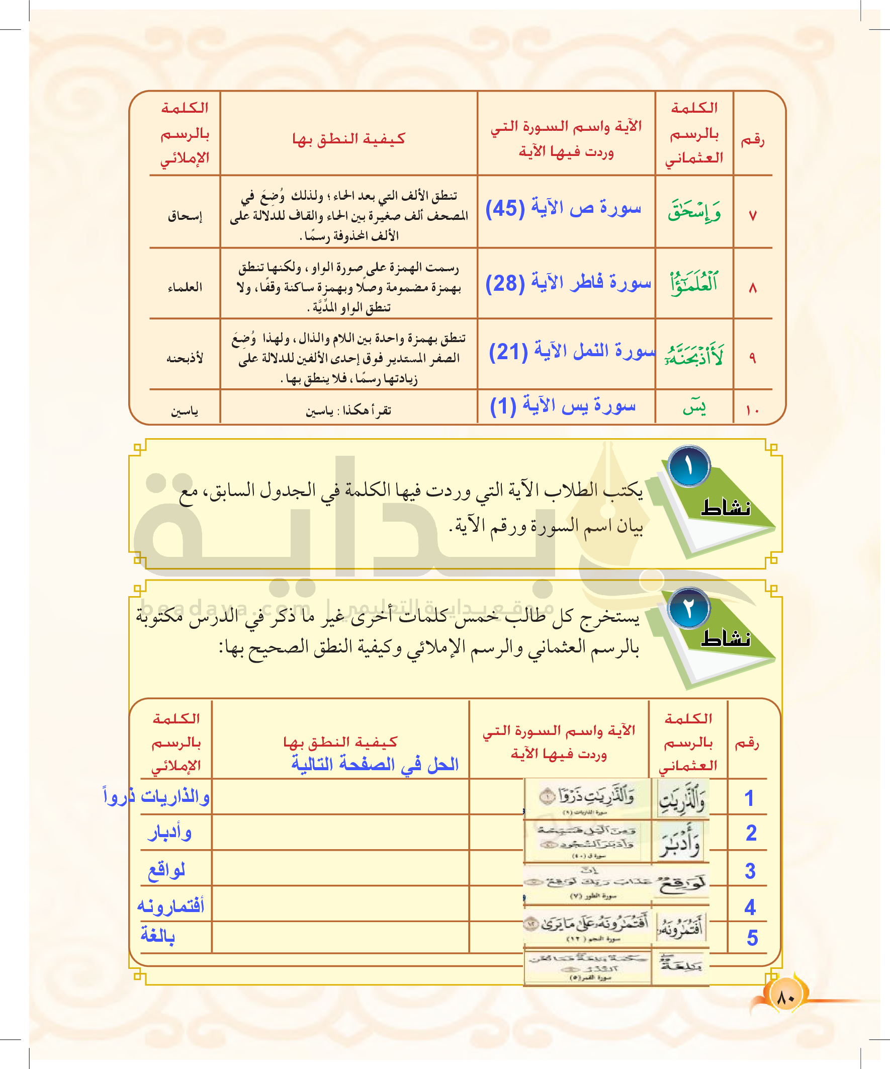 كيفية قراءة بعض الكلمات القرآنية المكتوبة بالرسم العثماني