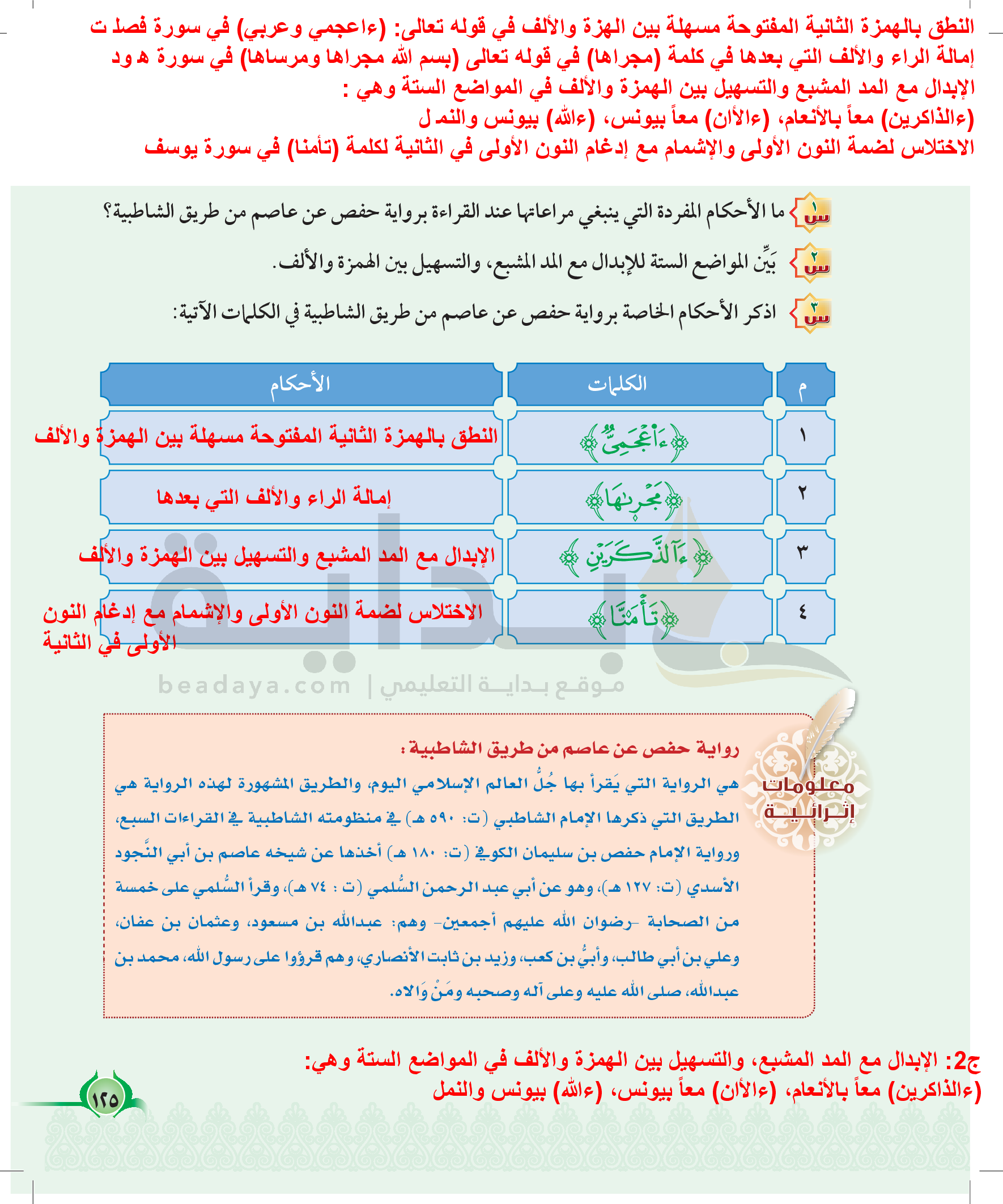 أحكام مفردة في رواية حفص عن عاصم من طريق الشاطبية عند التلاوة (2)