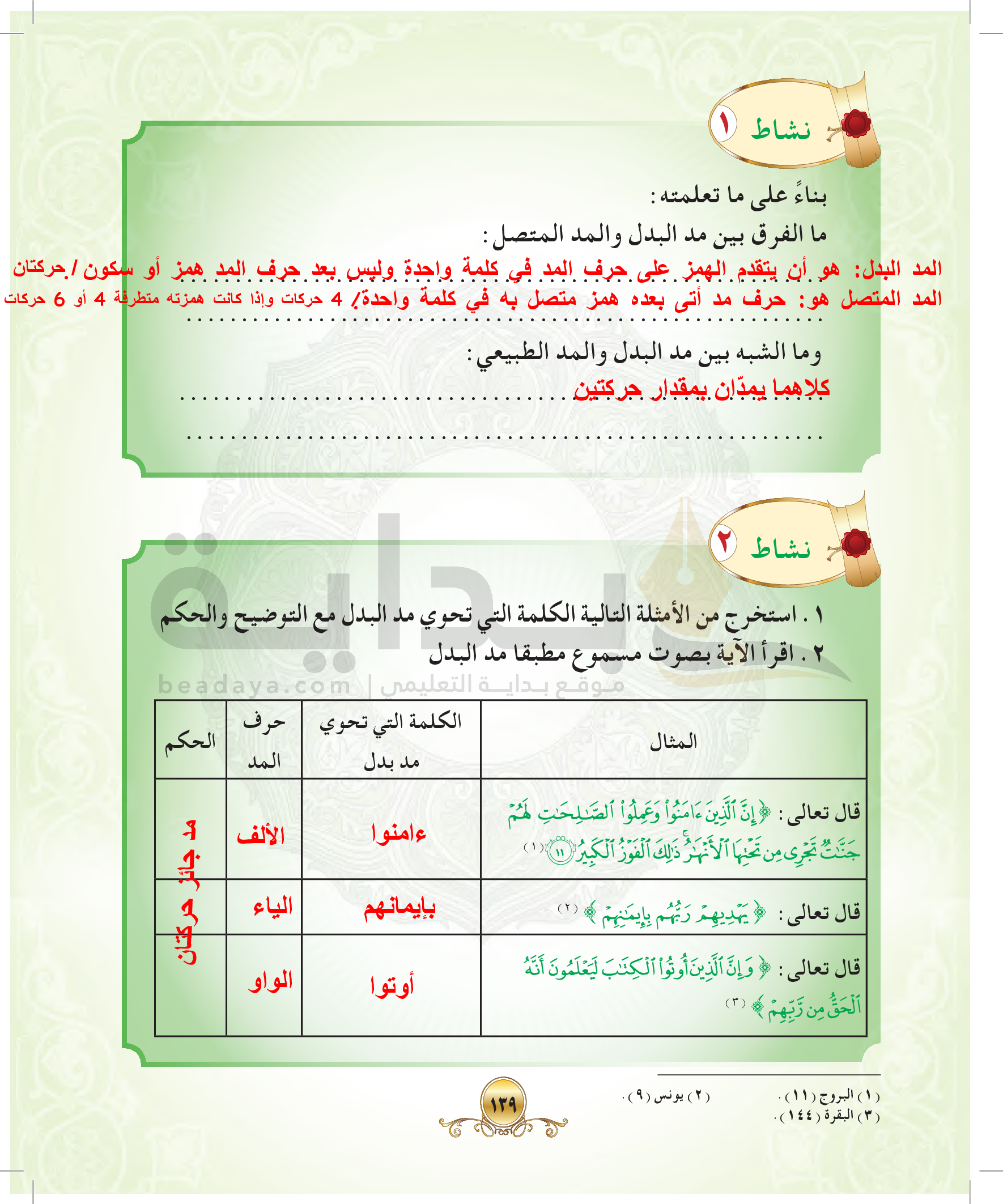 المد الفرعي المد المتصل