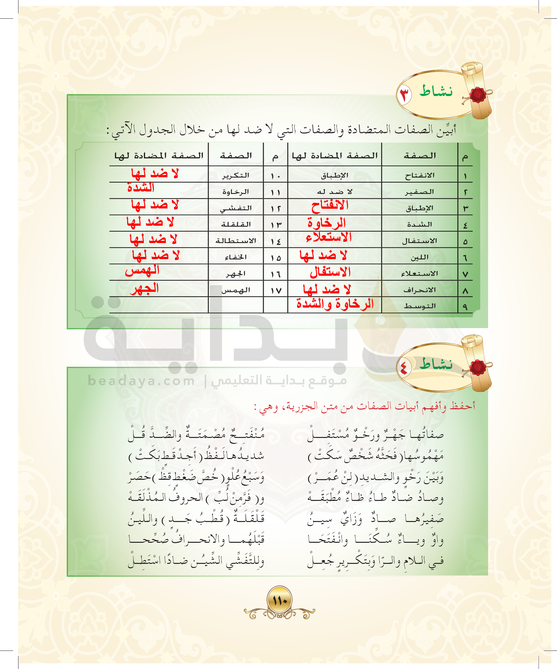 الصفات اللازمة (التفشي- الاستطالة- الخفاء)