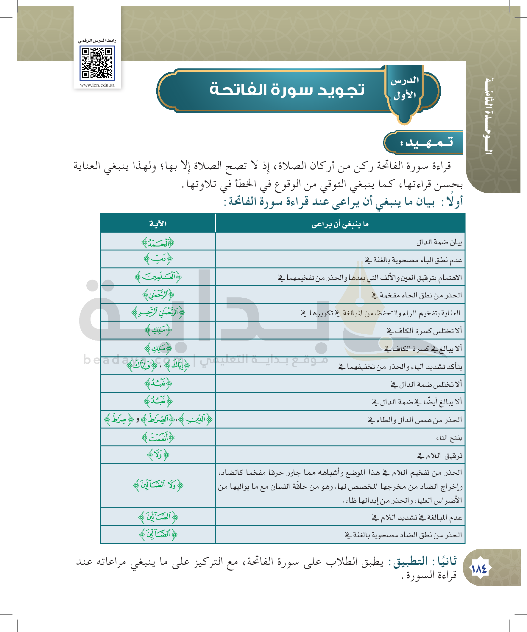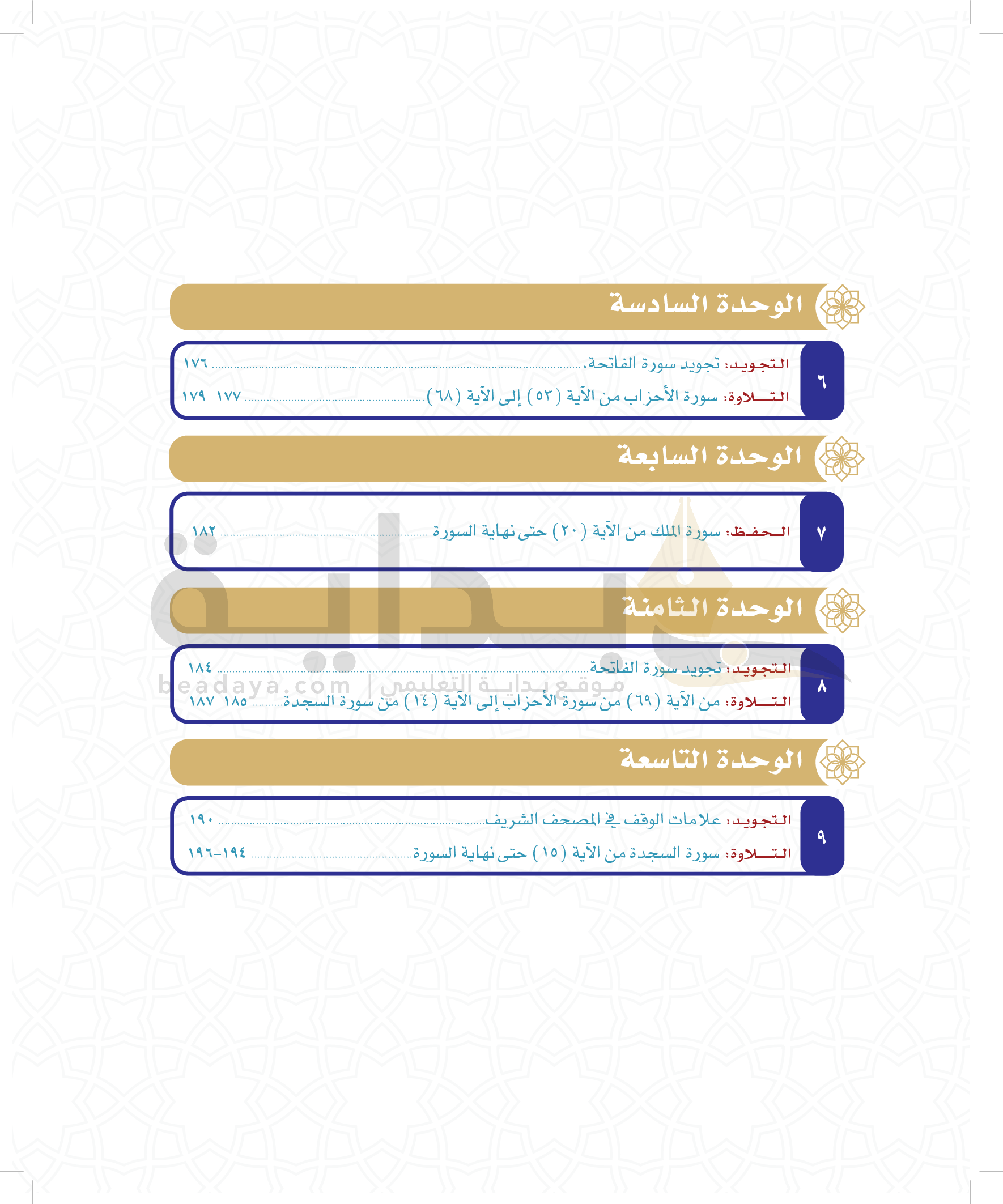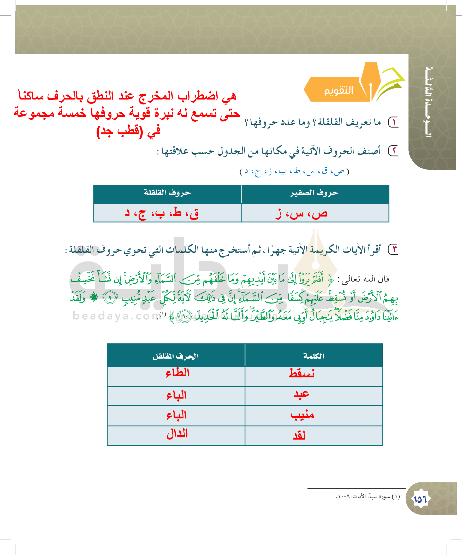حل درس تلاوة سورة السجدة من الآية (1) الى الآية (9) تلاوة مجودة