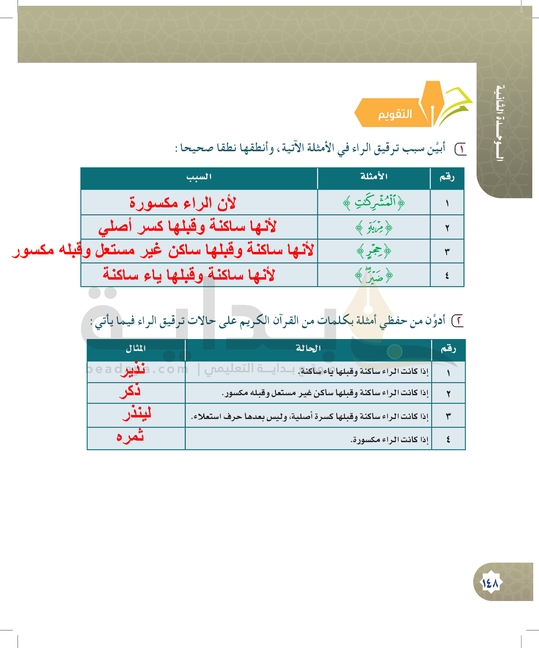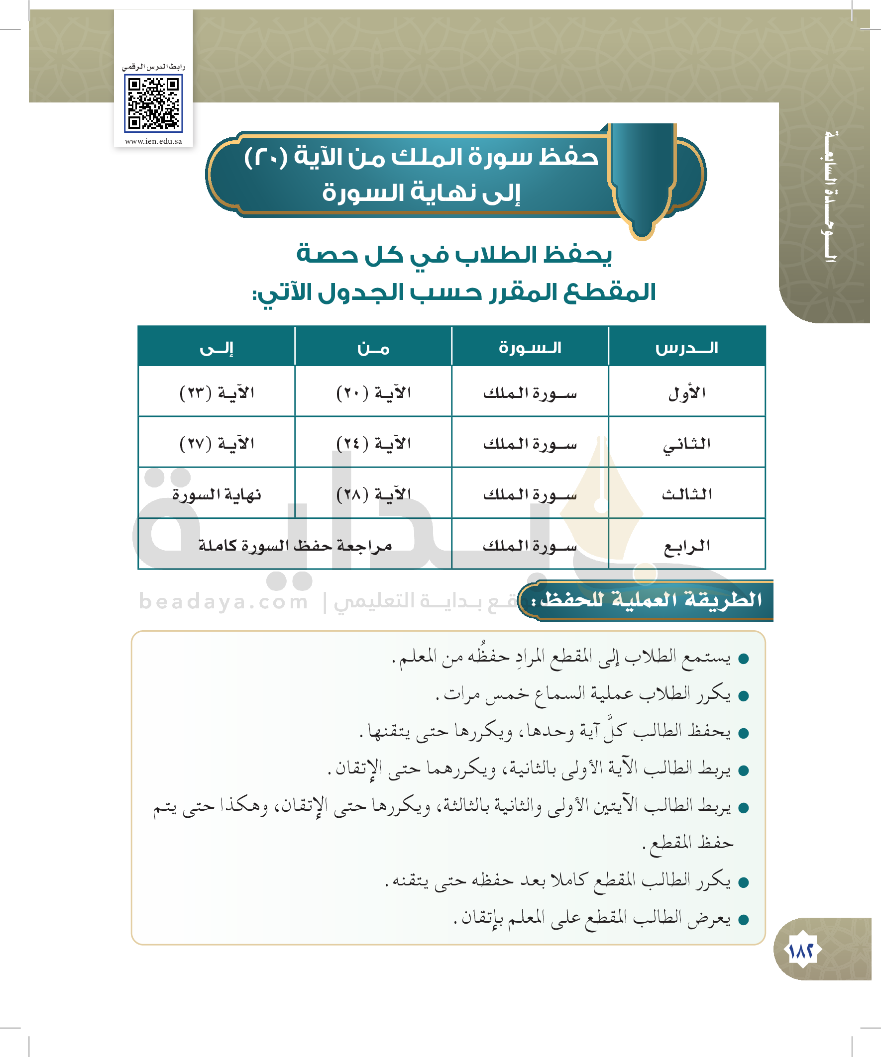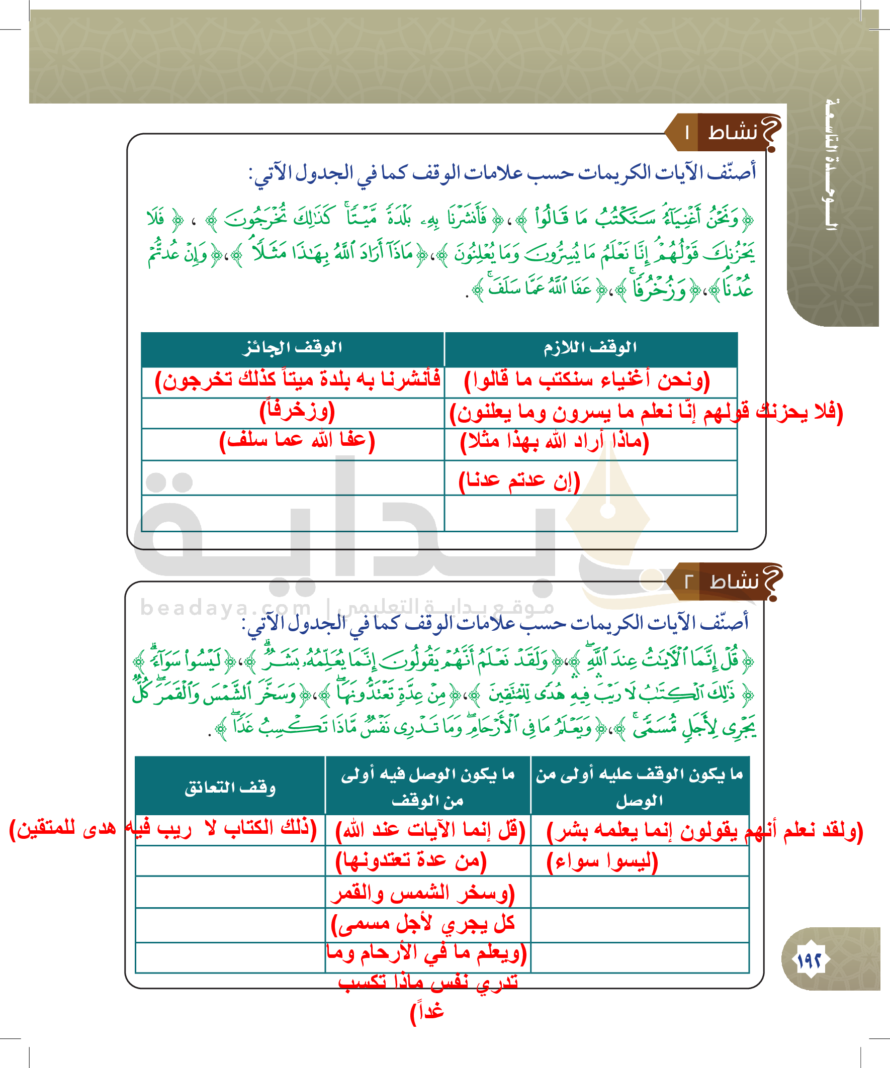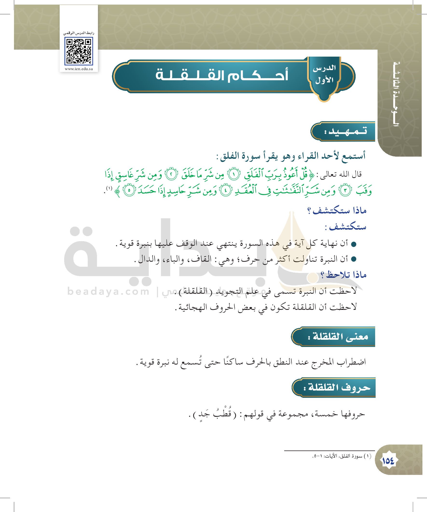حل درس تلاوة سورة السجدة من الآية (1) الى الآية (9) تلاوة مجودة
