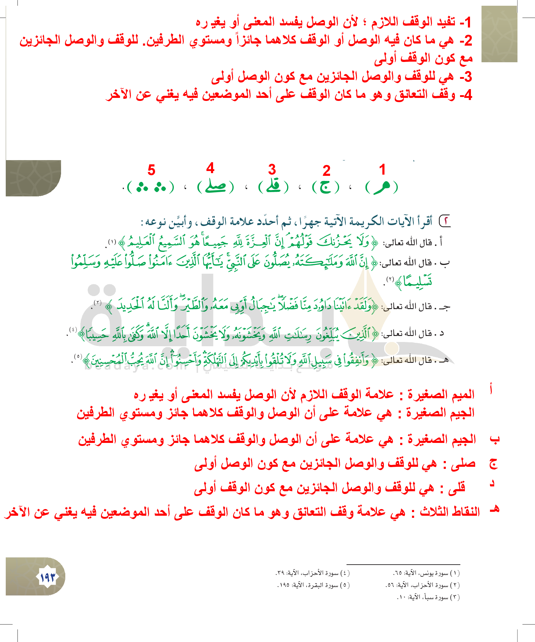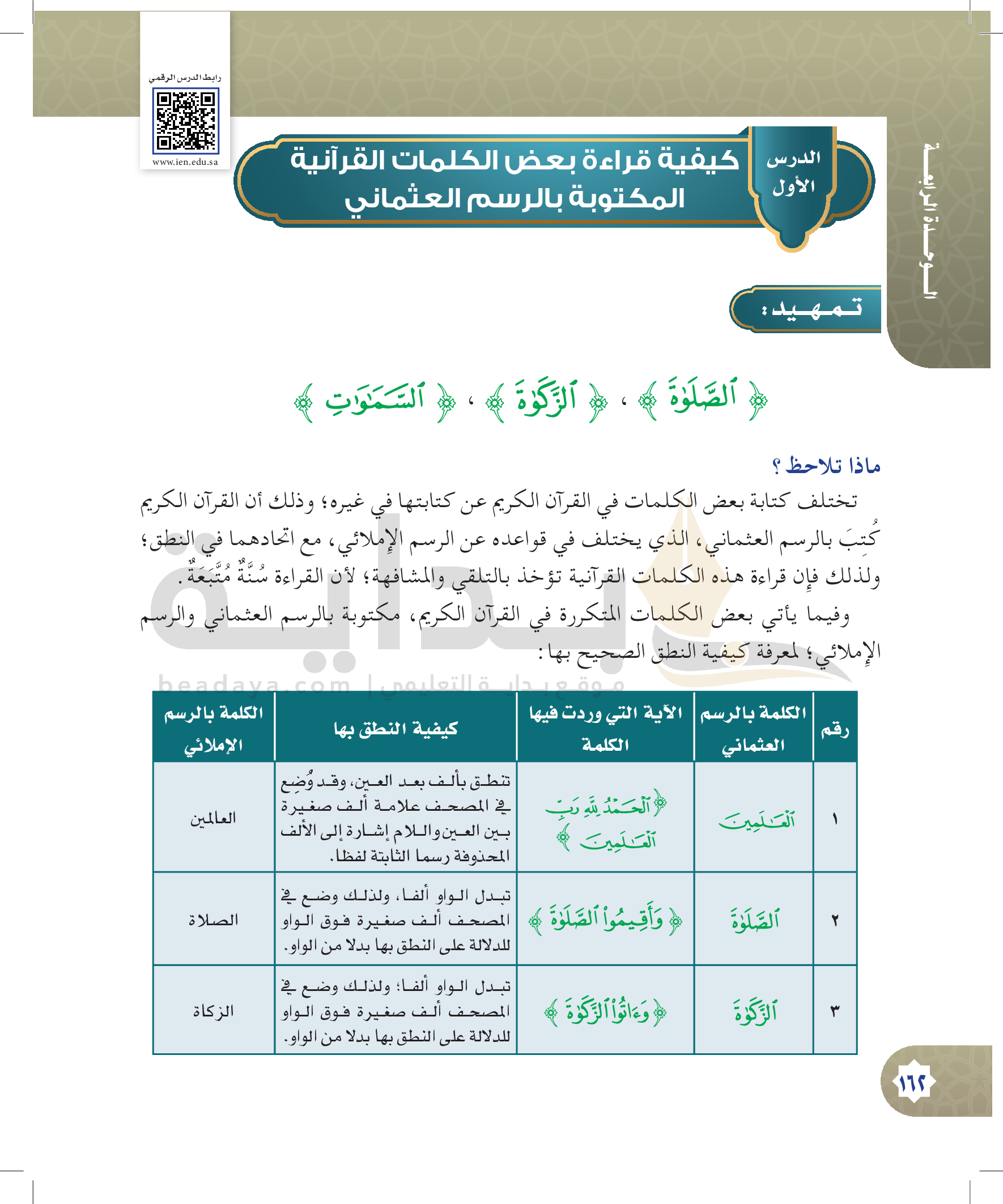 حل درس كيفية قراءة بعض الكلمات القرآنية المكتوبة بالرسم العثماني