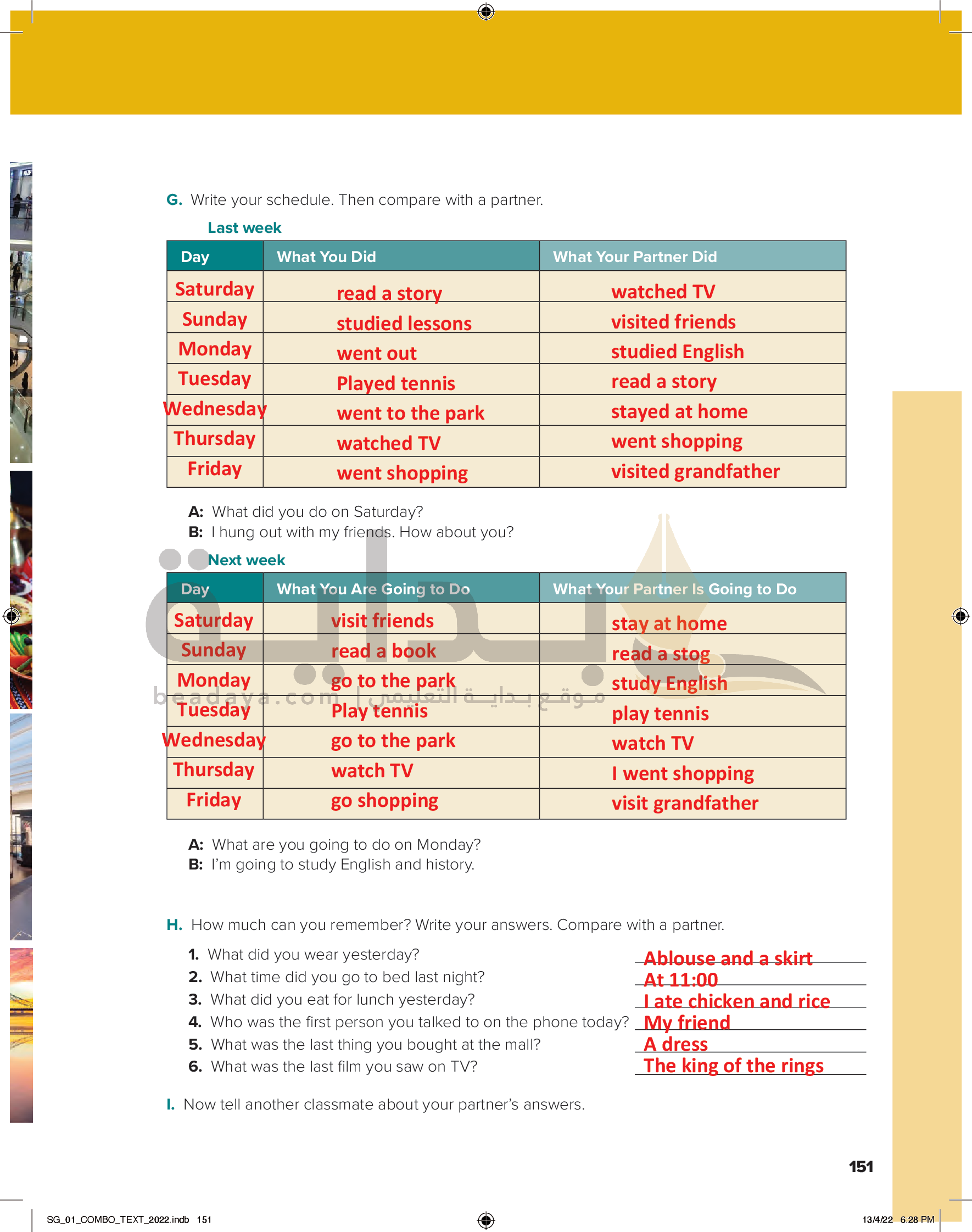كتاب التمارين