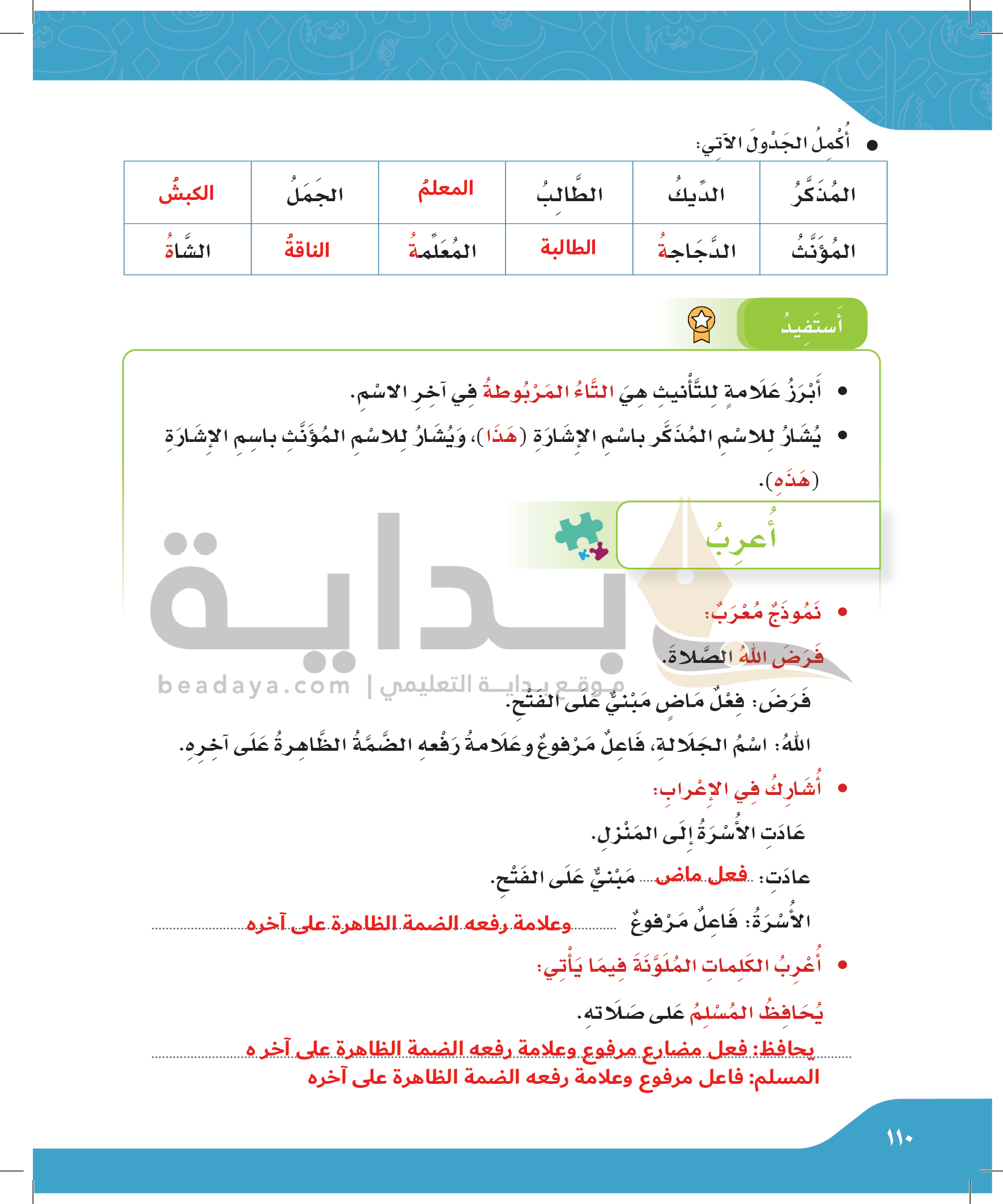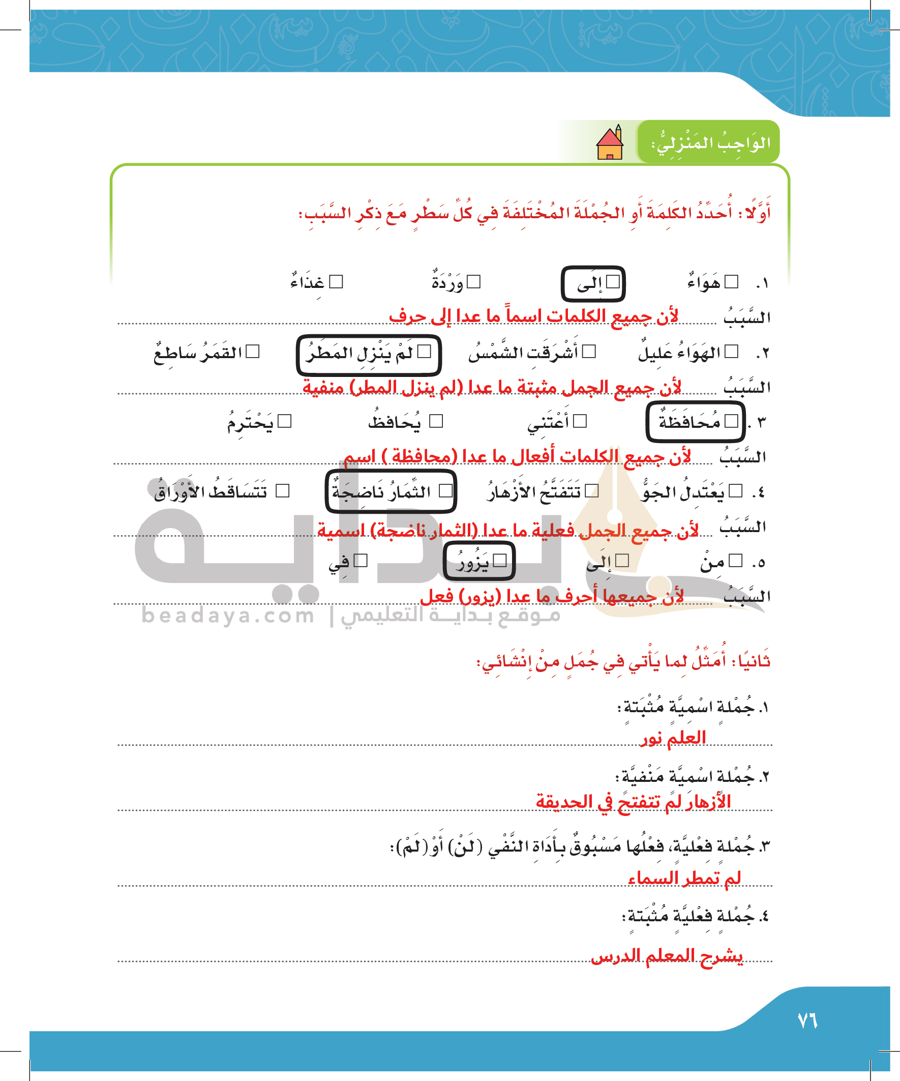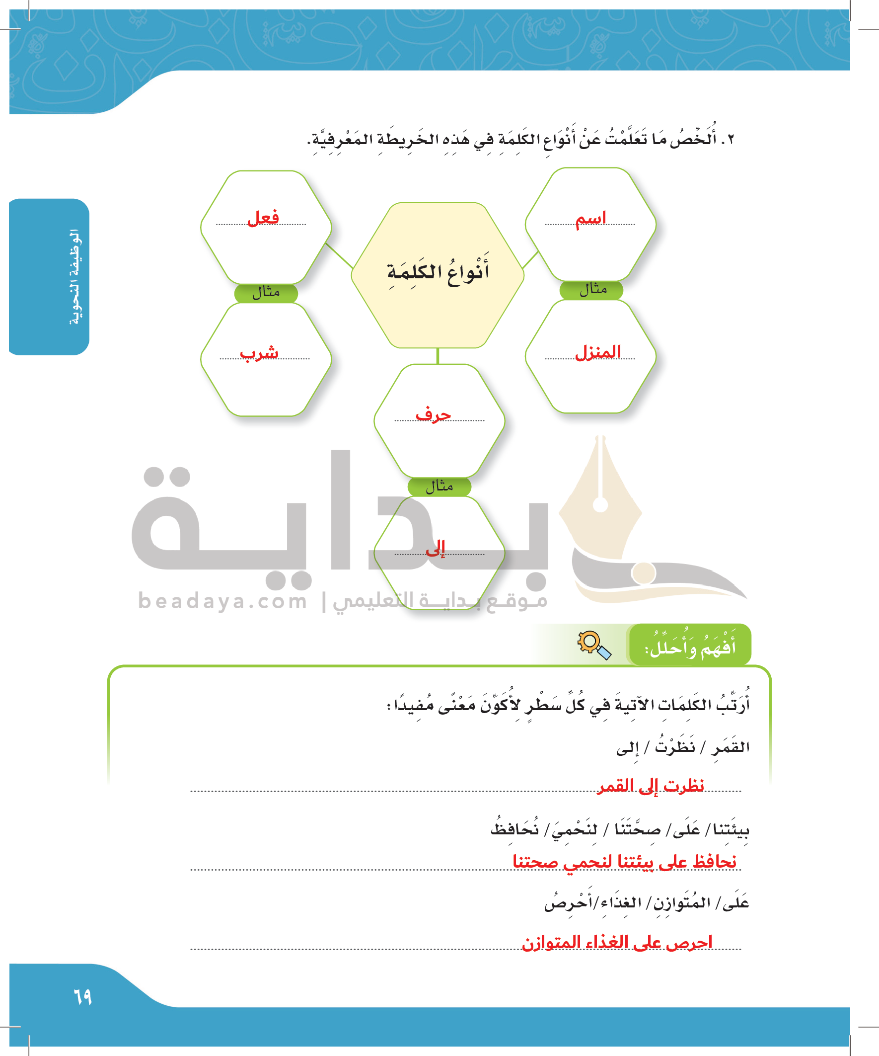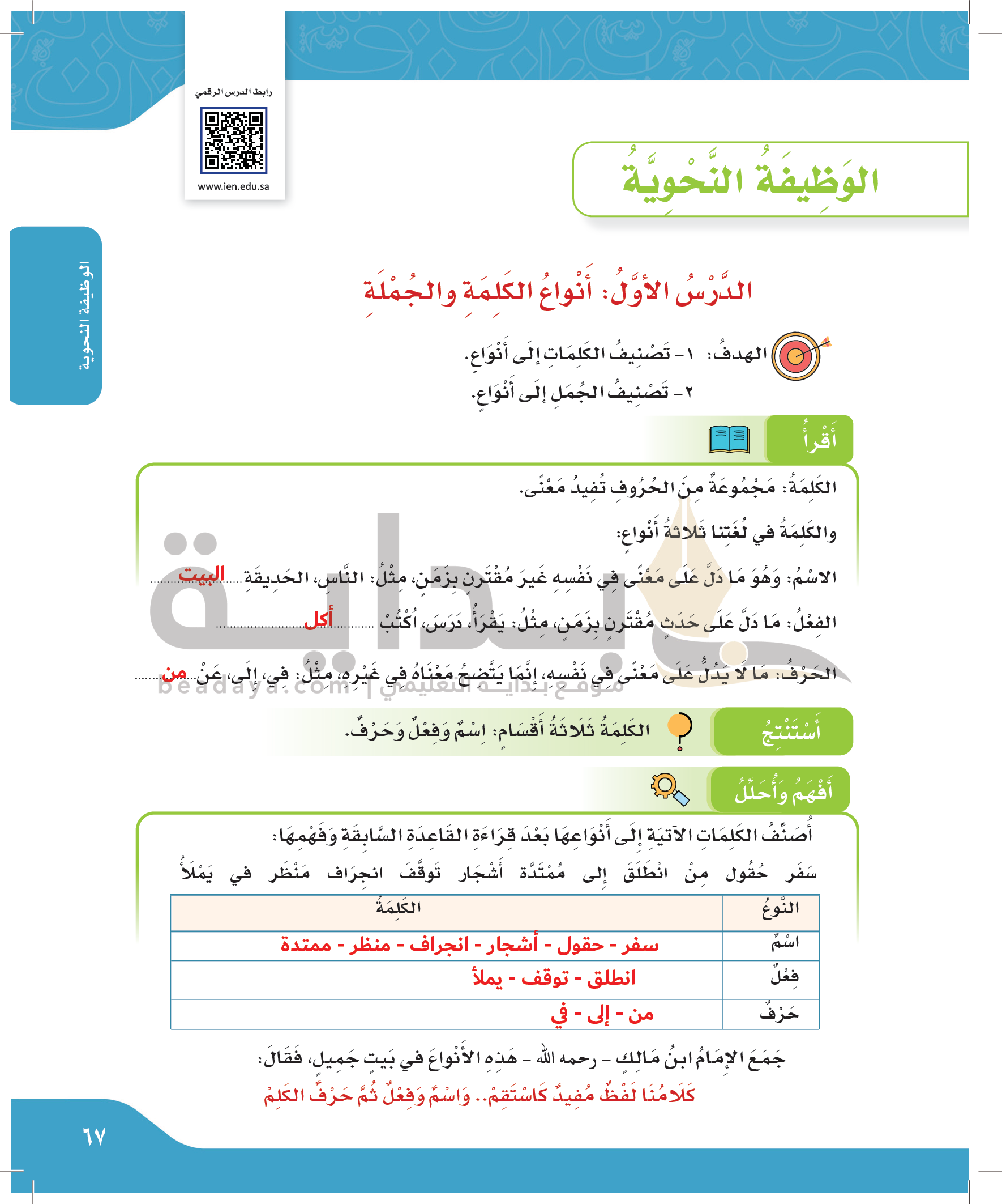 أنواع الكلمة والجملة