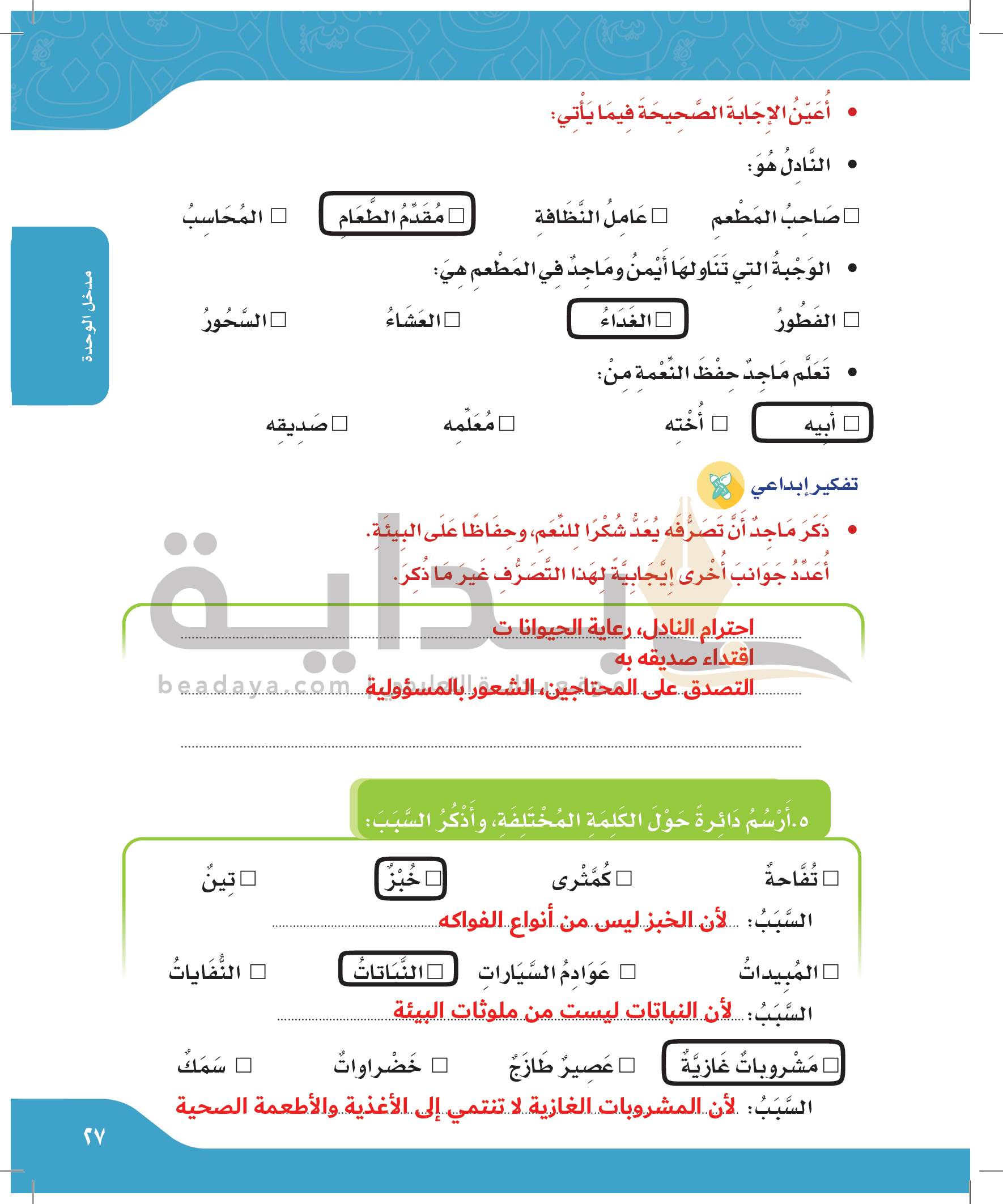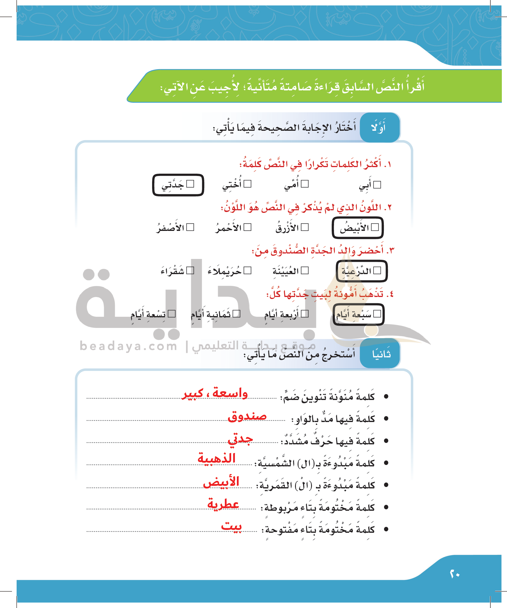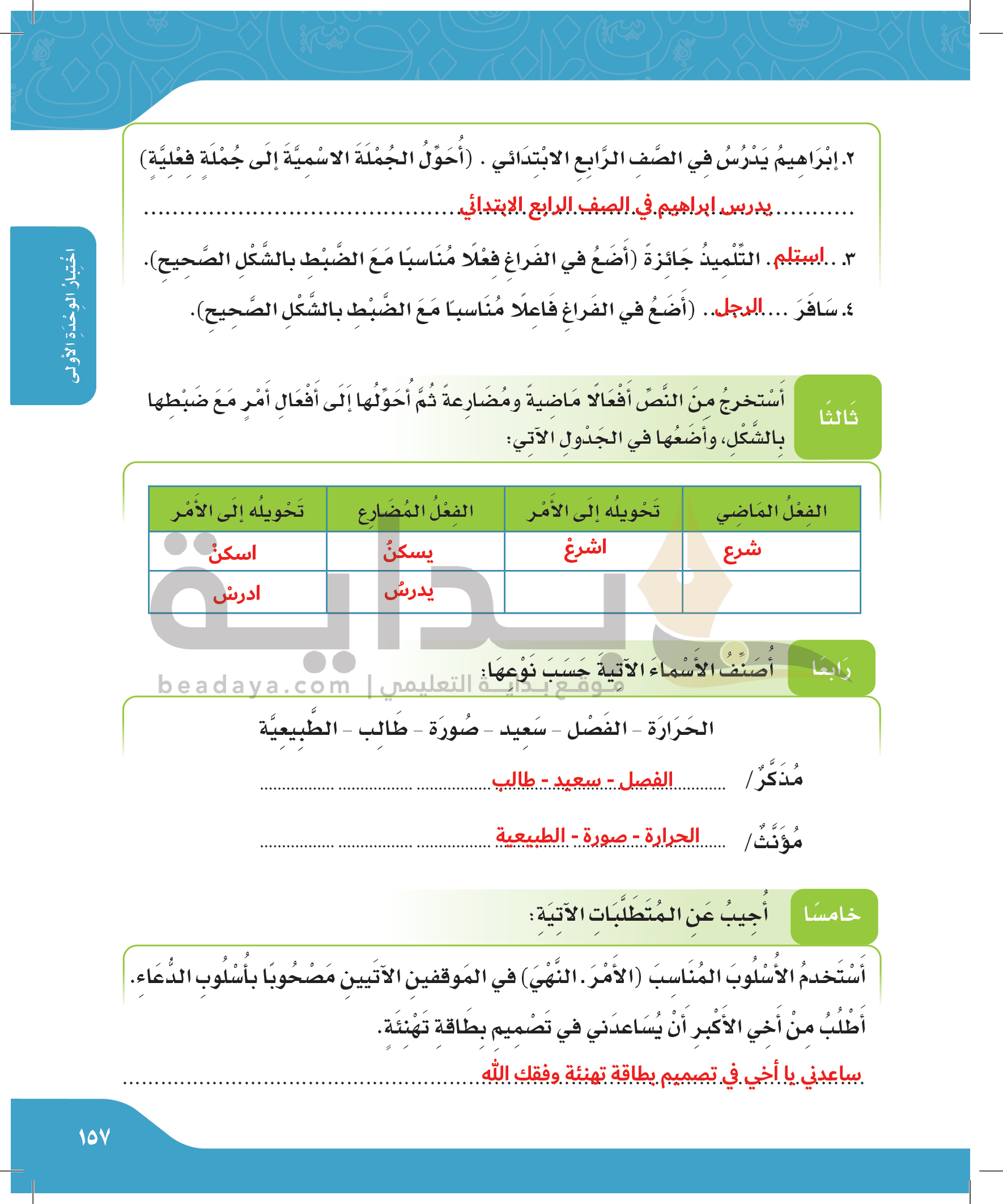 اختبار الوحدة الأولى