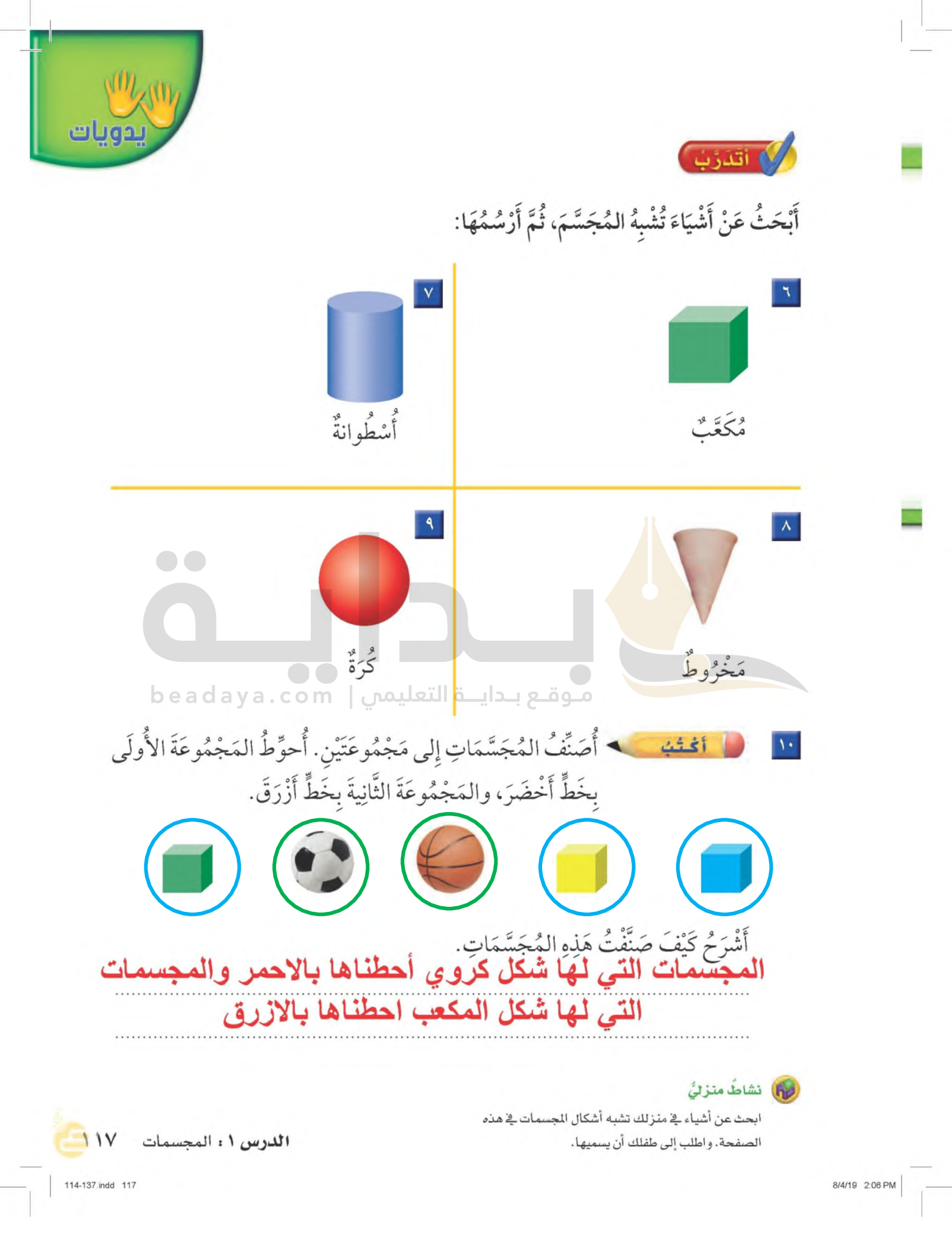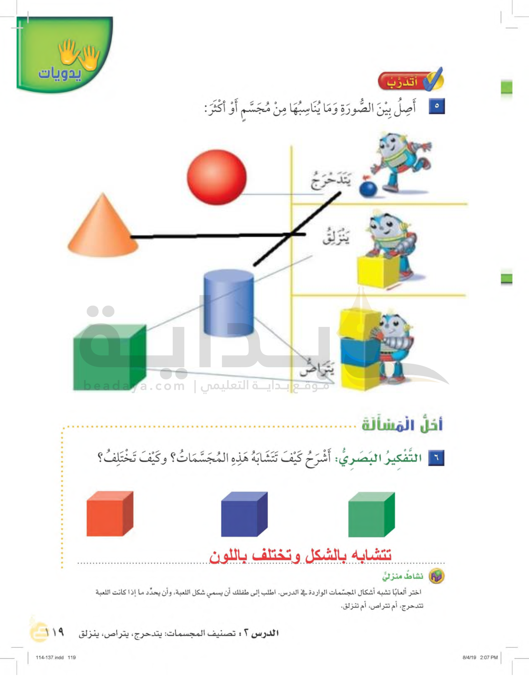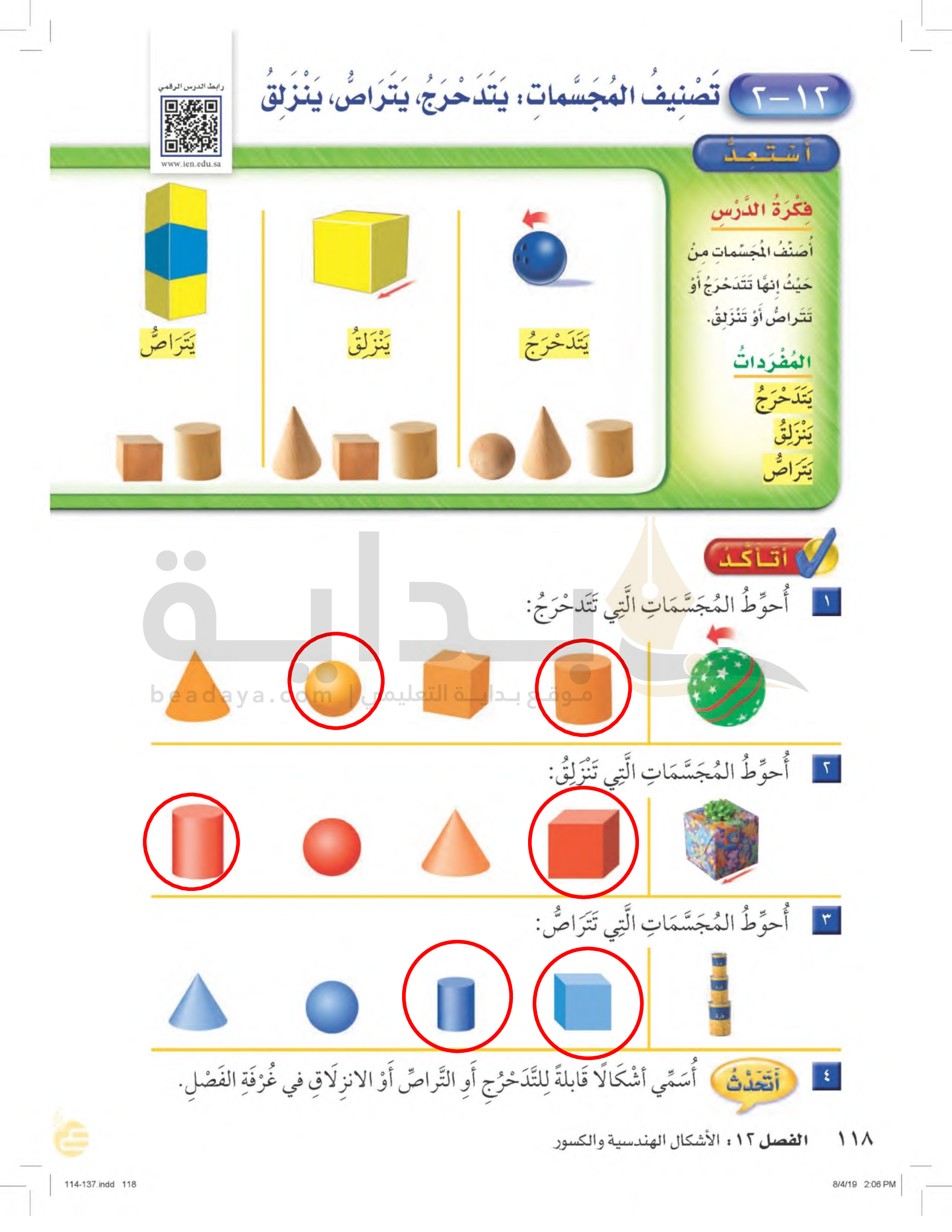 تصنيف المجسمات: يتدحرج، يتراص، ينزلق
