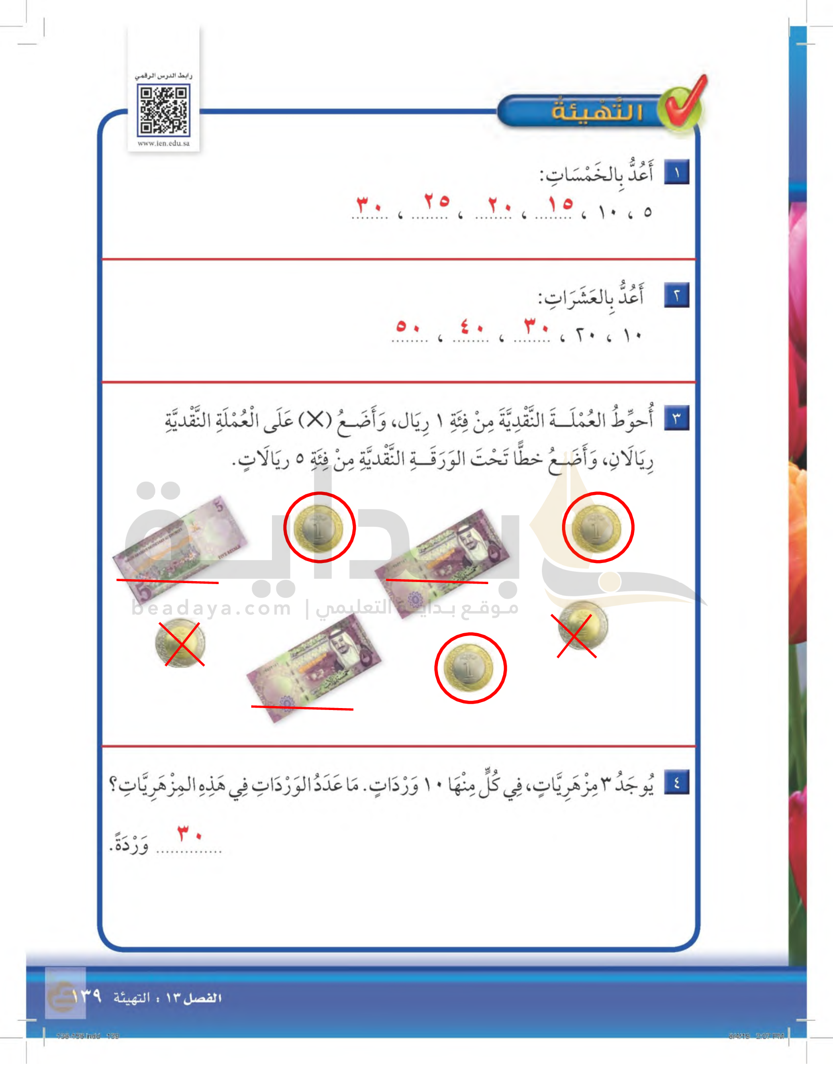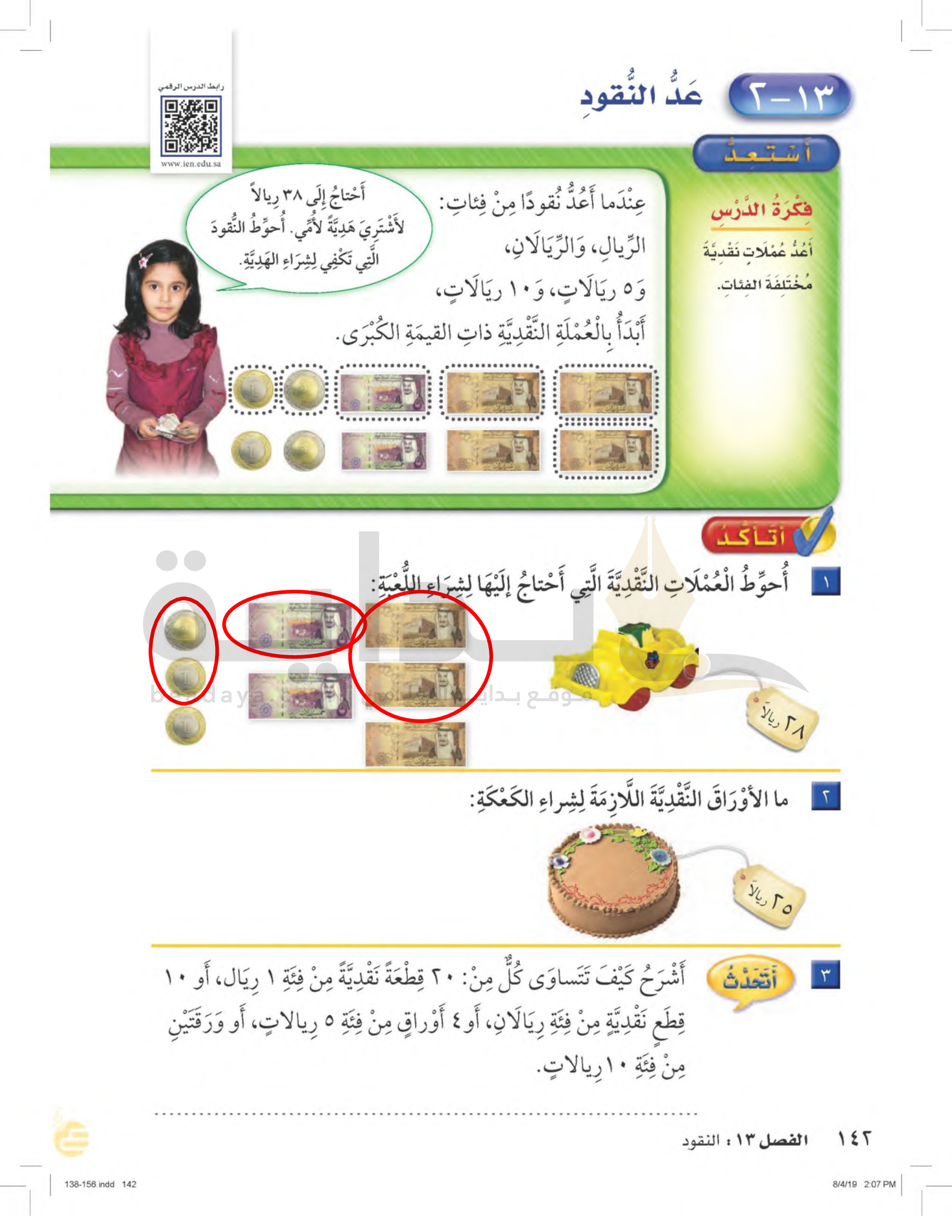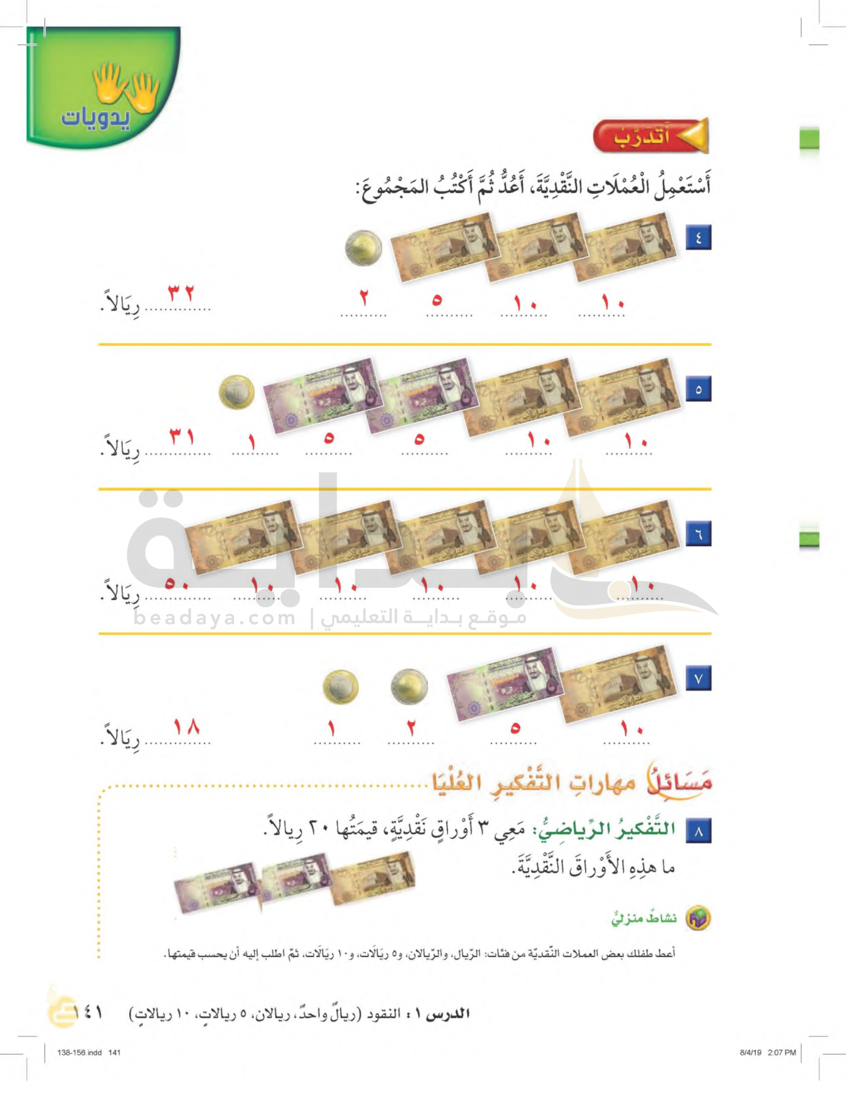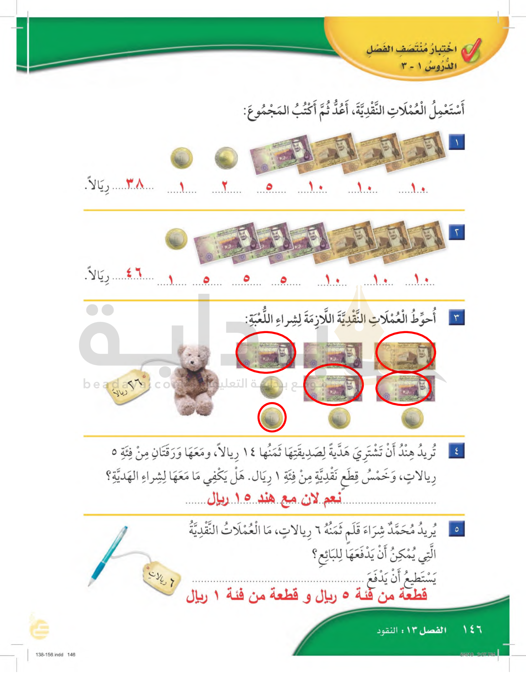 النقود (ريال واحد، ريالان، 5 ريالات، 10 ريالات)