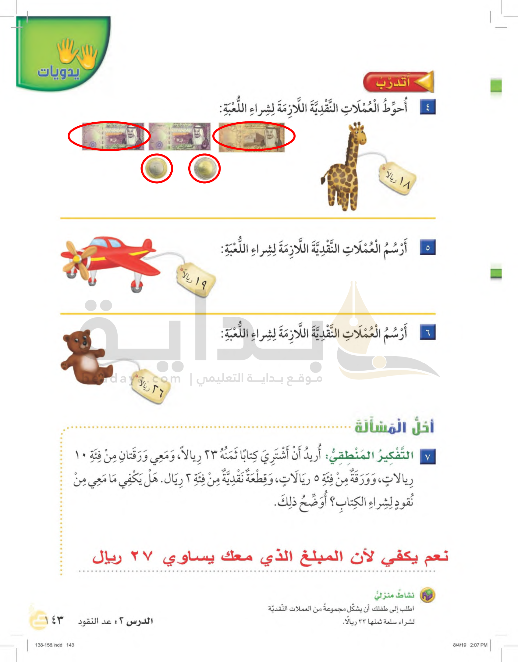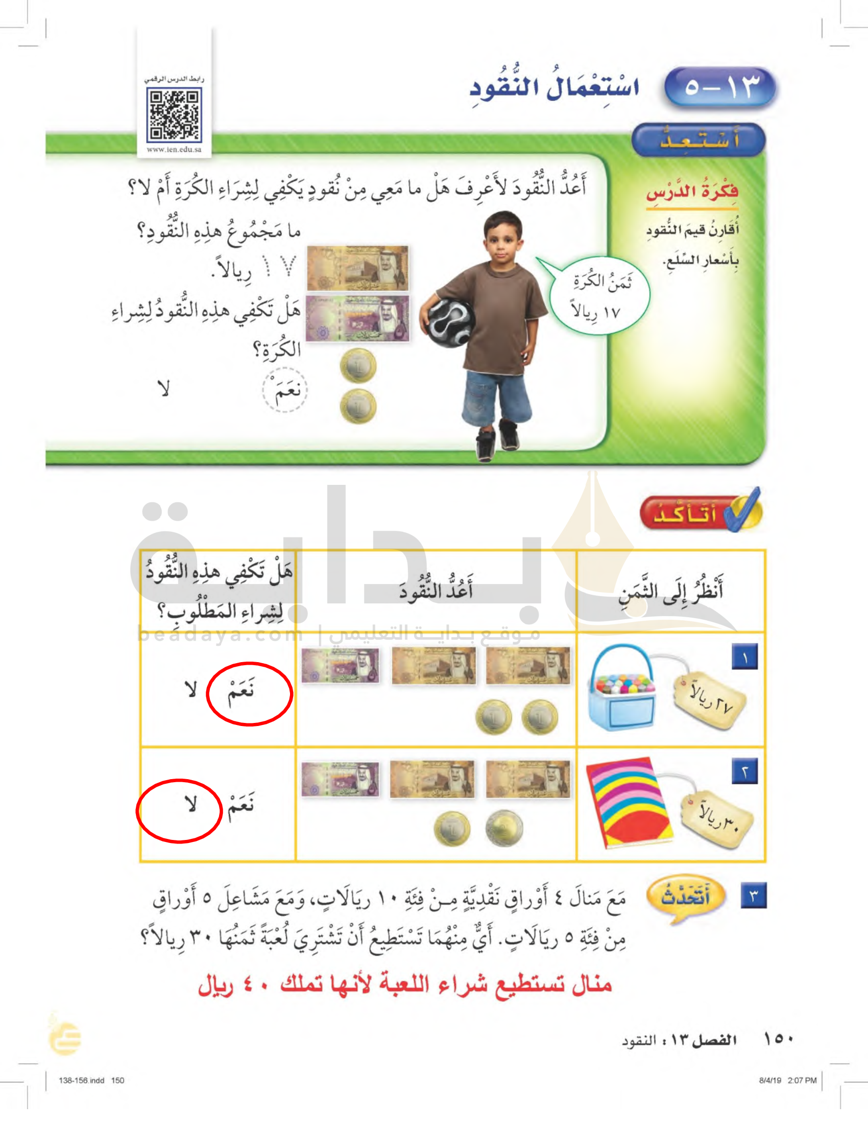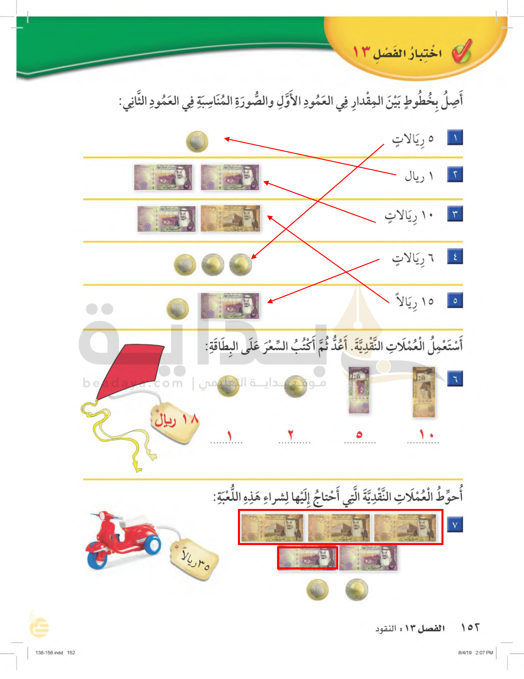 النقود (ريال واحد، ريالان، 5 ريالات، 10 ريالات)