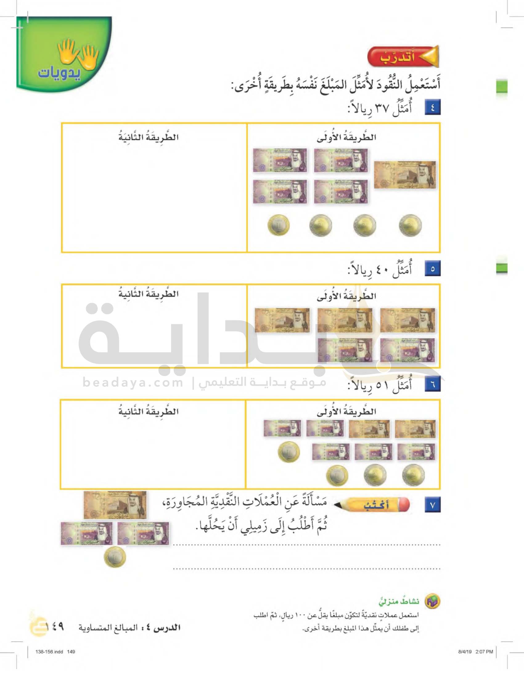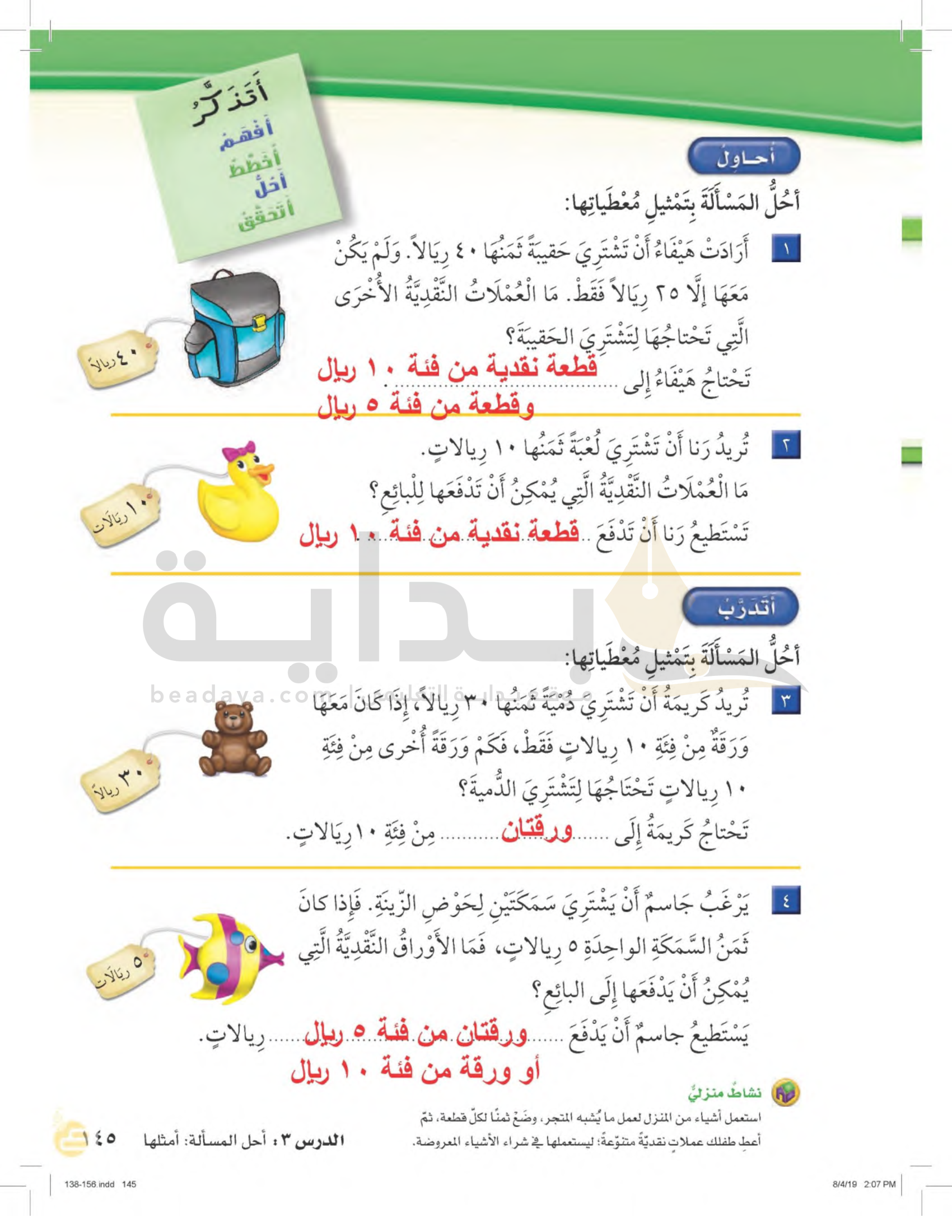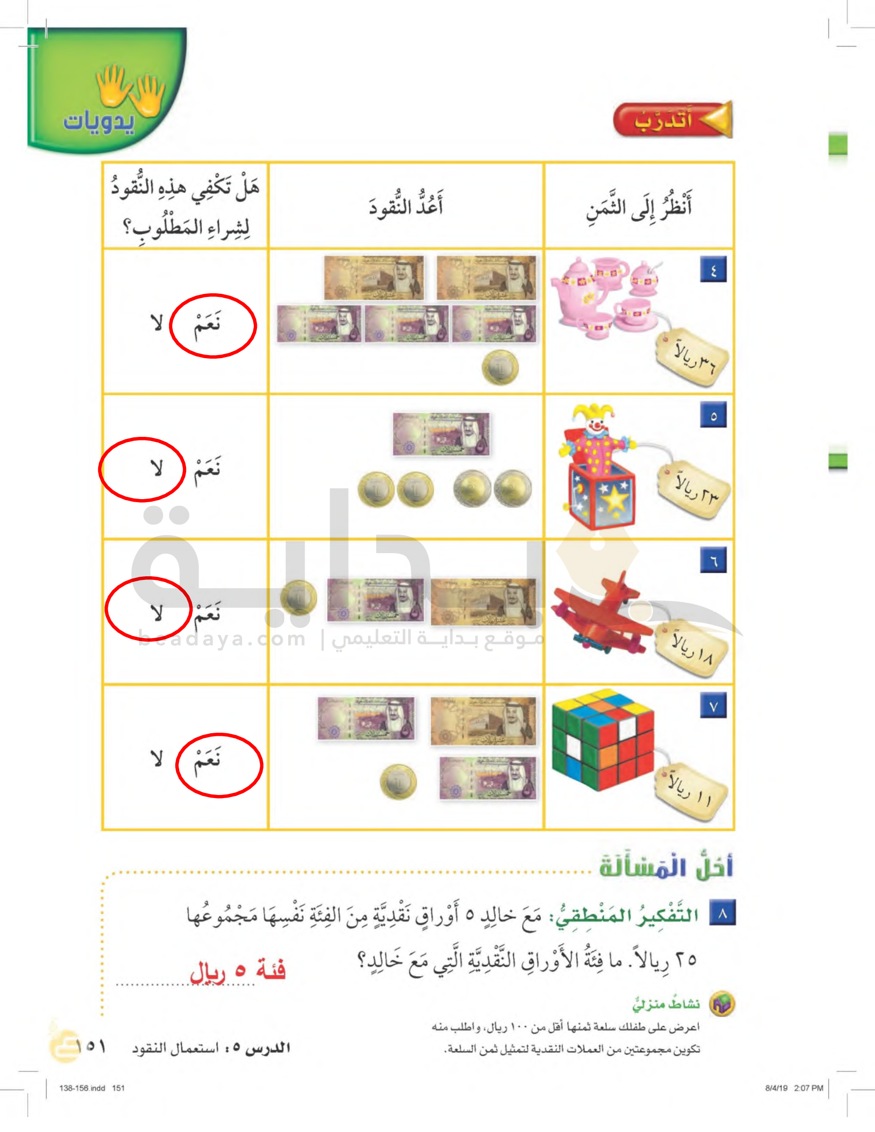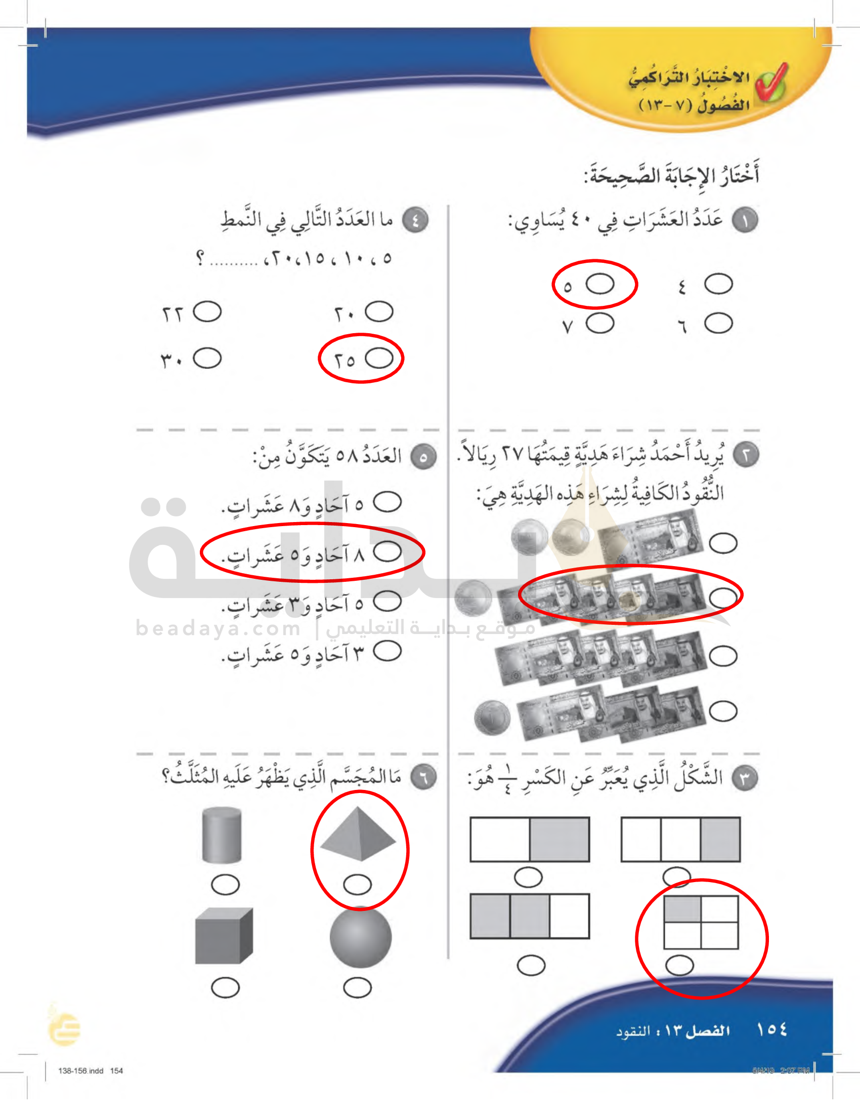 النقود (ريال واحد، ريالان، 5 ريالات، 10 ريالات)