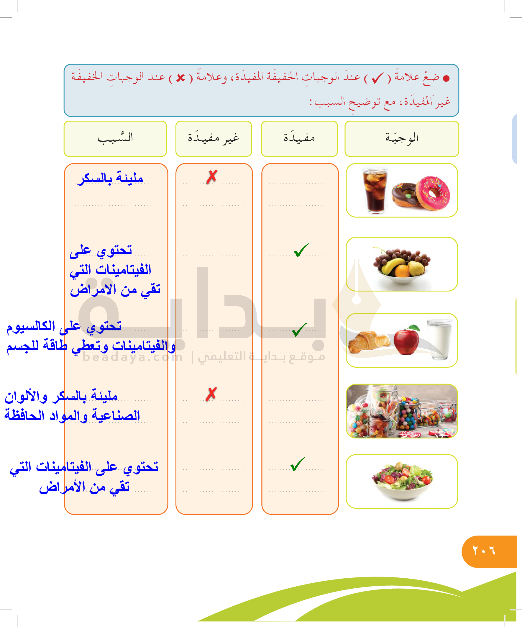 حل درس أصناف من الوجبات الصحية الخفيفة