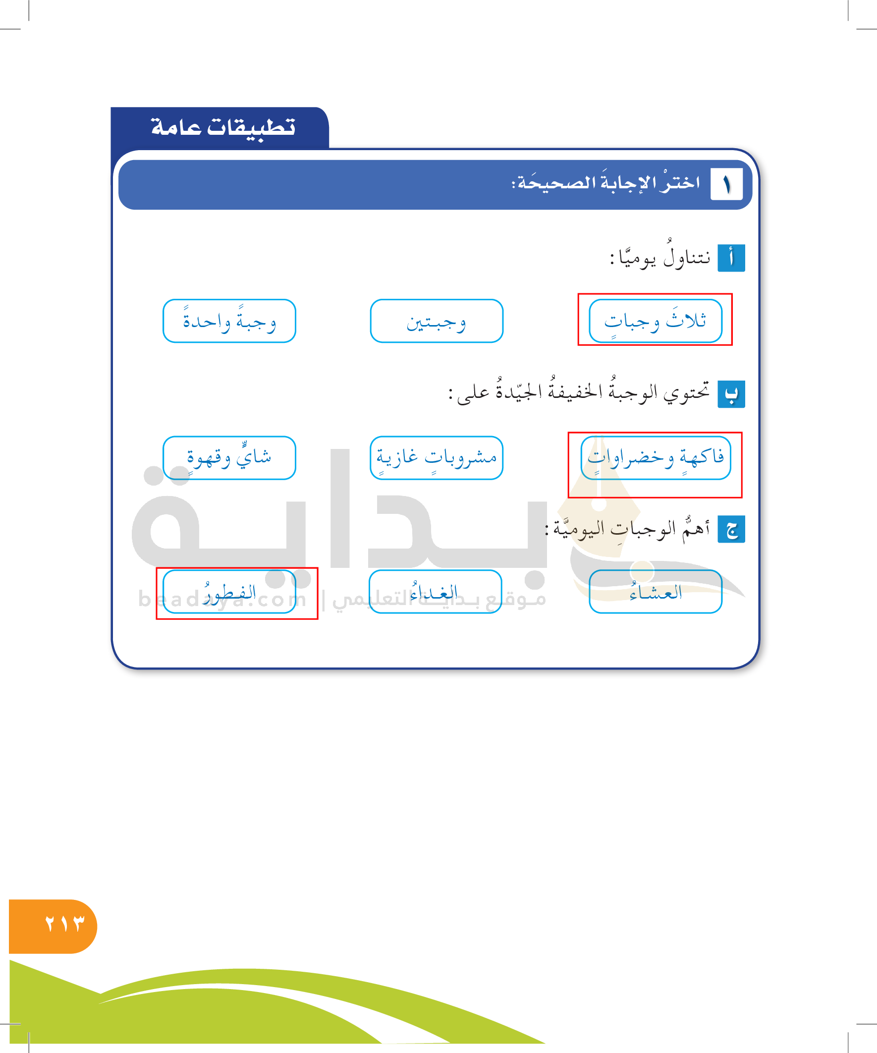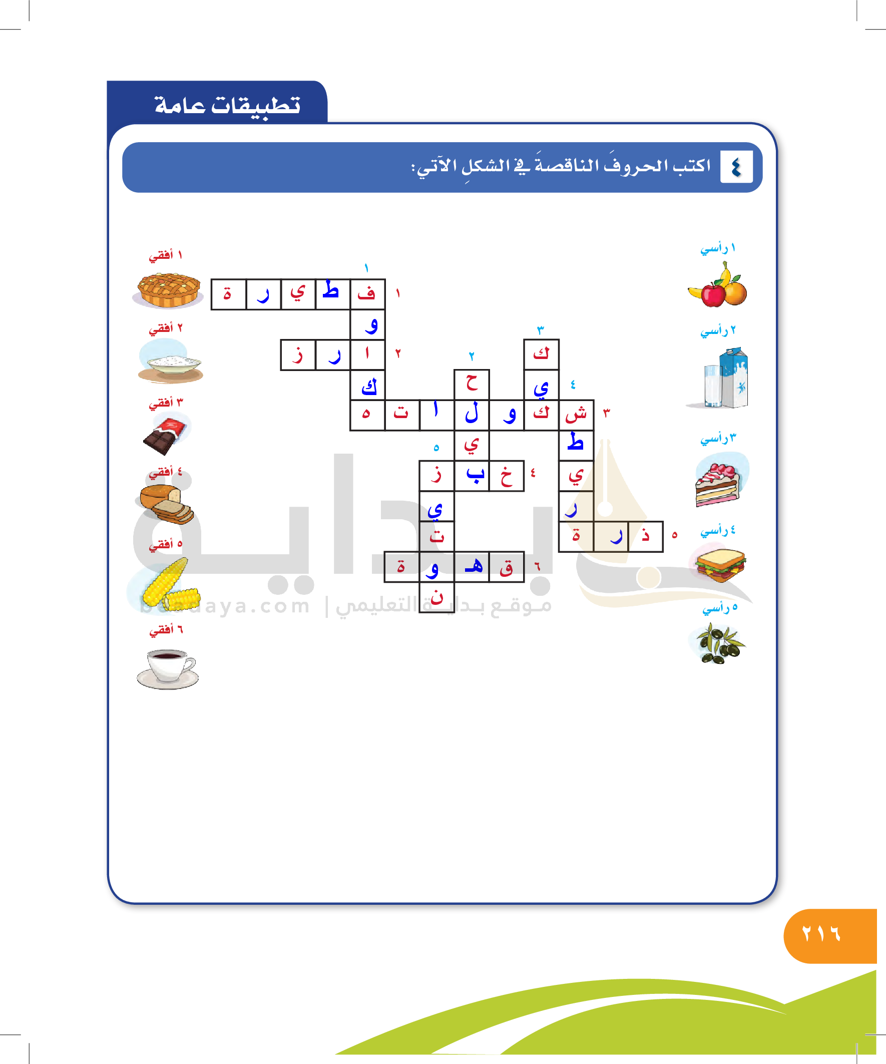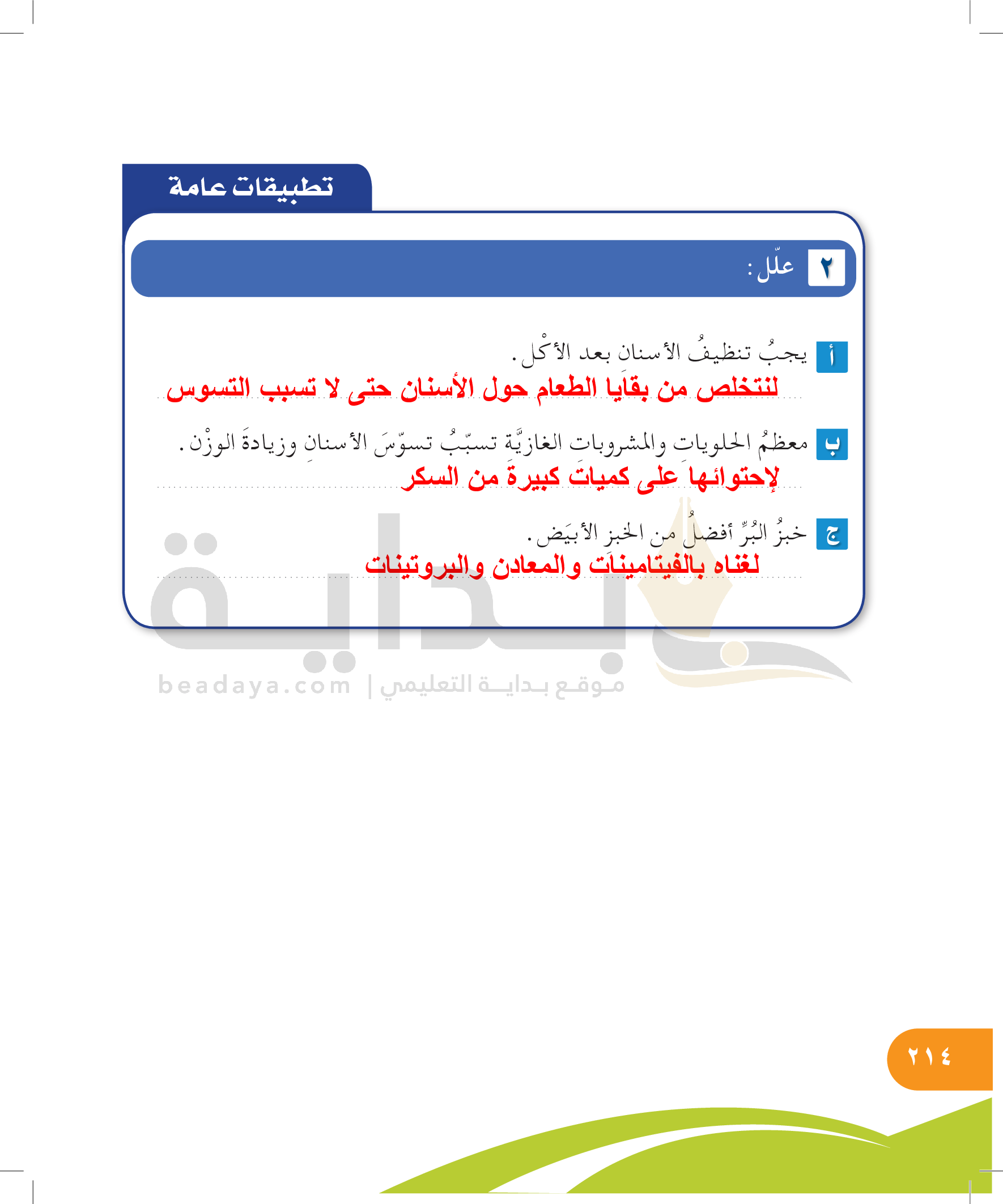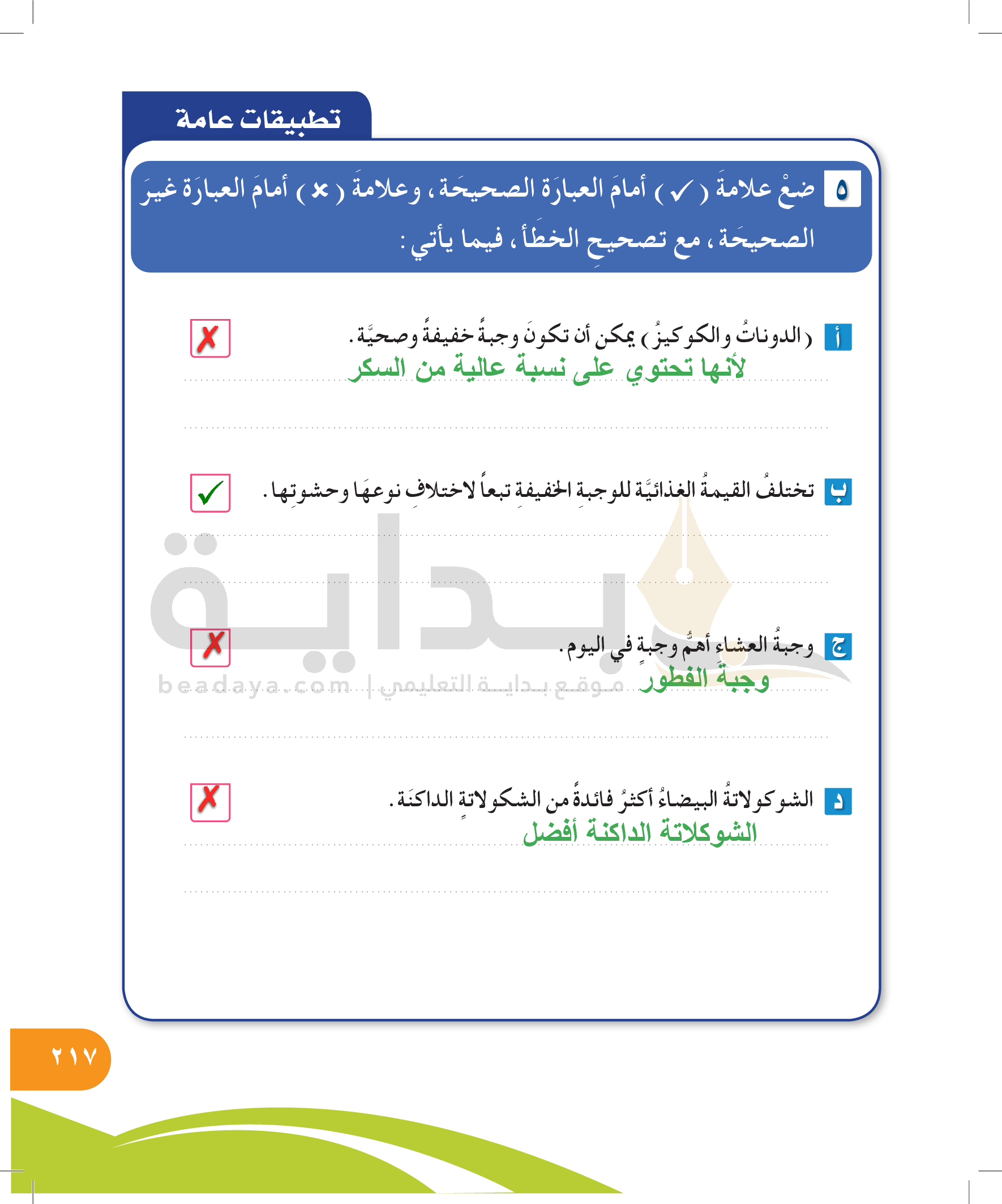 تطبيقات عامة (الغذائية) تربية أسرية خامس ابتدائي