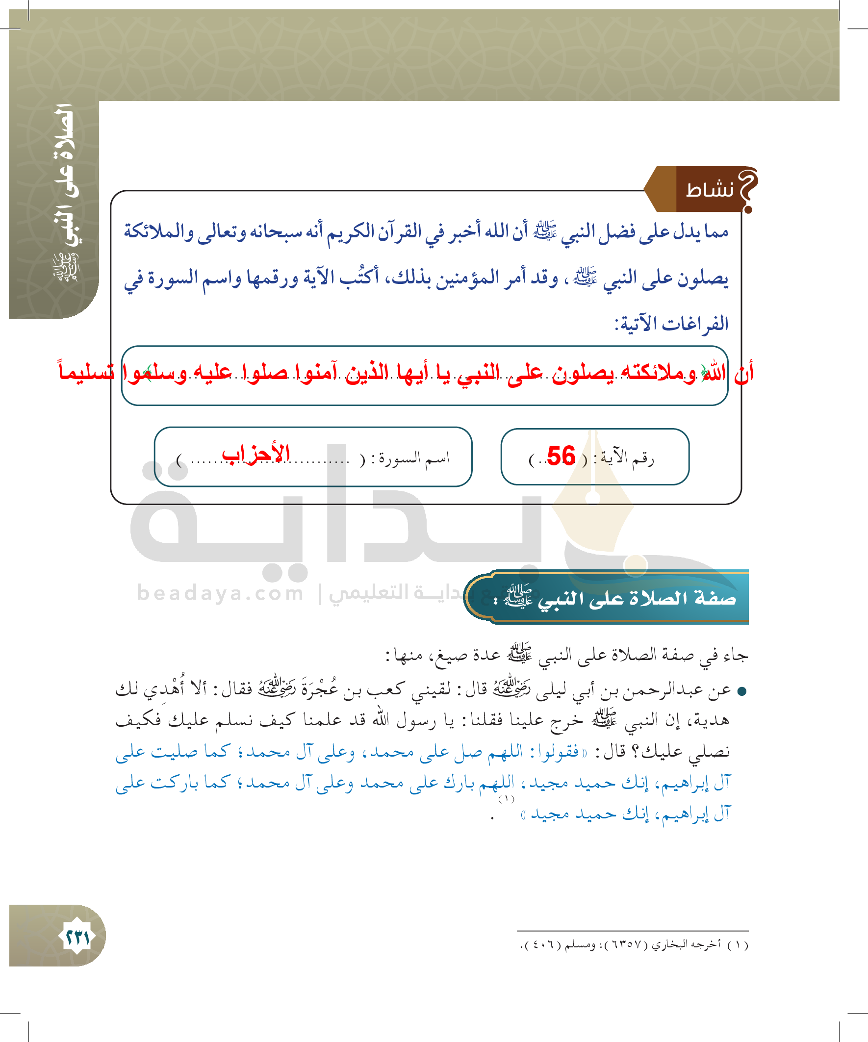 الصلاة على النبي ﷺ معناها فضلها صفتها