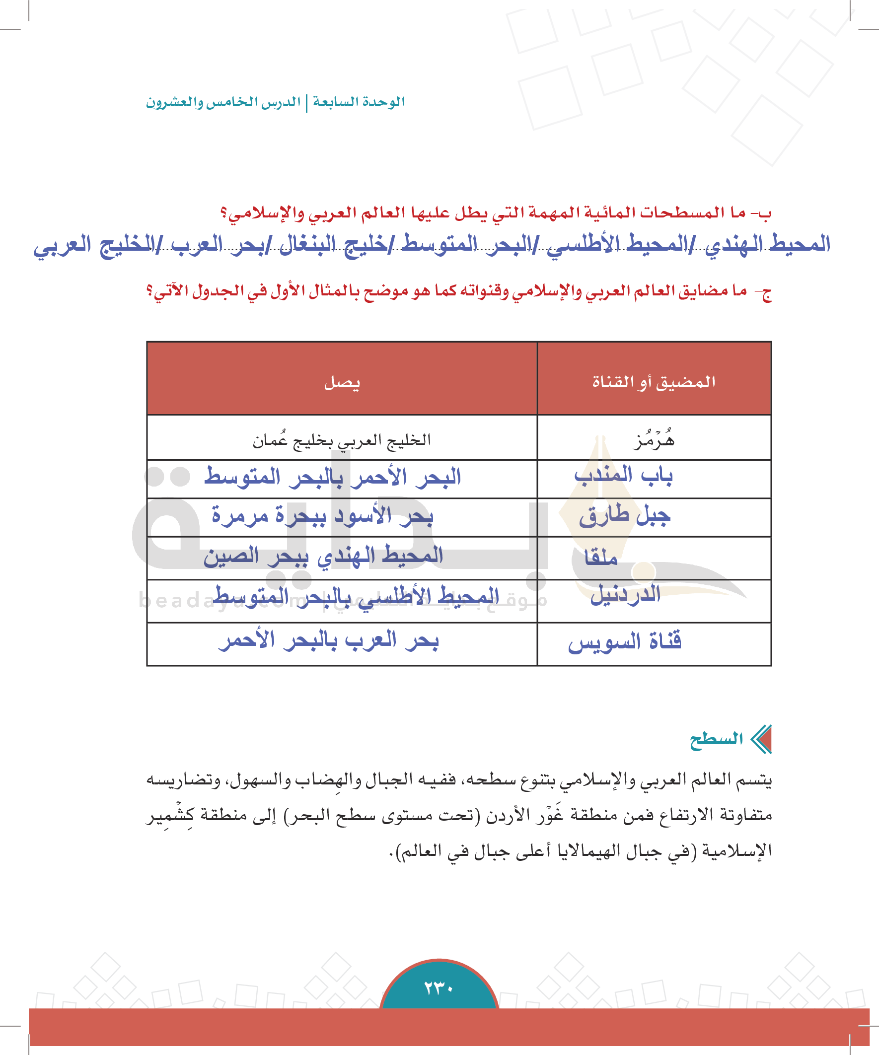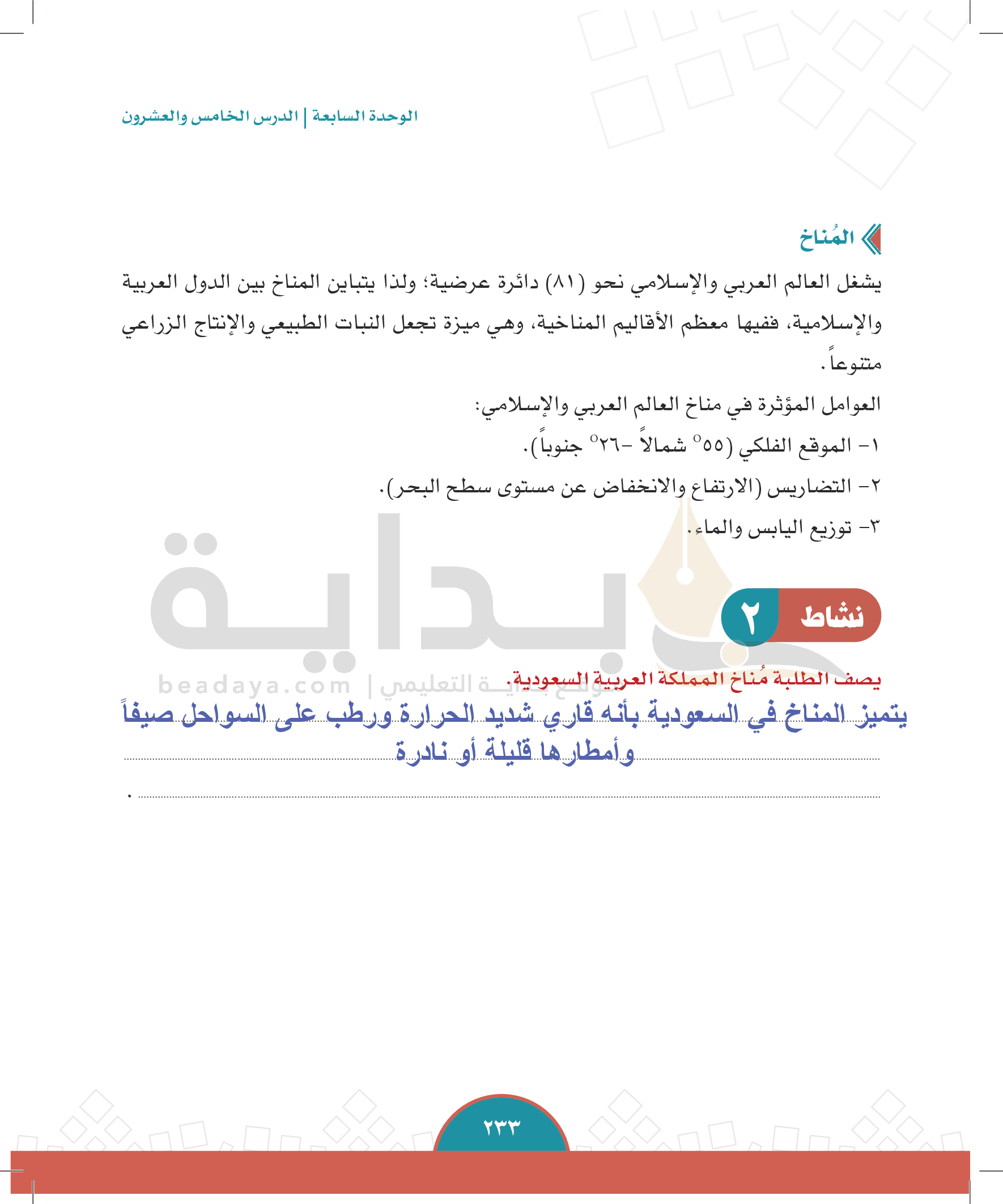 الخصائص الطبيعية العالم العربي و الإسلامي