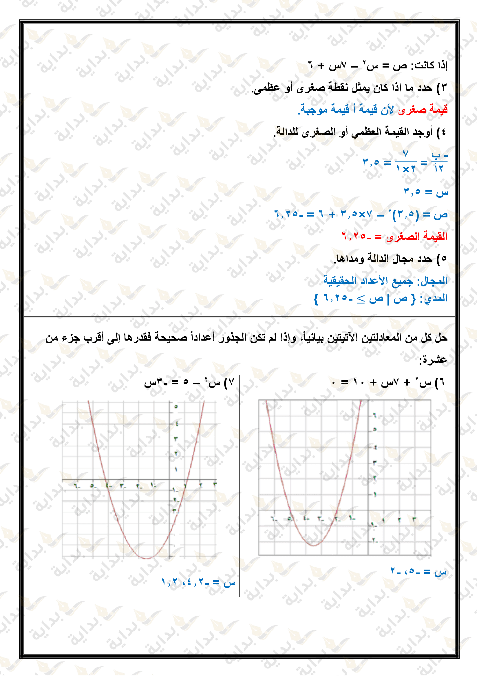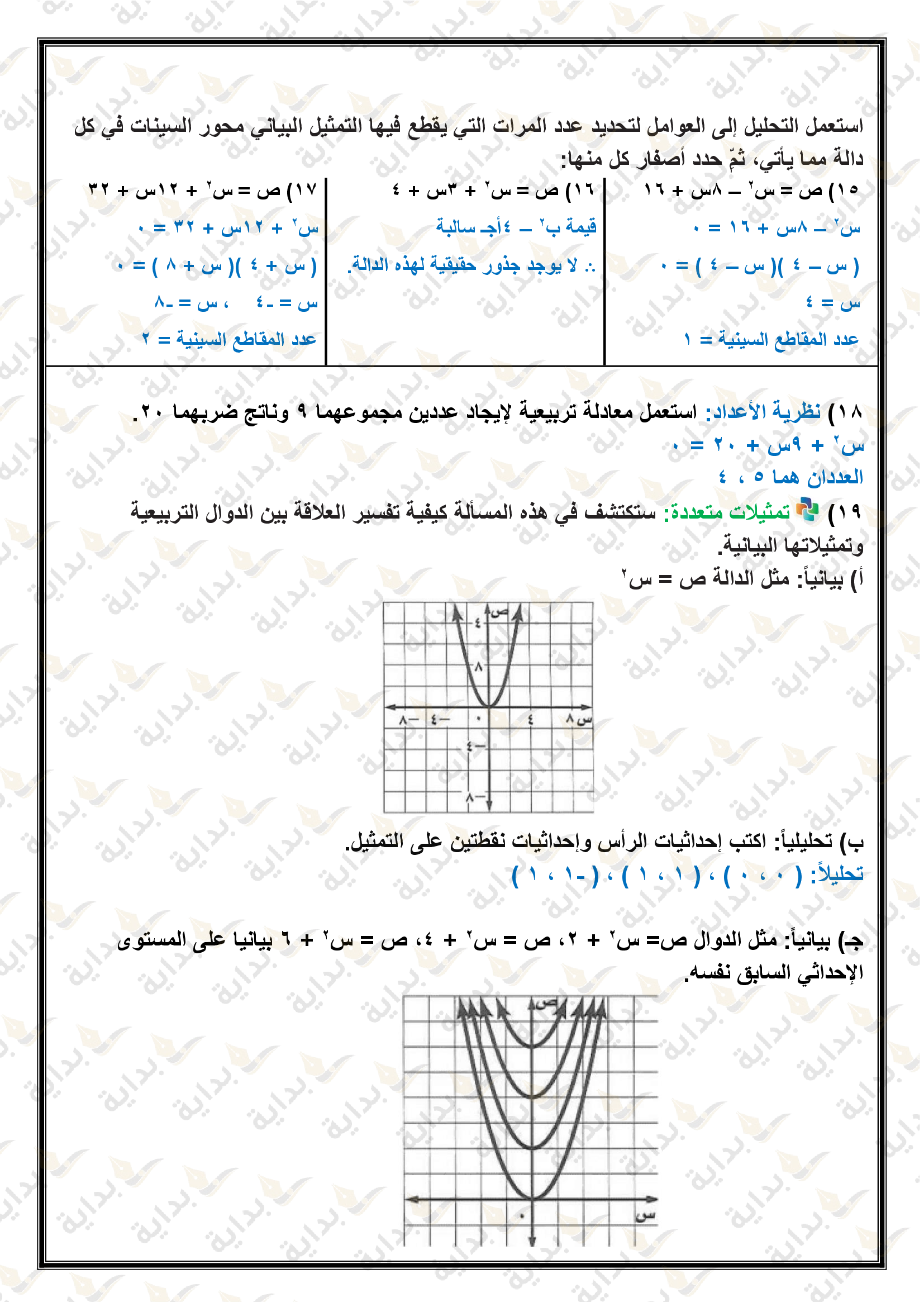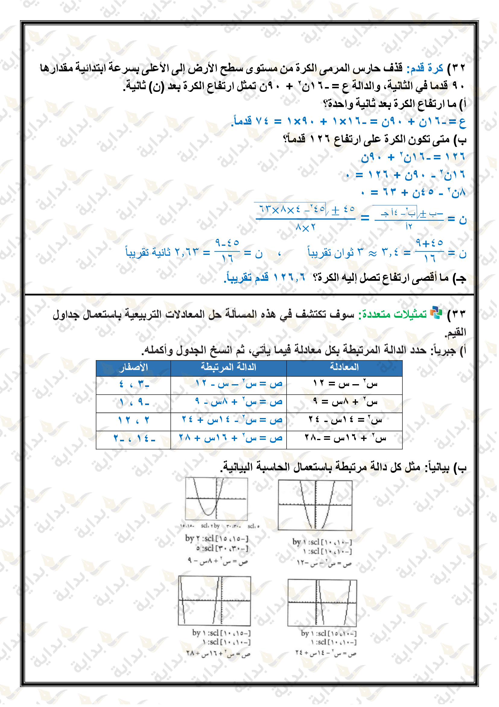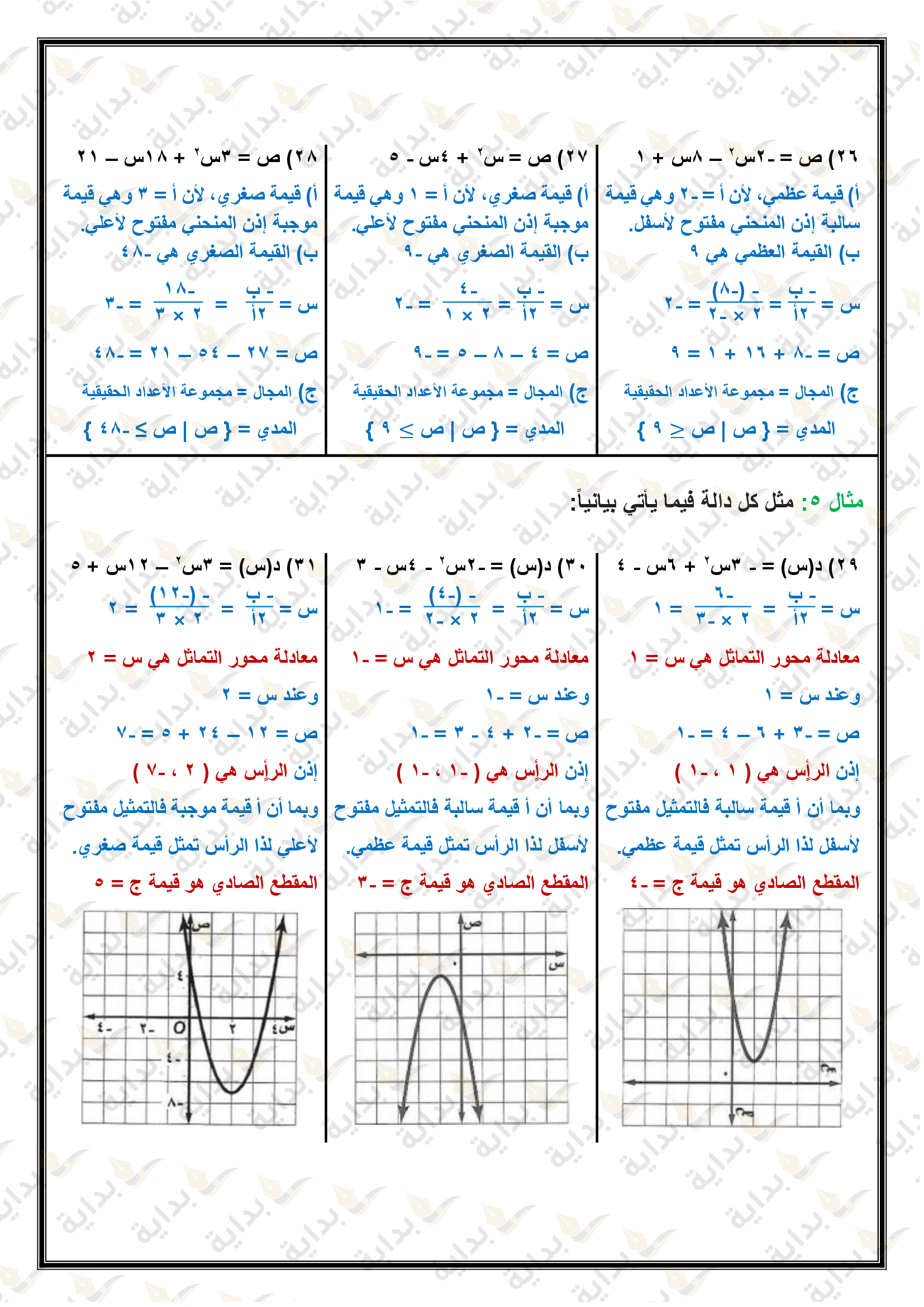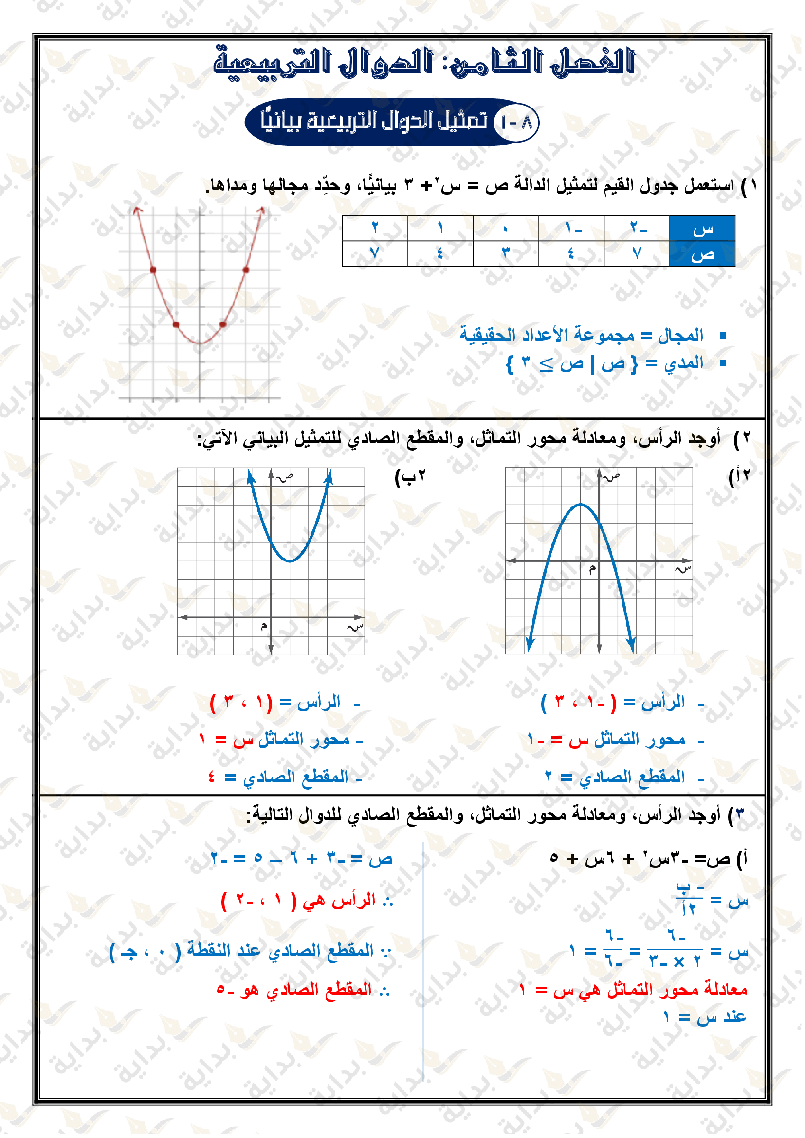 تمثيل الدوال التربيعية بيانياً