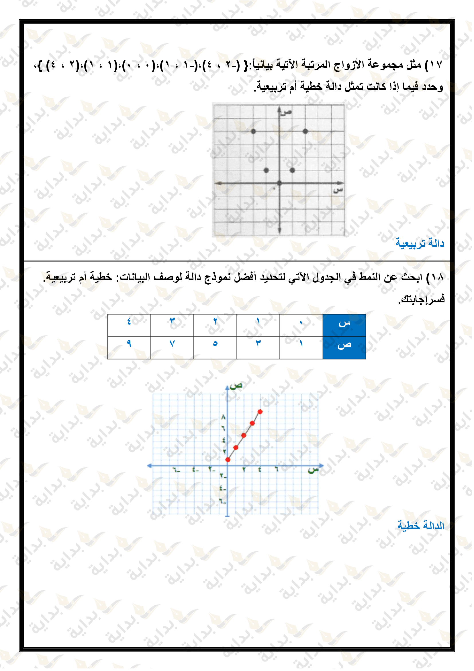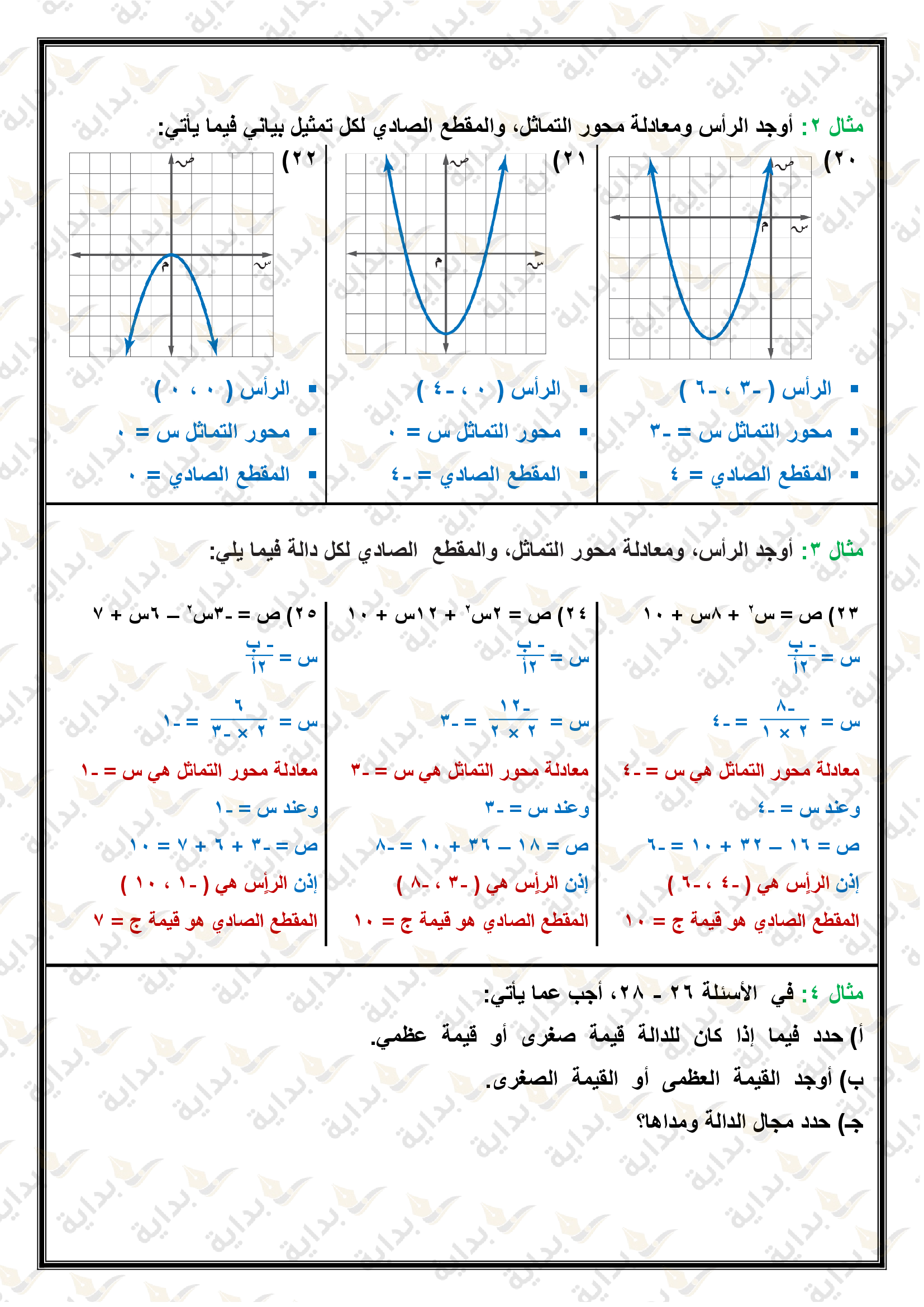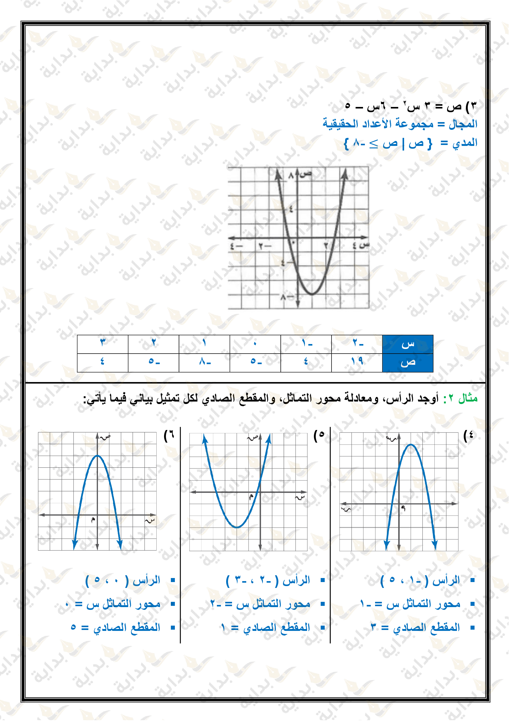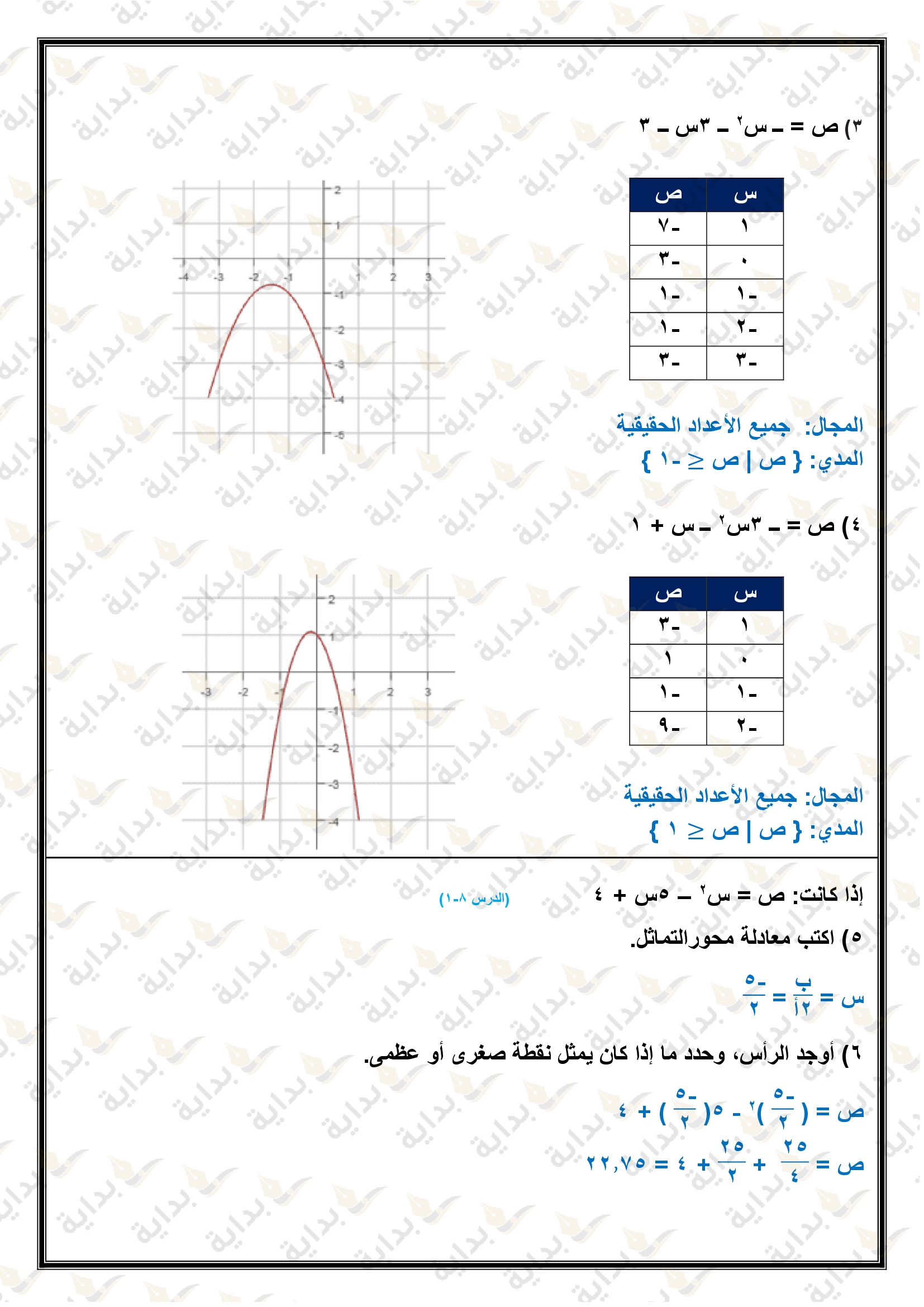 تمثيل الدوال التربيعية بيانياً