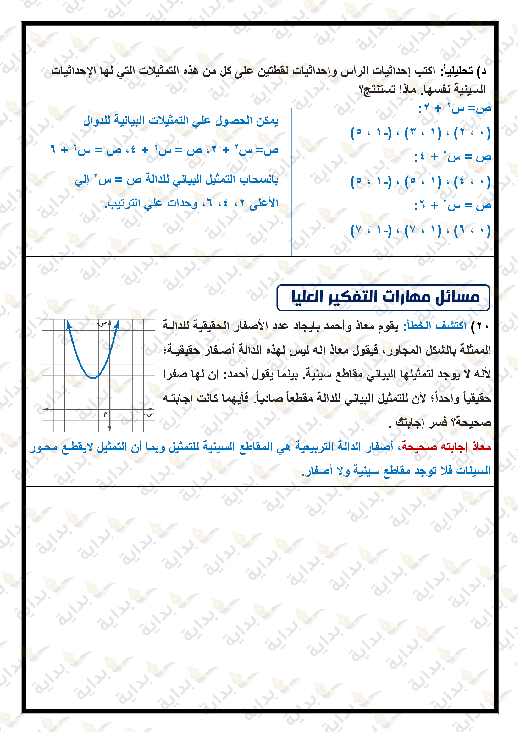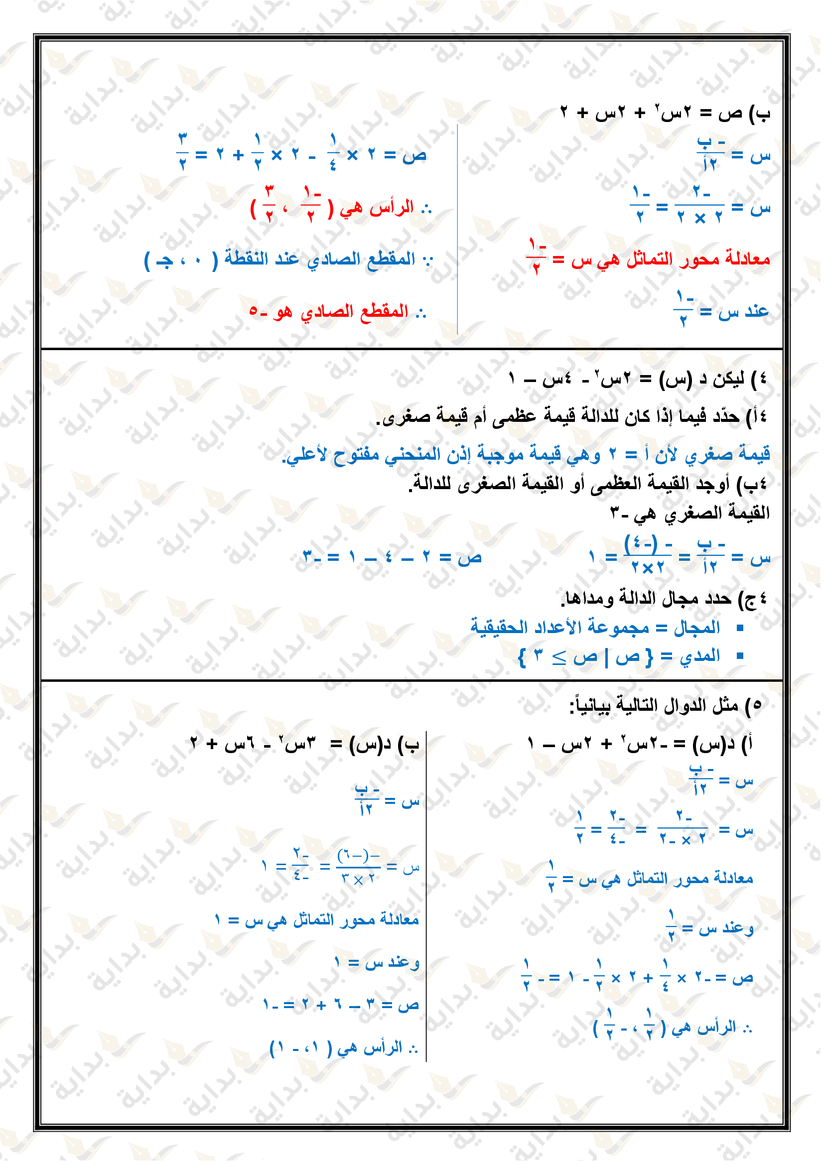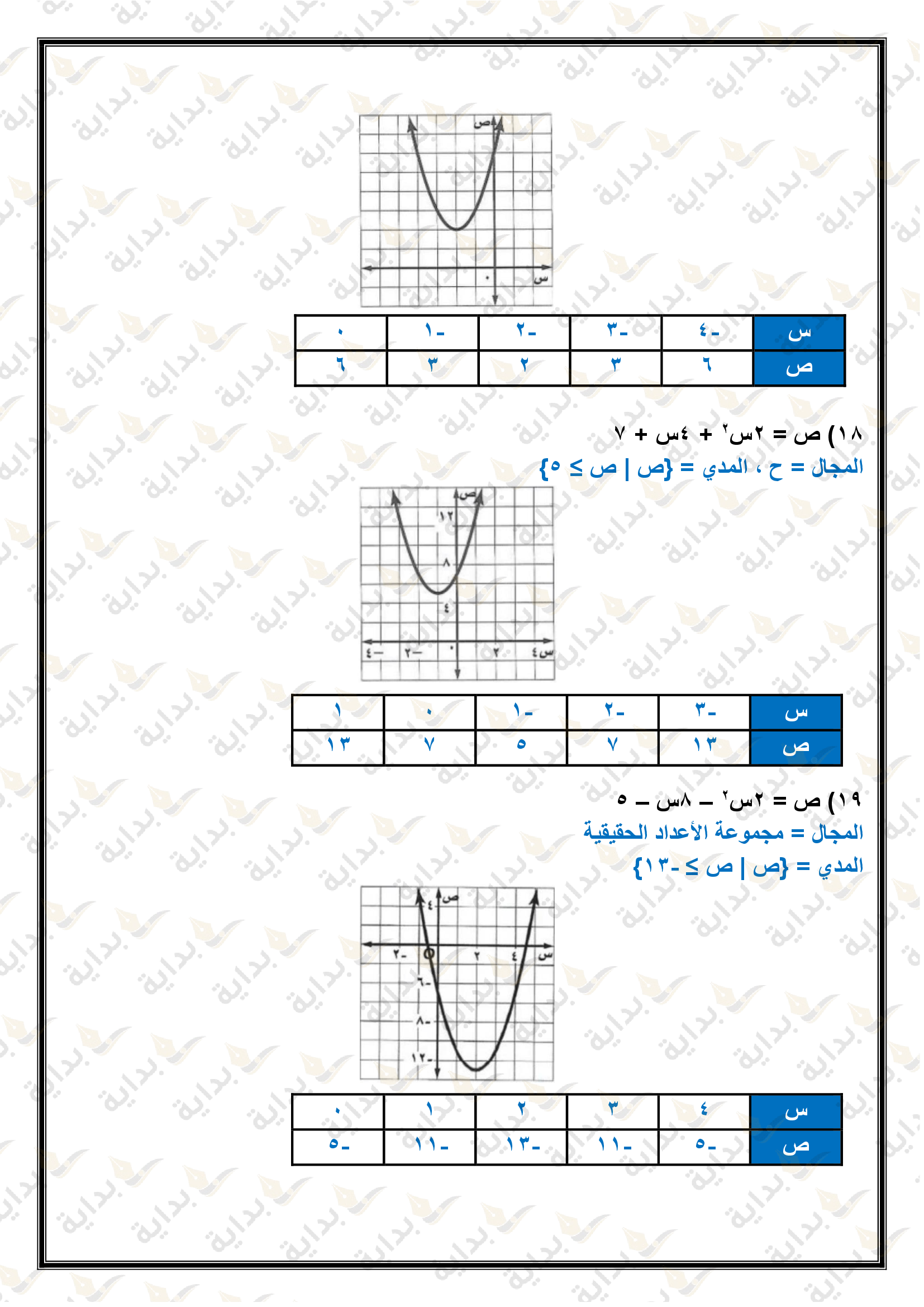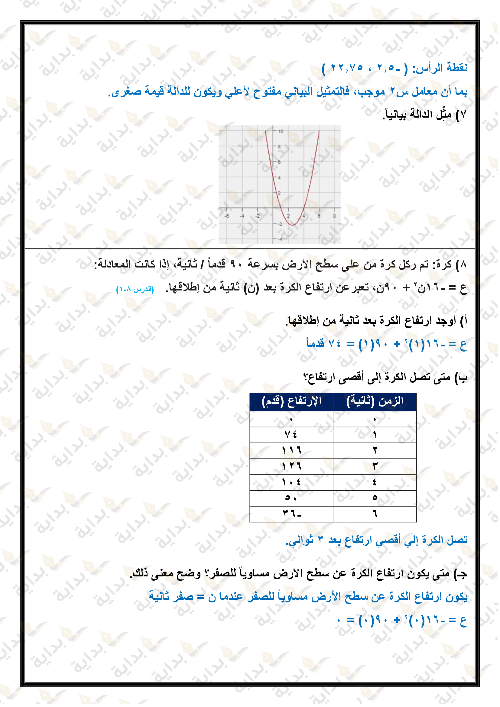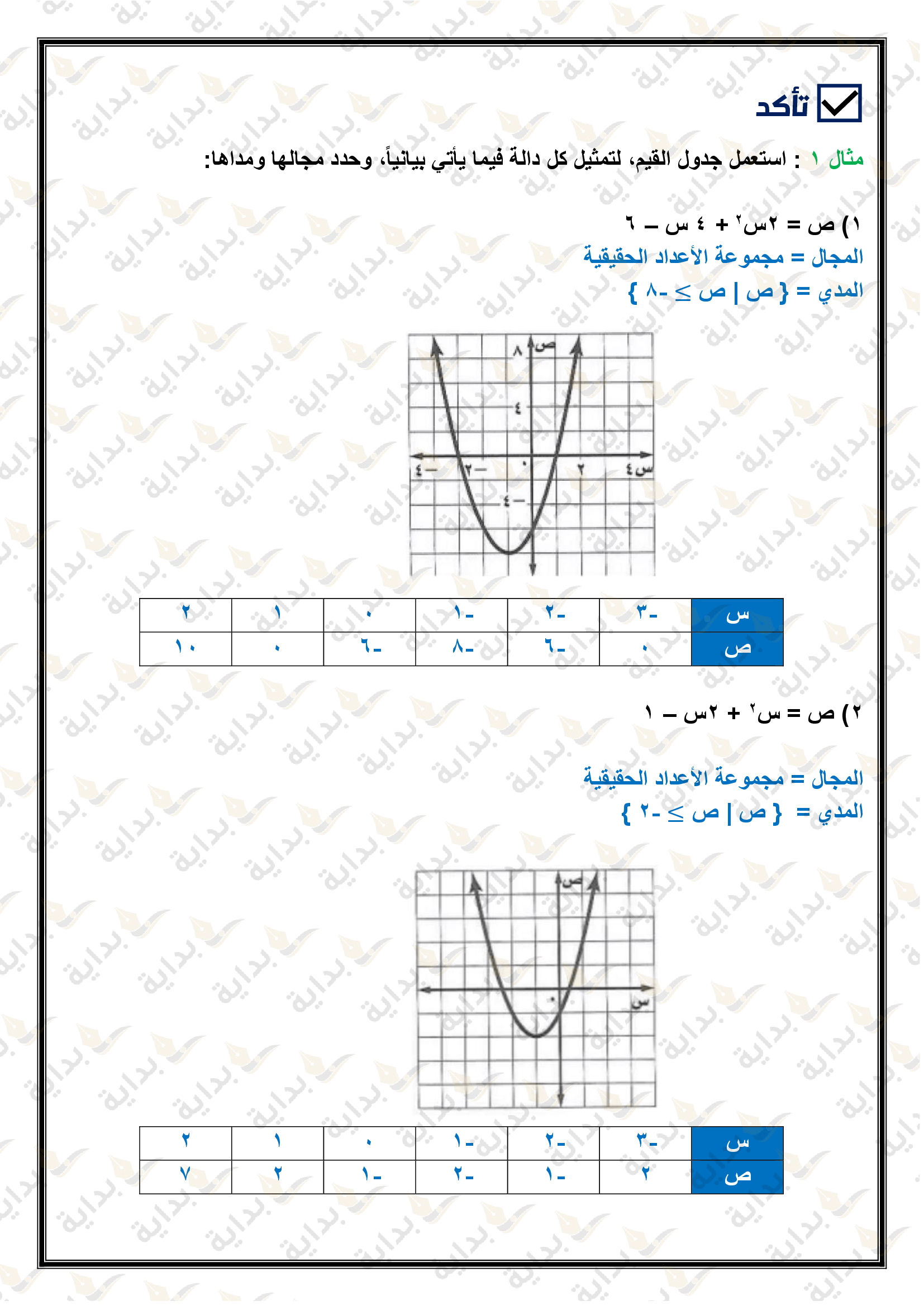 تمثيل الدوال التربيعية بيانياً