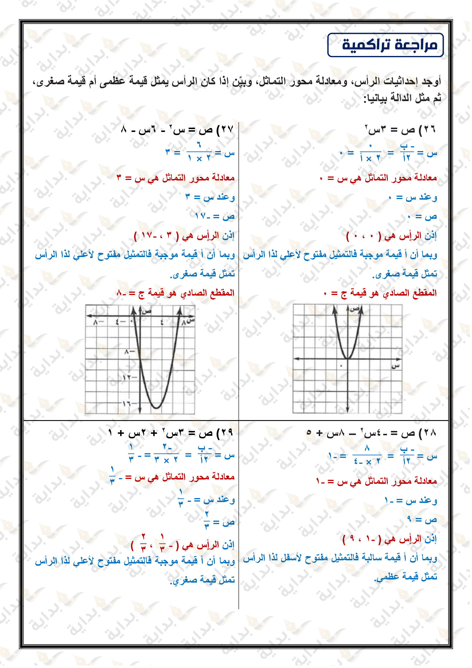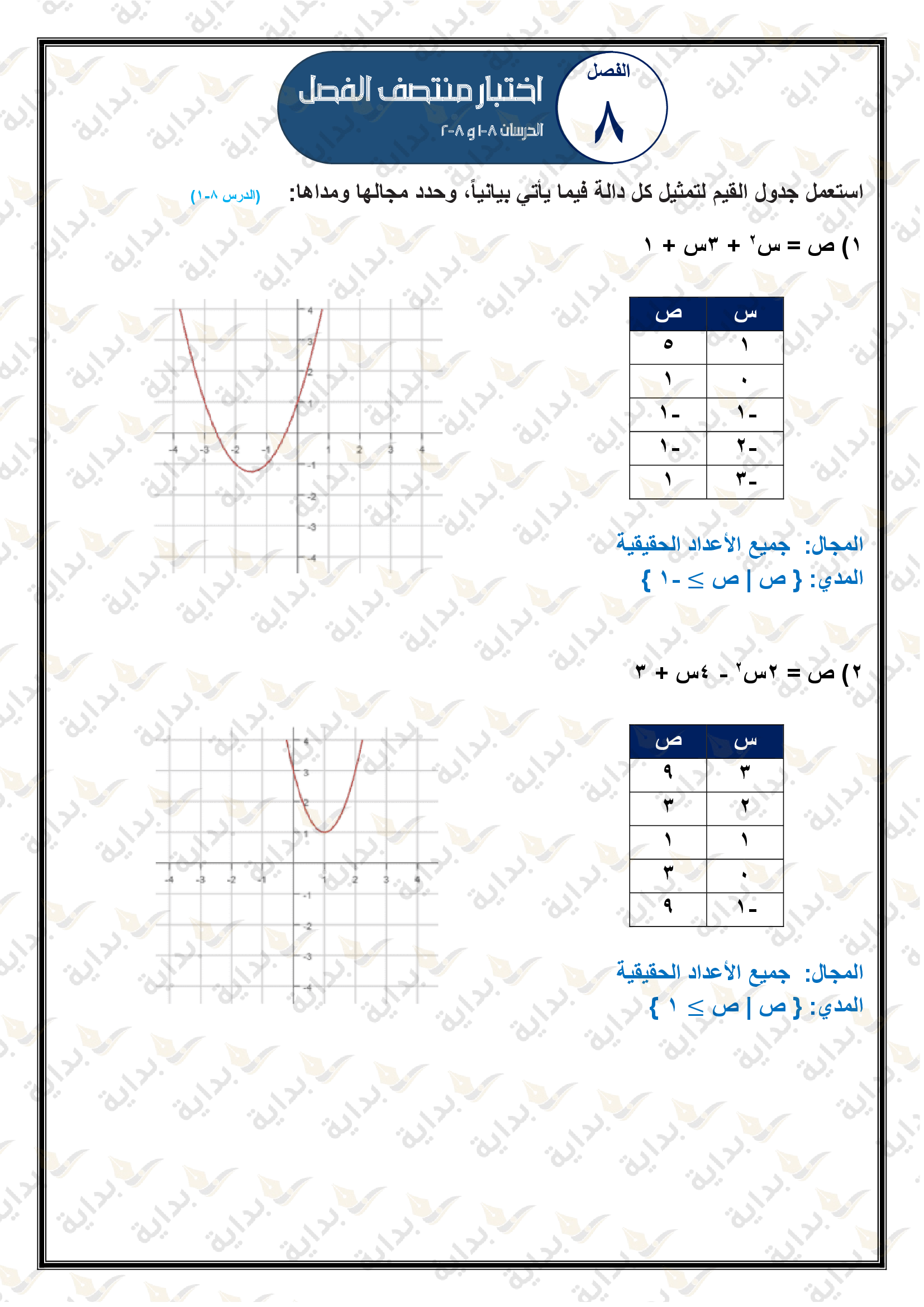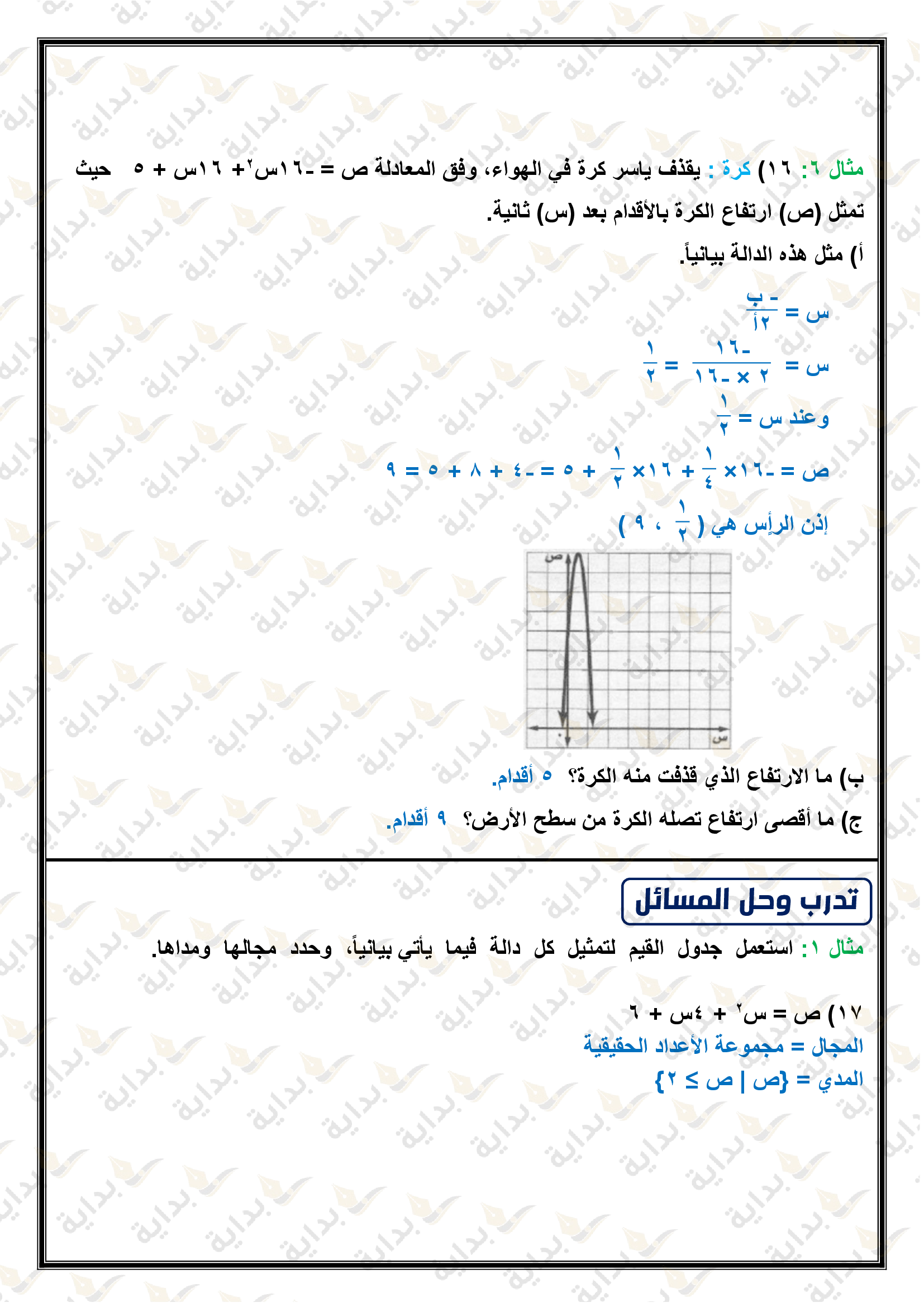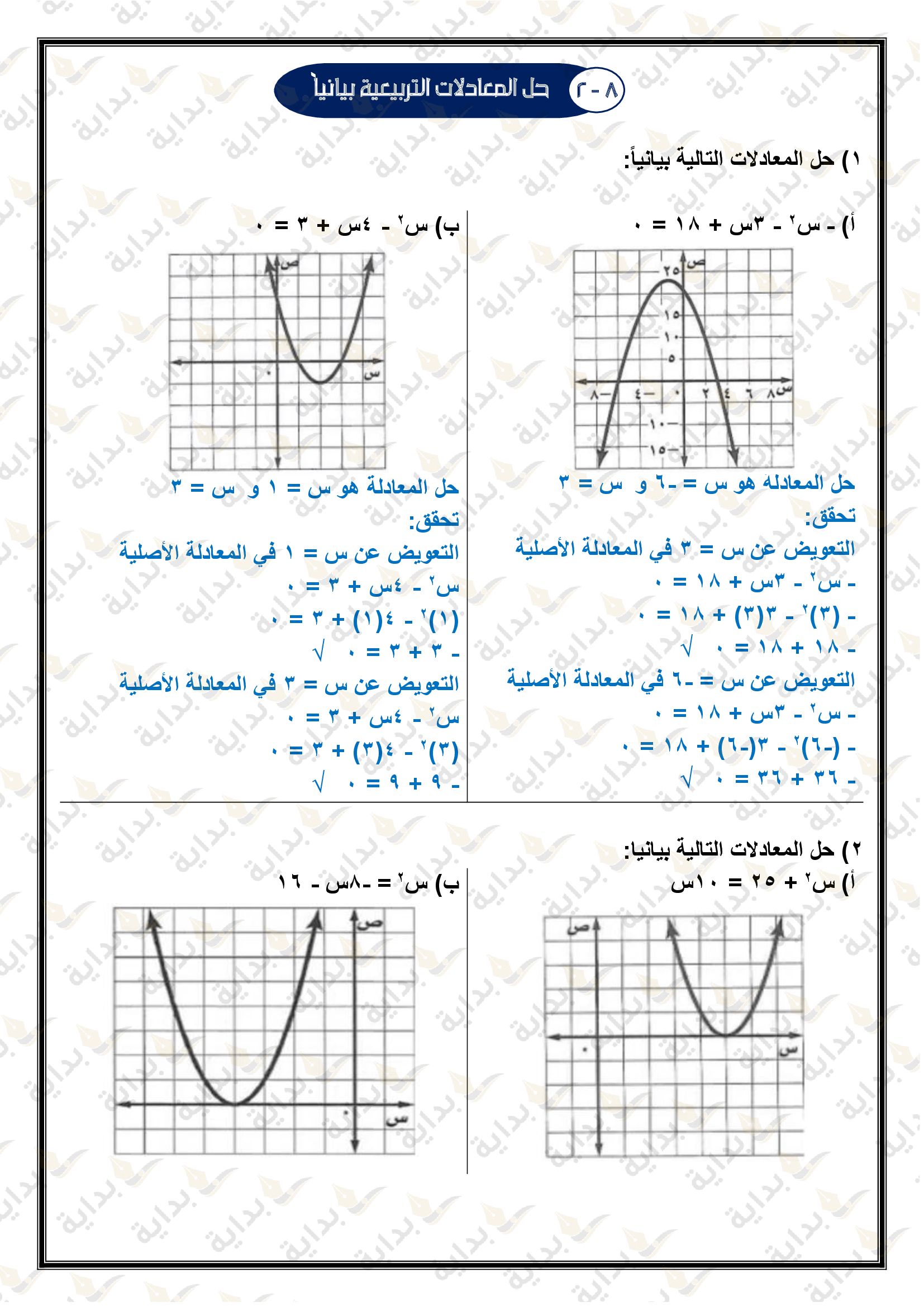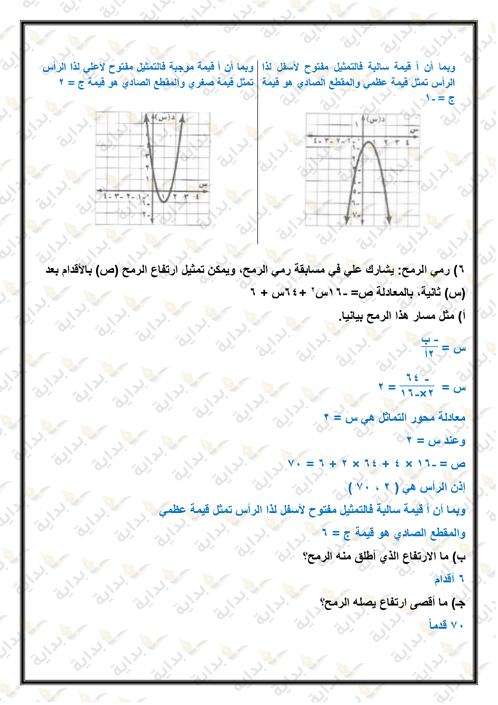 تمثيل الدوال التربيعية بيانياً