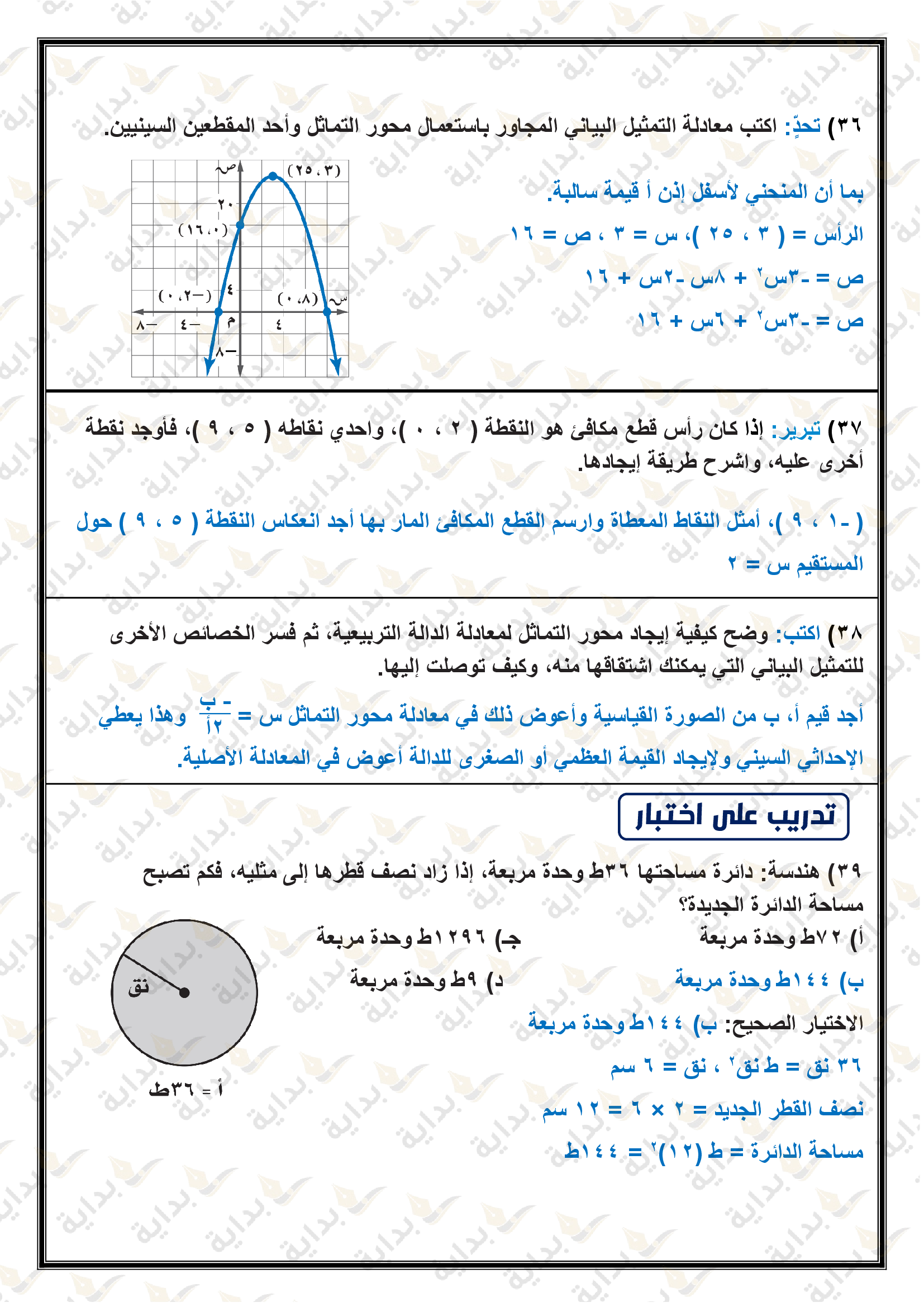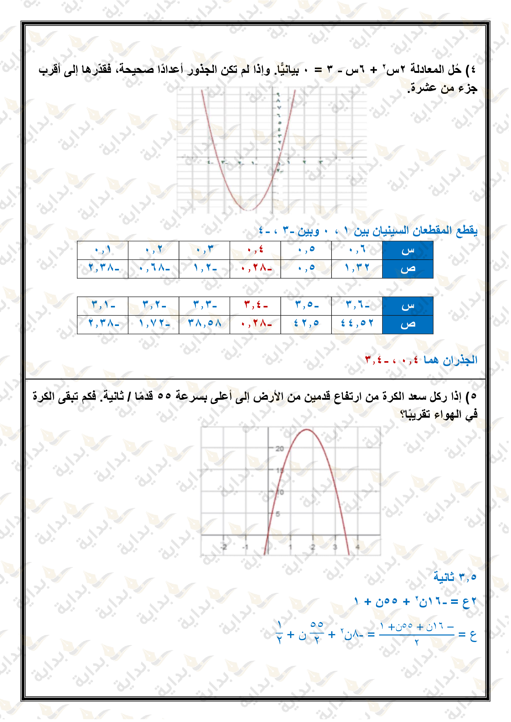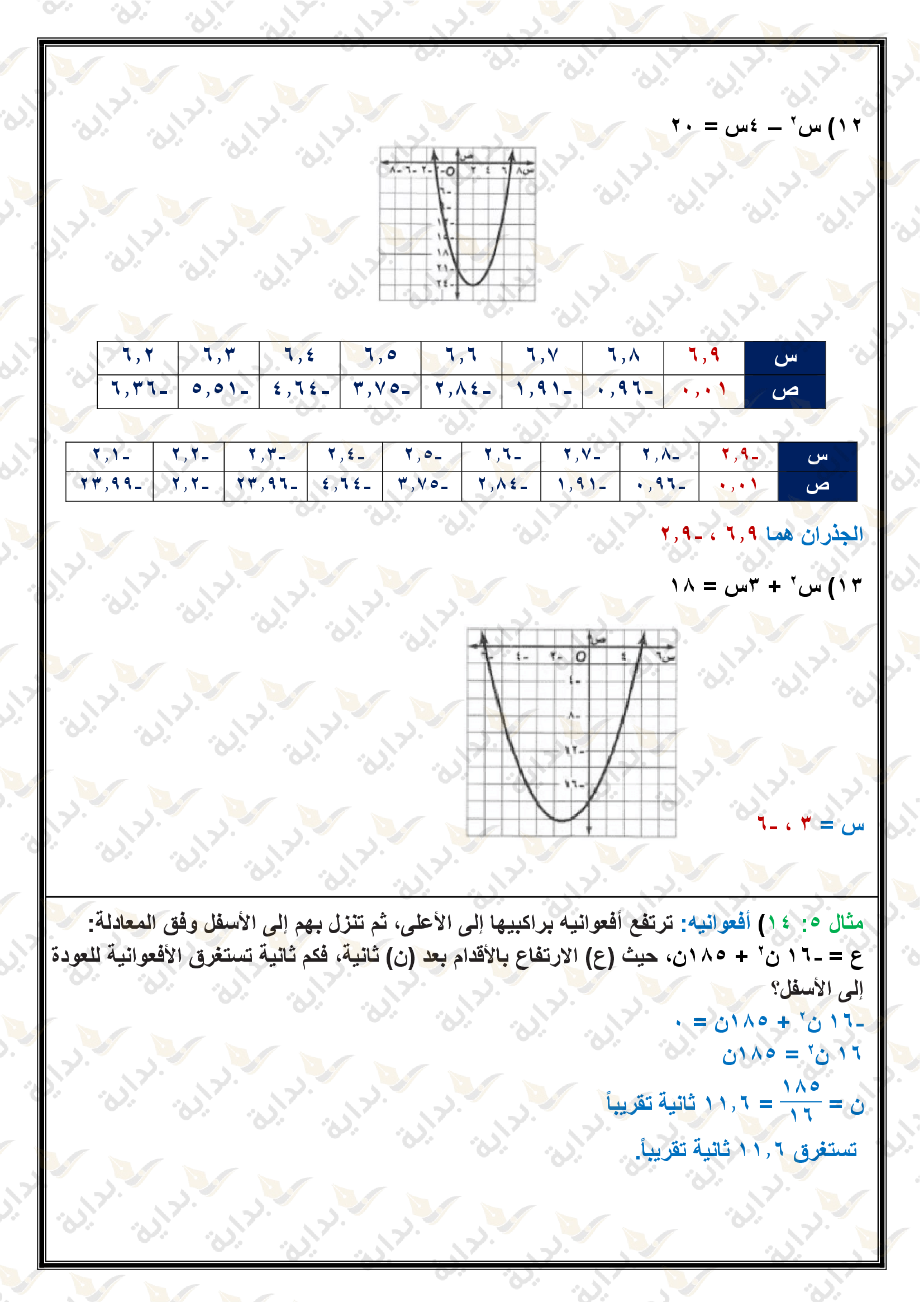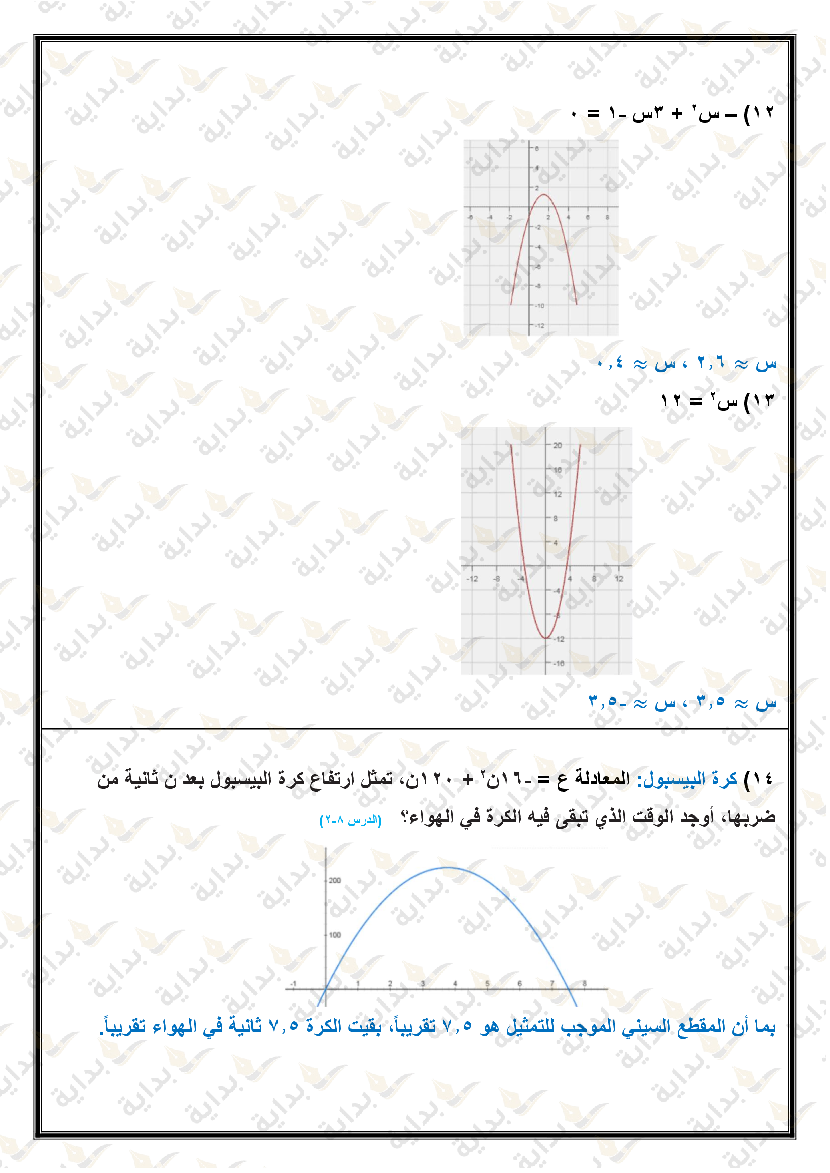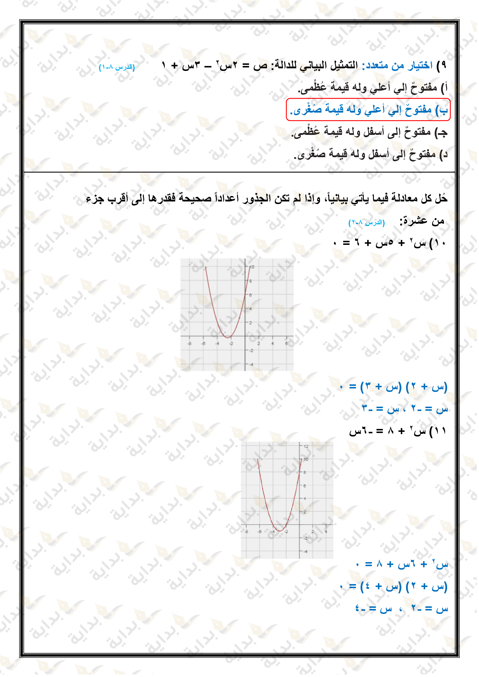 تمثيل الدوال التربيعية بيانياً