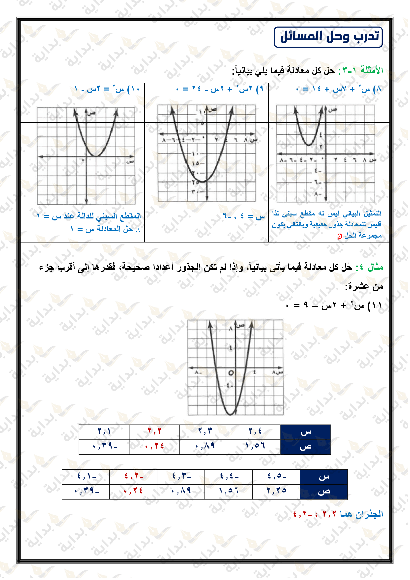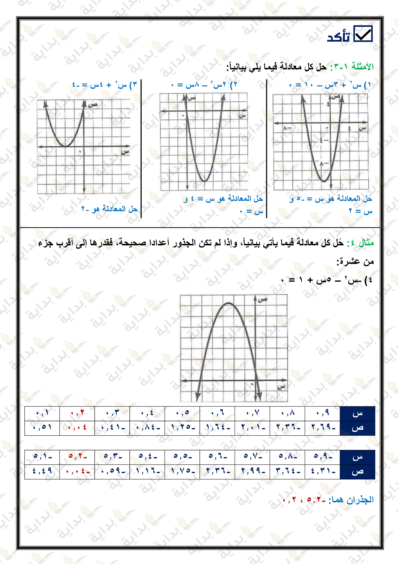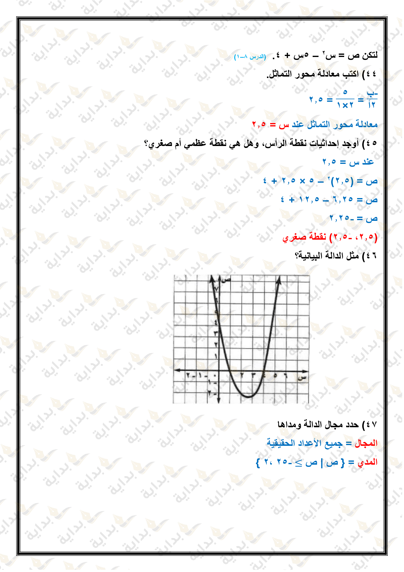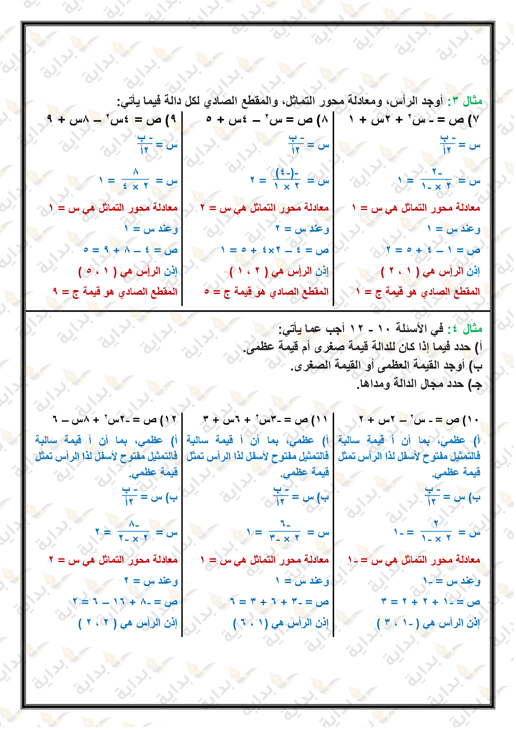 تمثيل الدوال التربيعية بيانياً