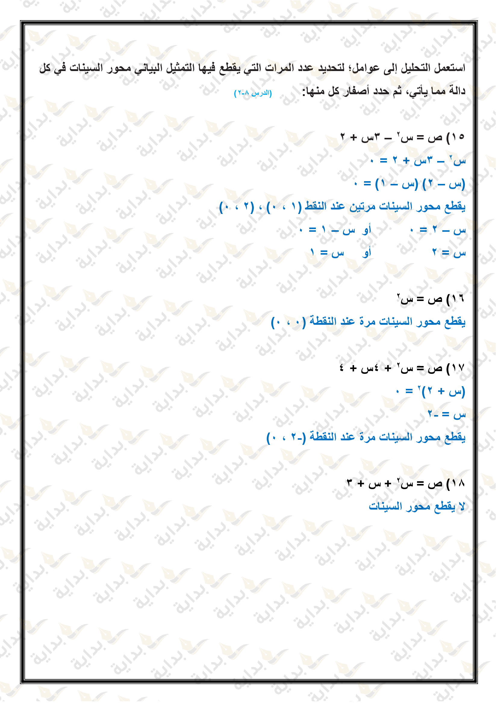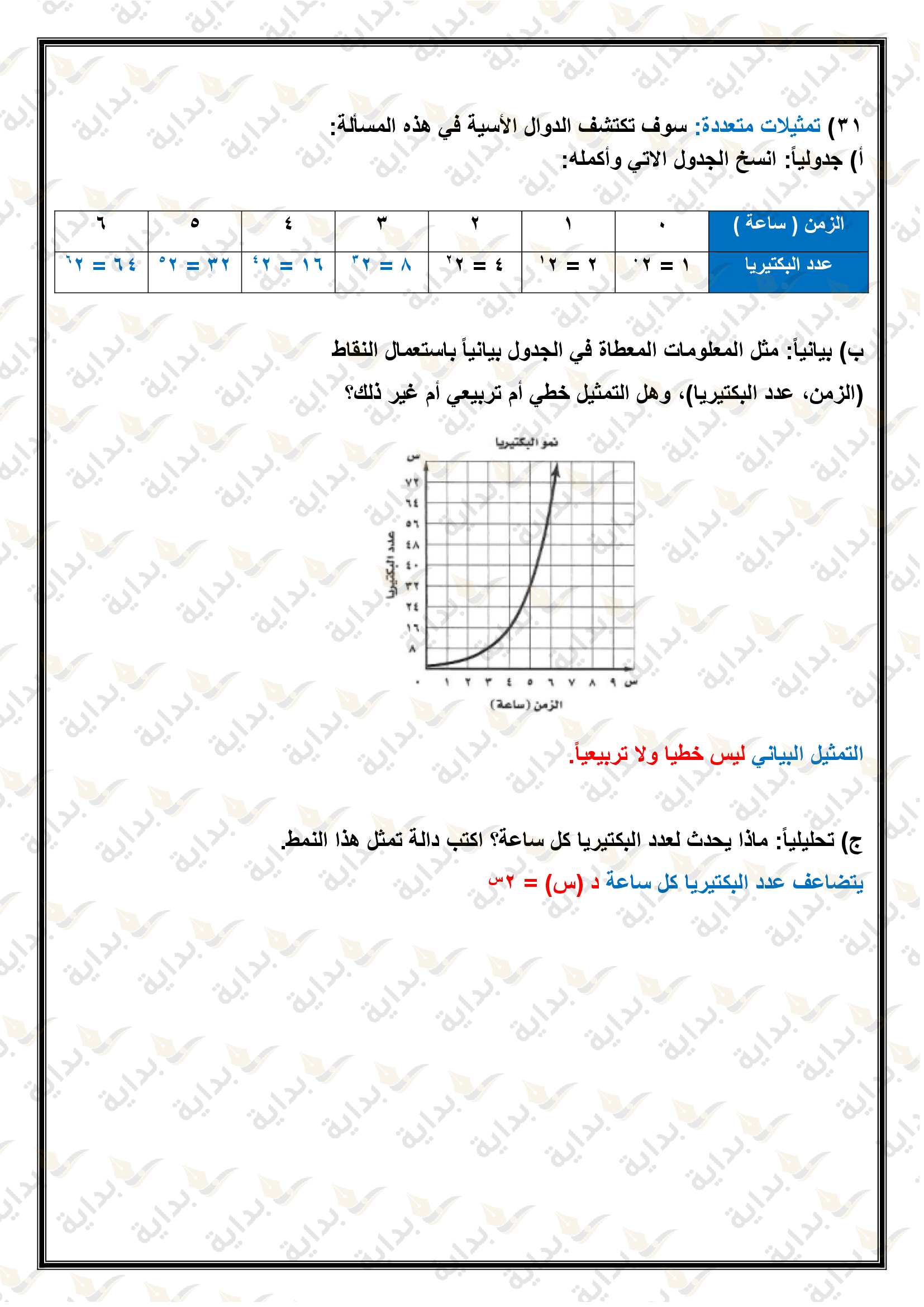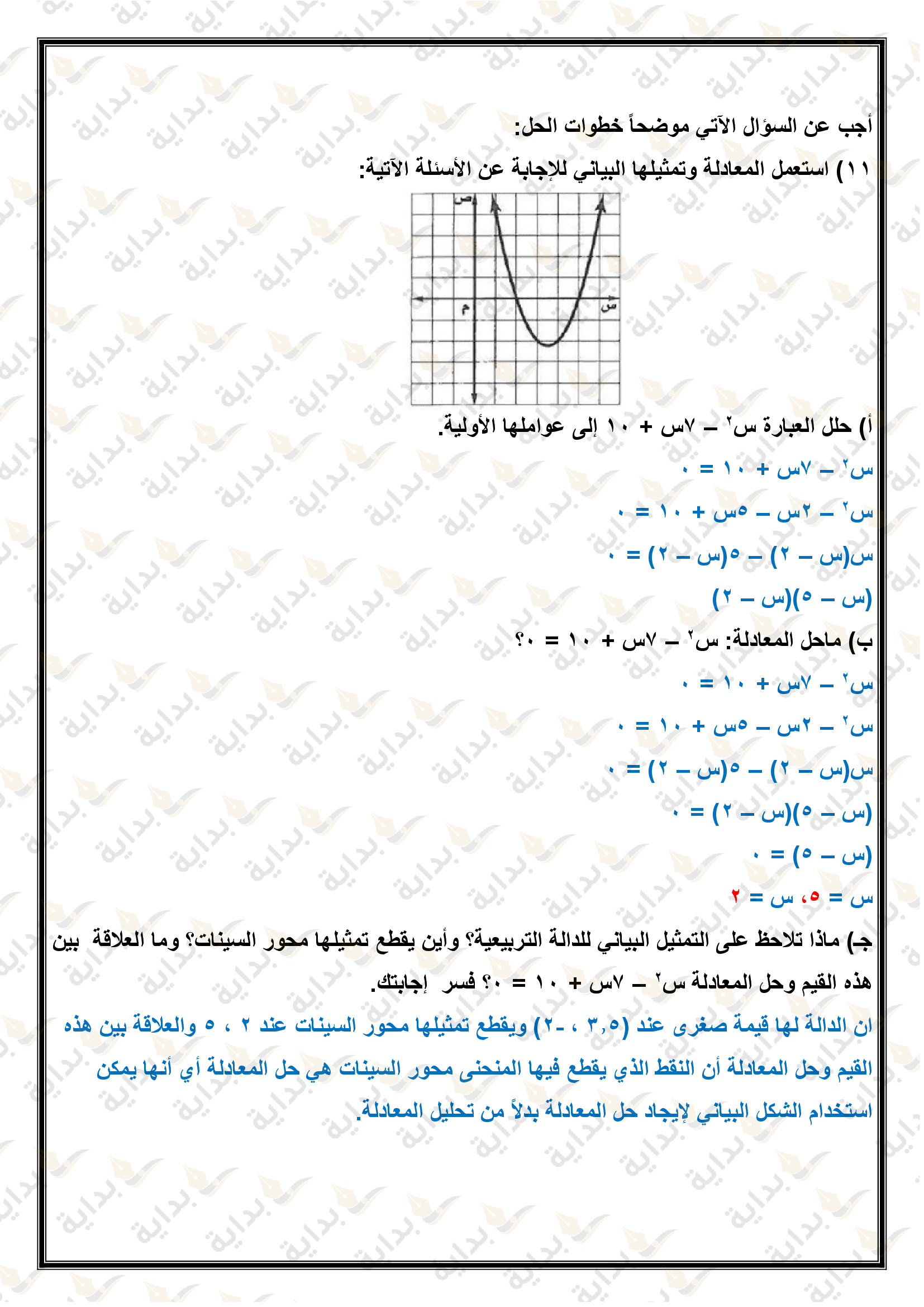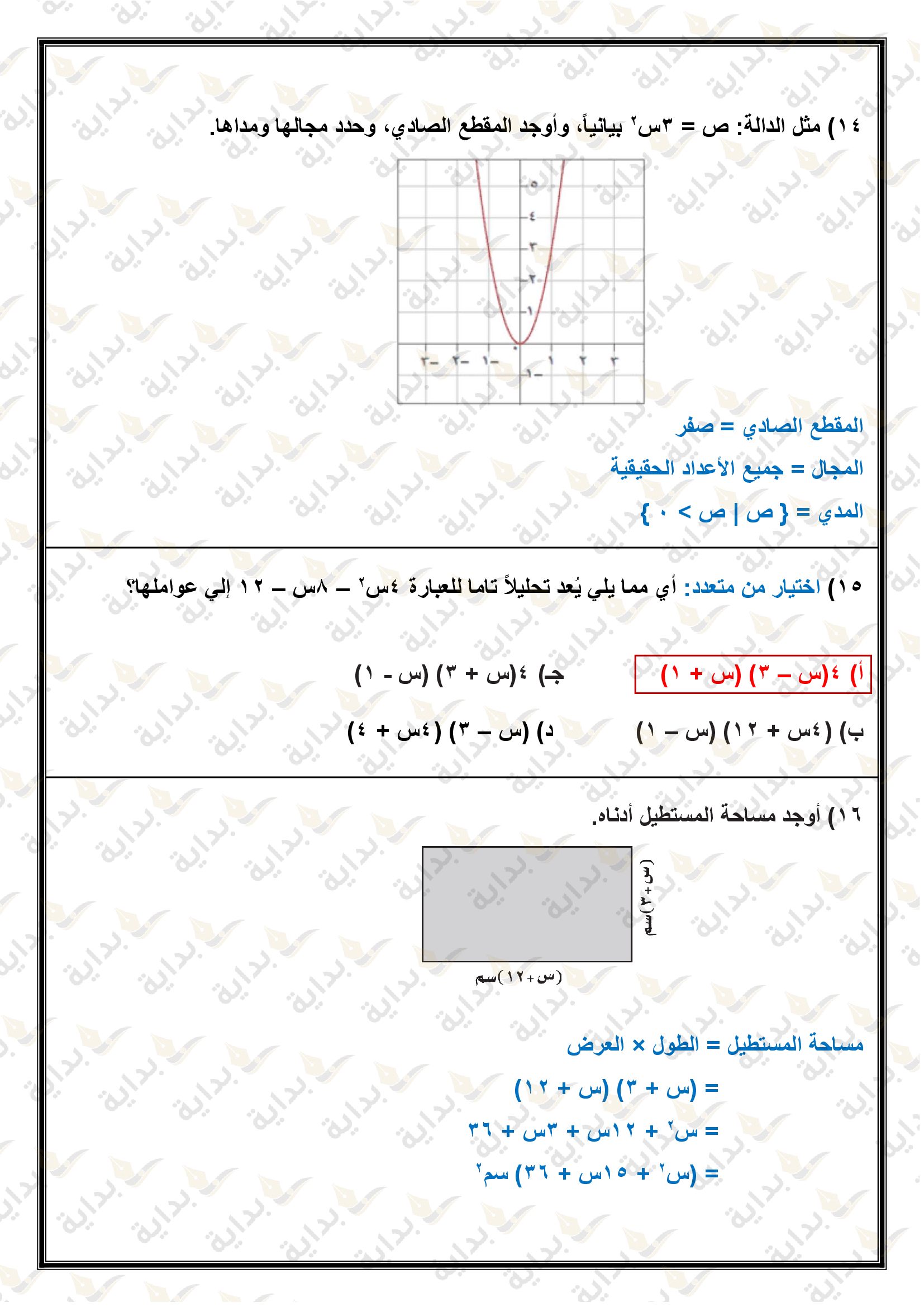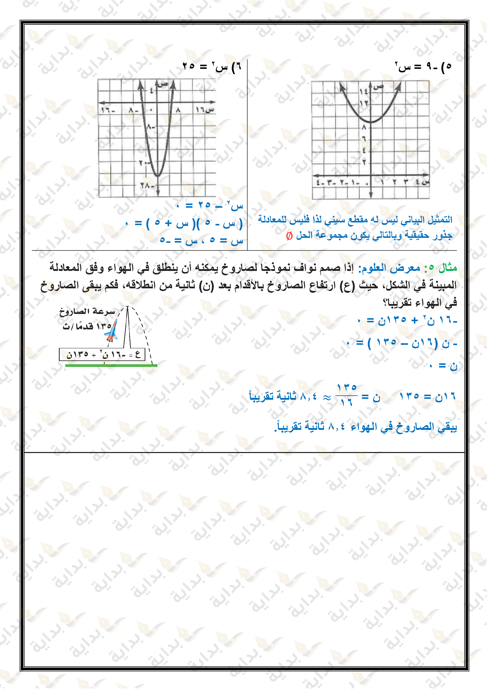 تمثيل الدوال التربيعية بيانياً