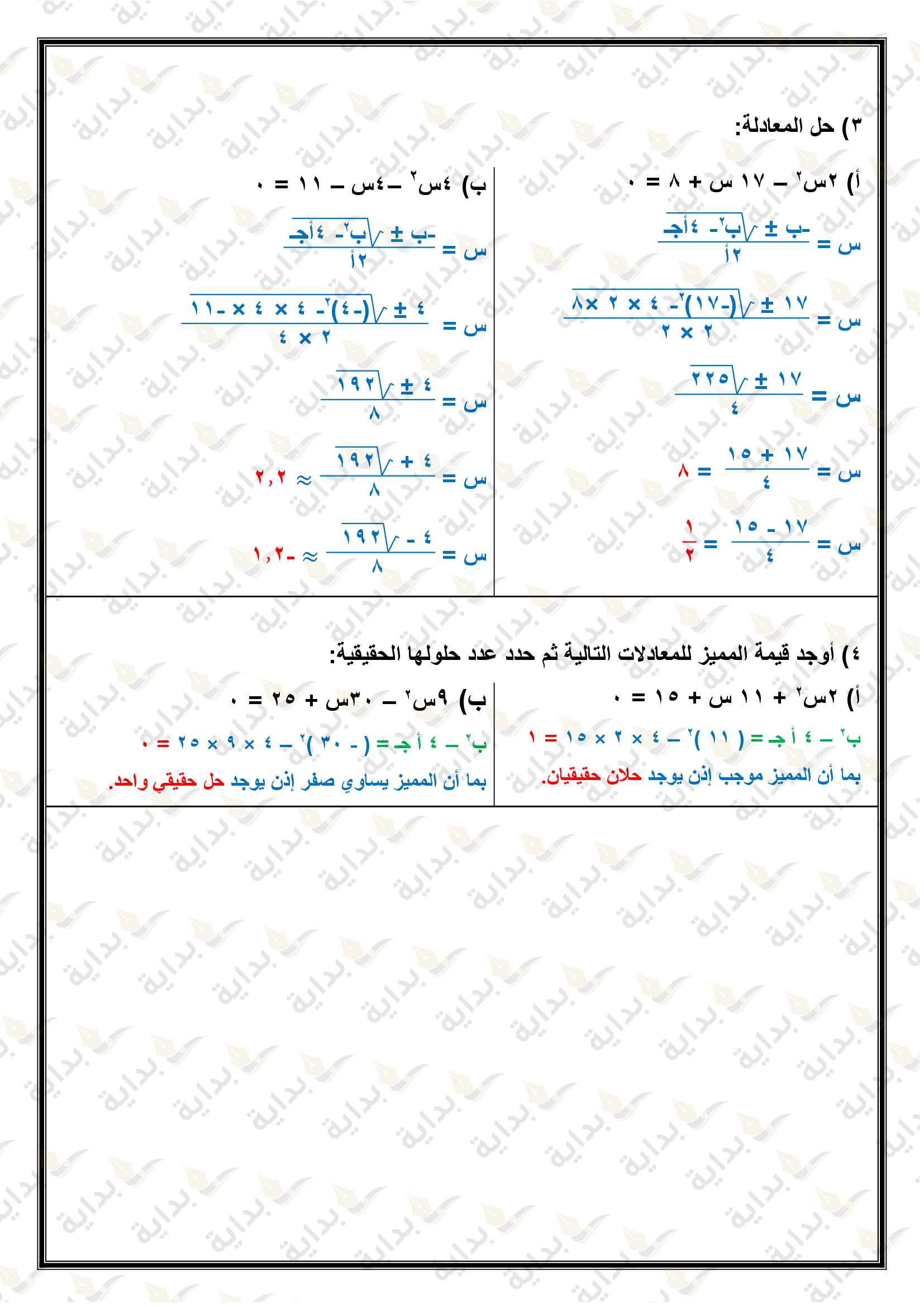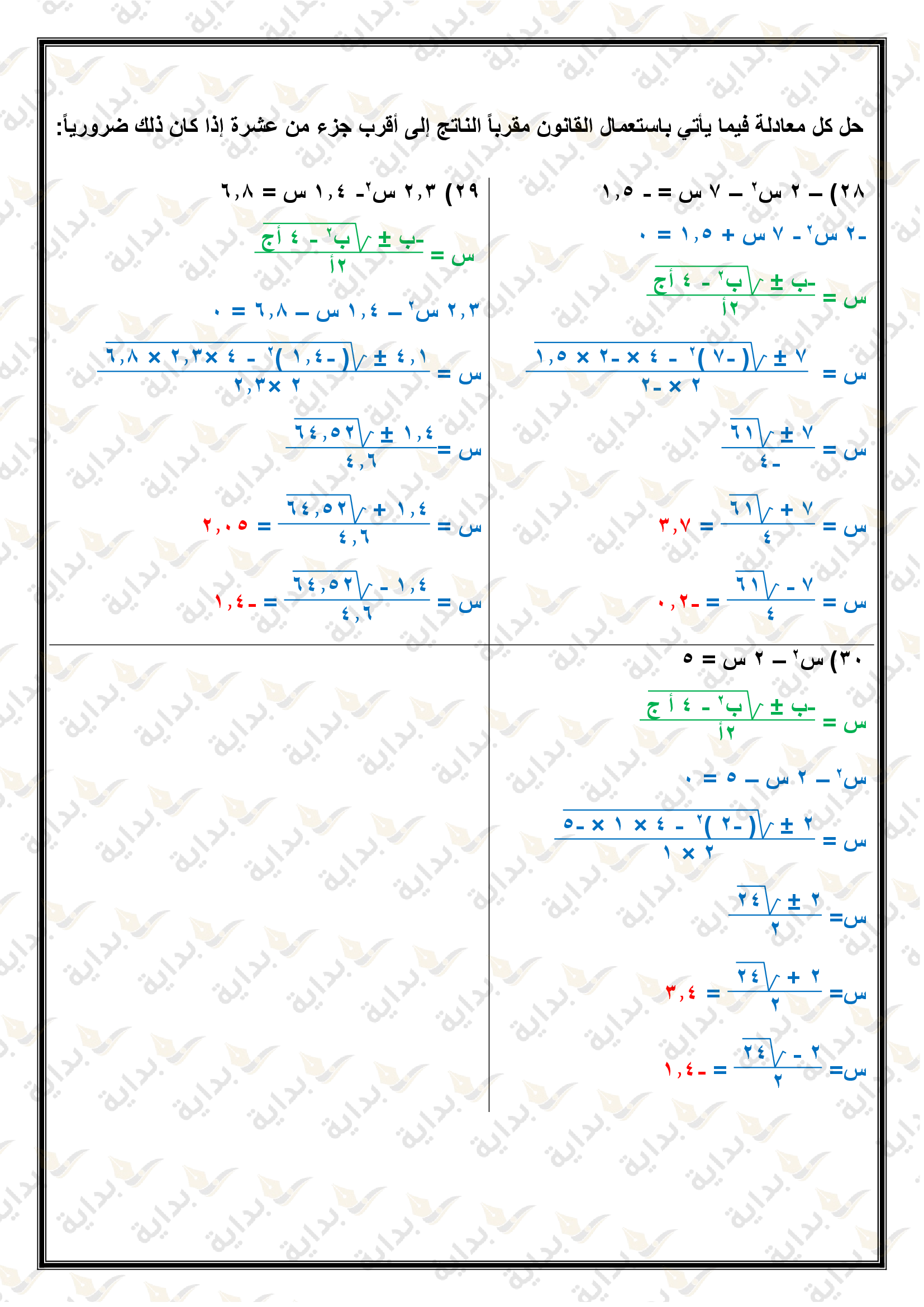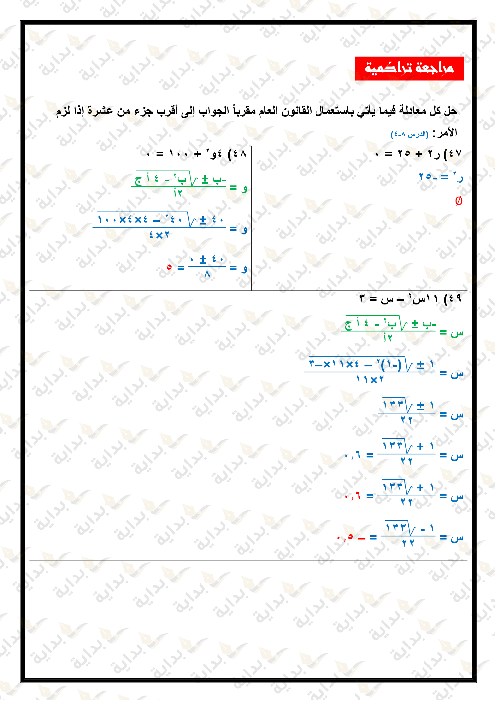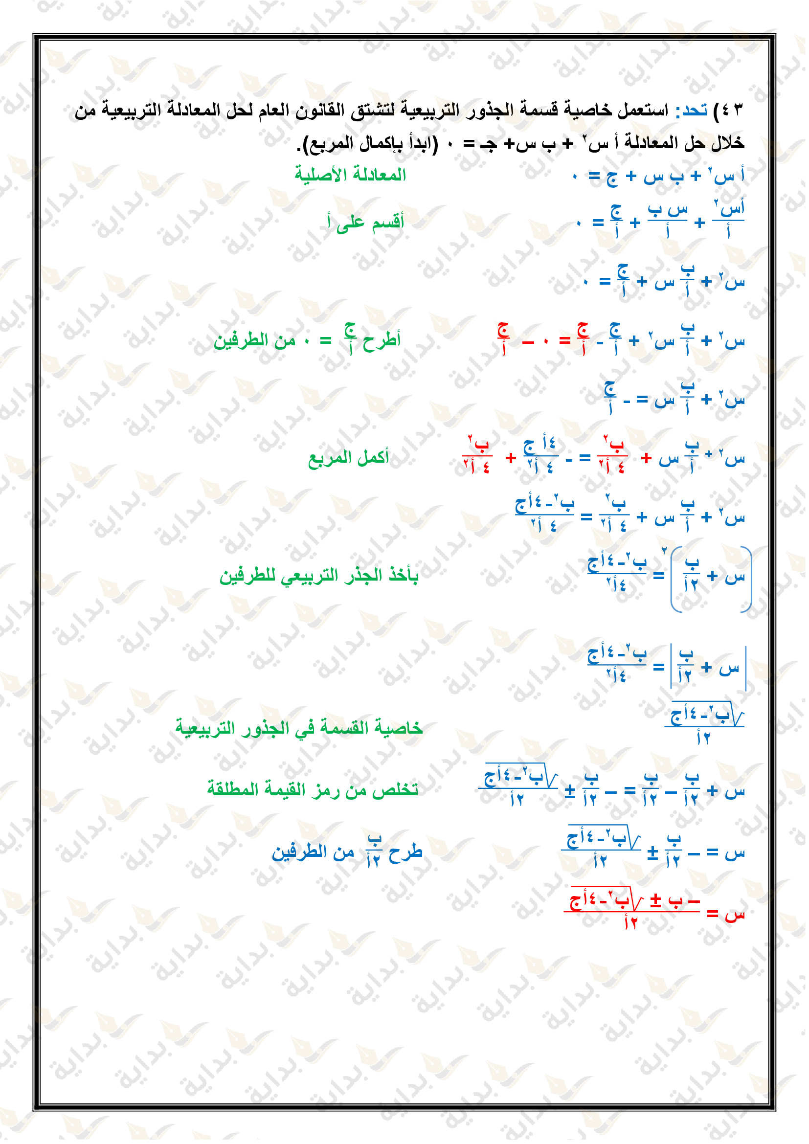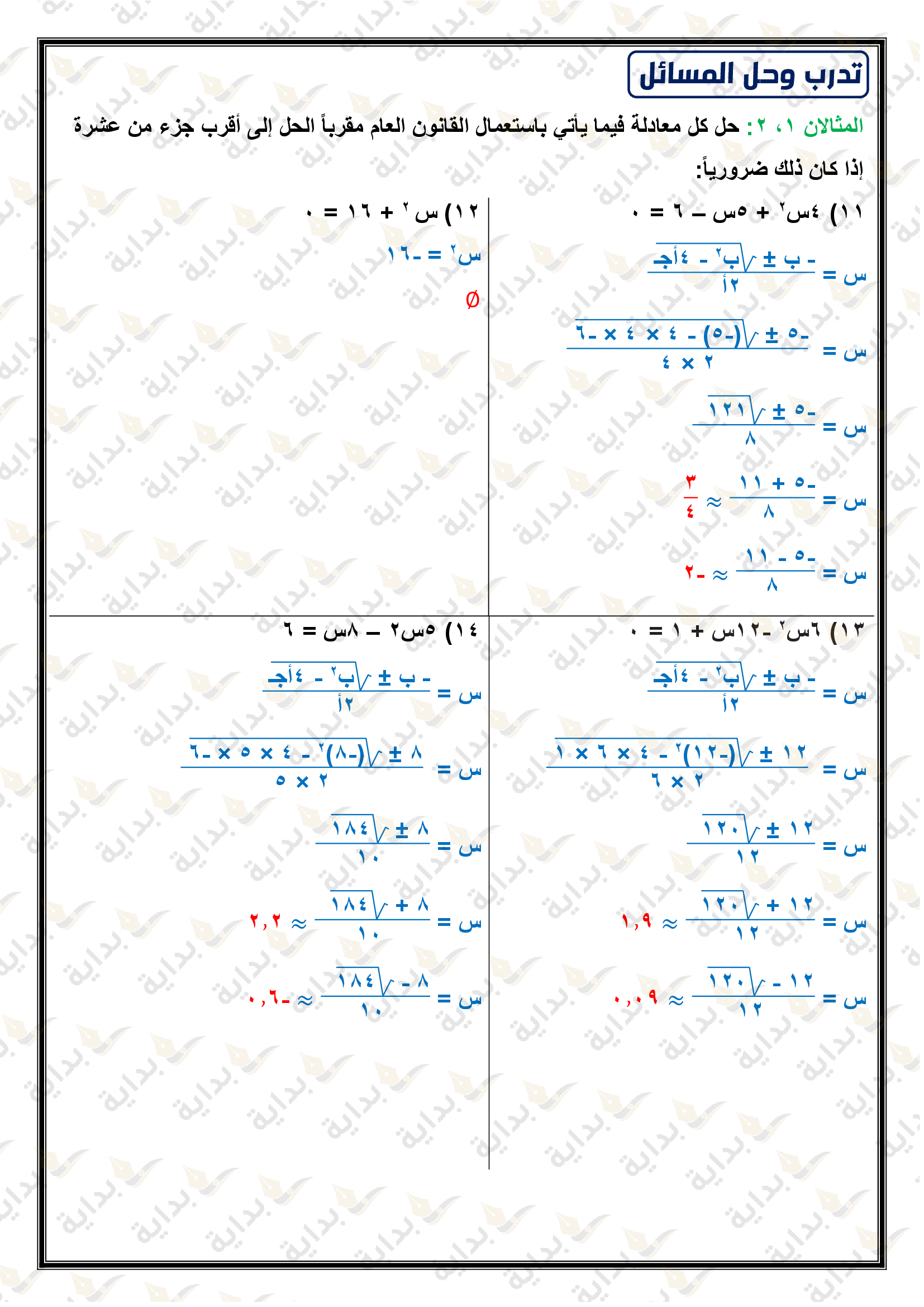 حل المعادلات التربيعية باستعمال القانون العام