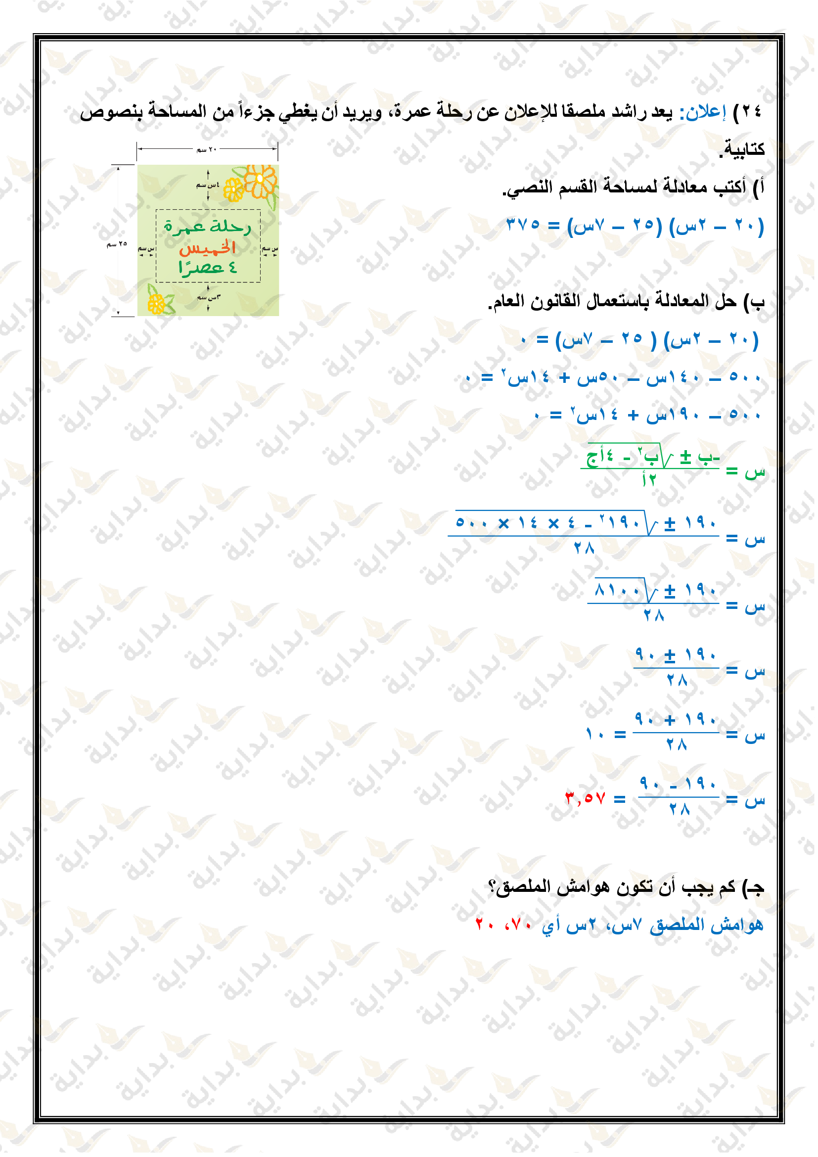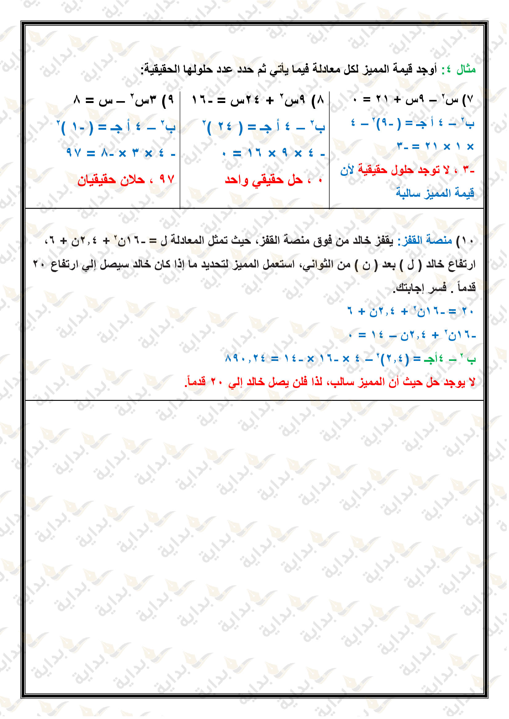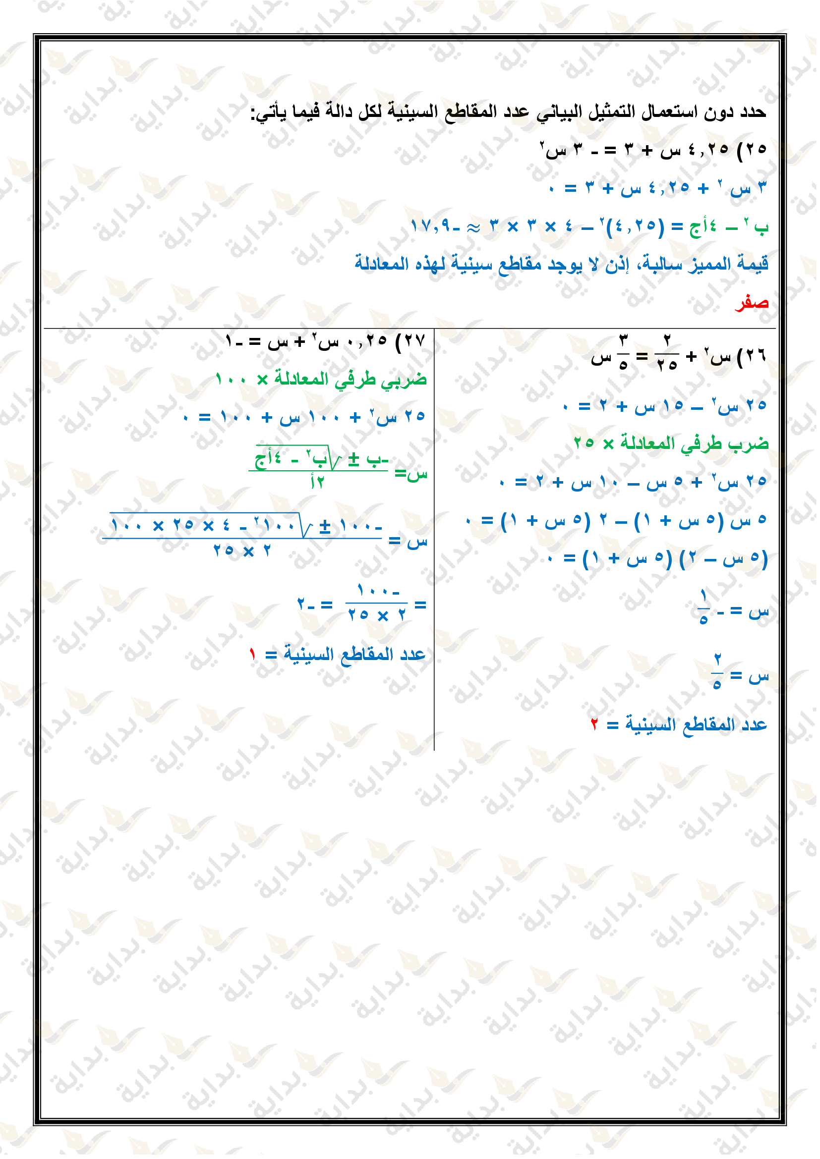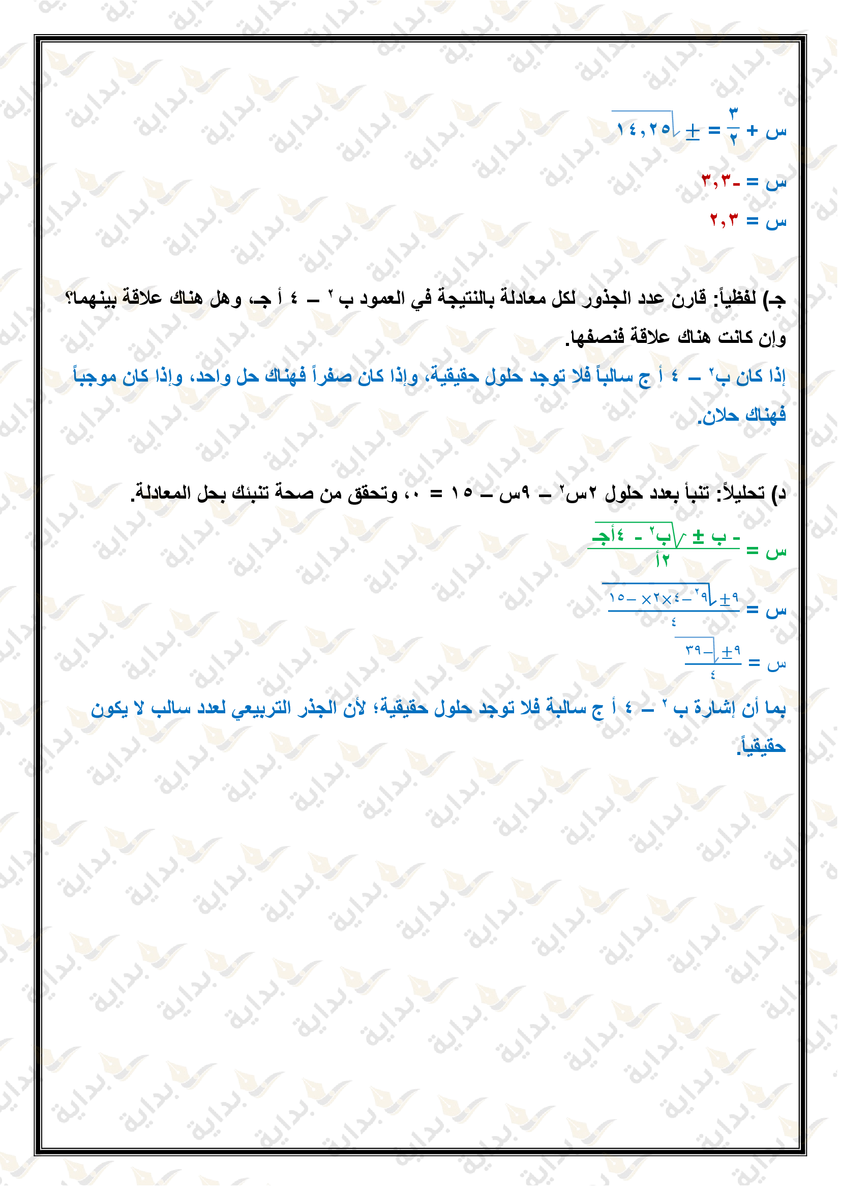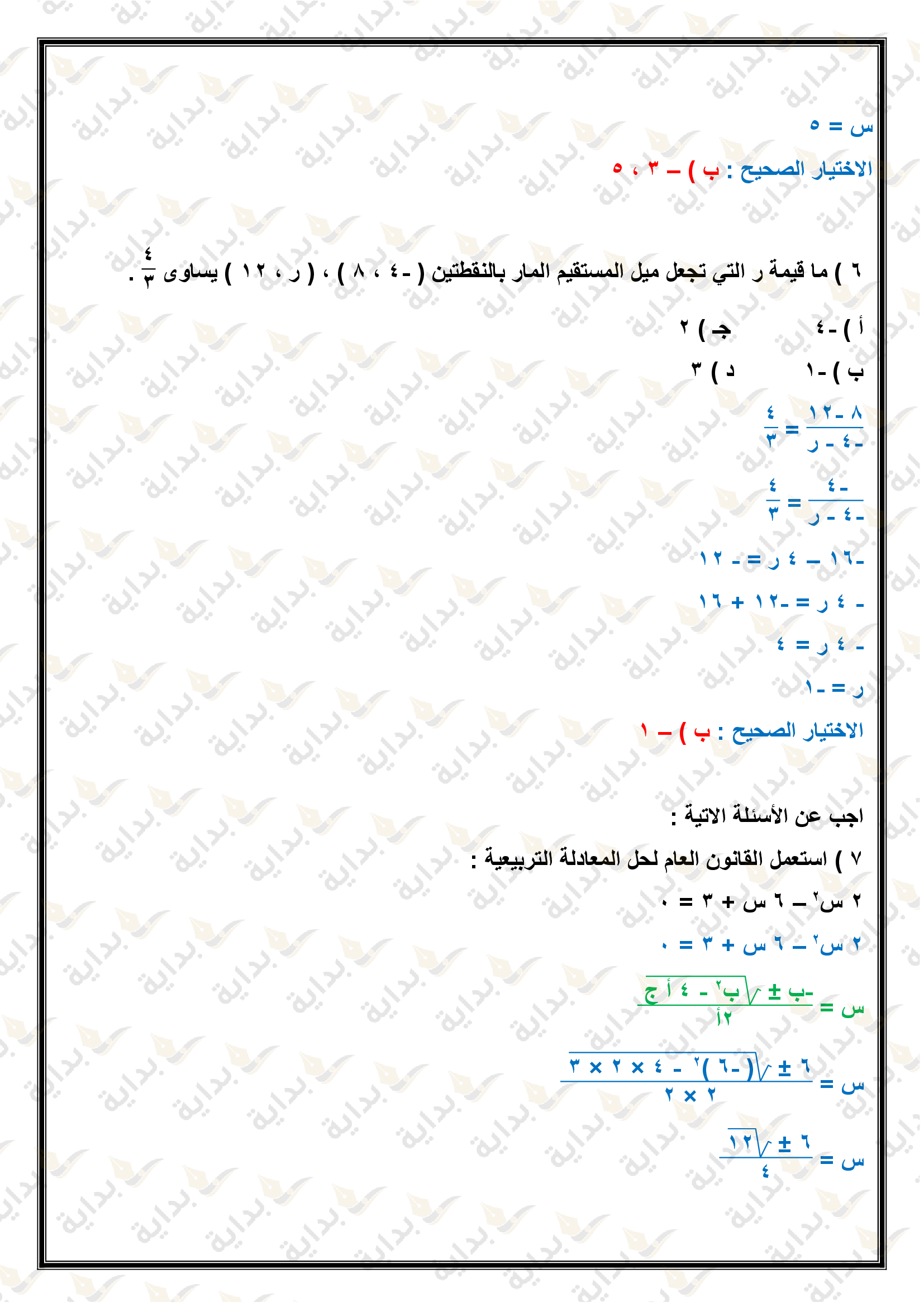 حل المعادلات التربيعية باستعمال القانون العام