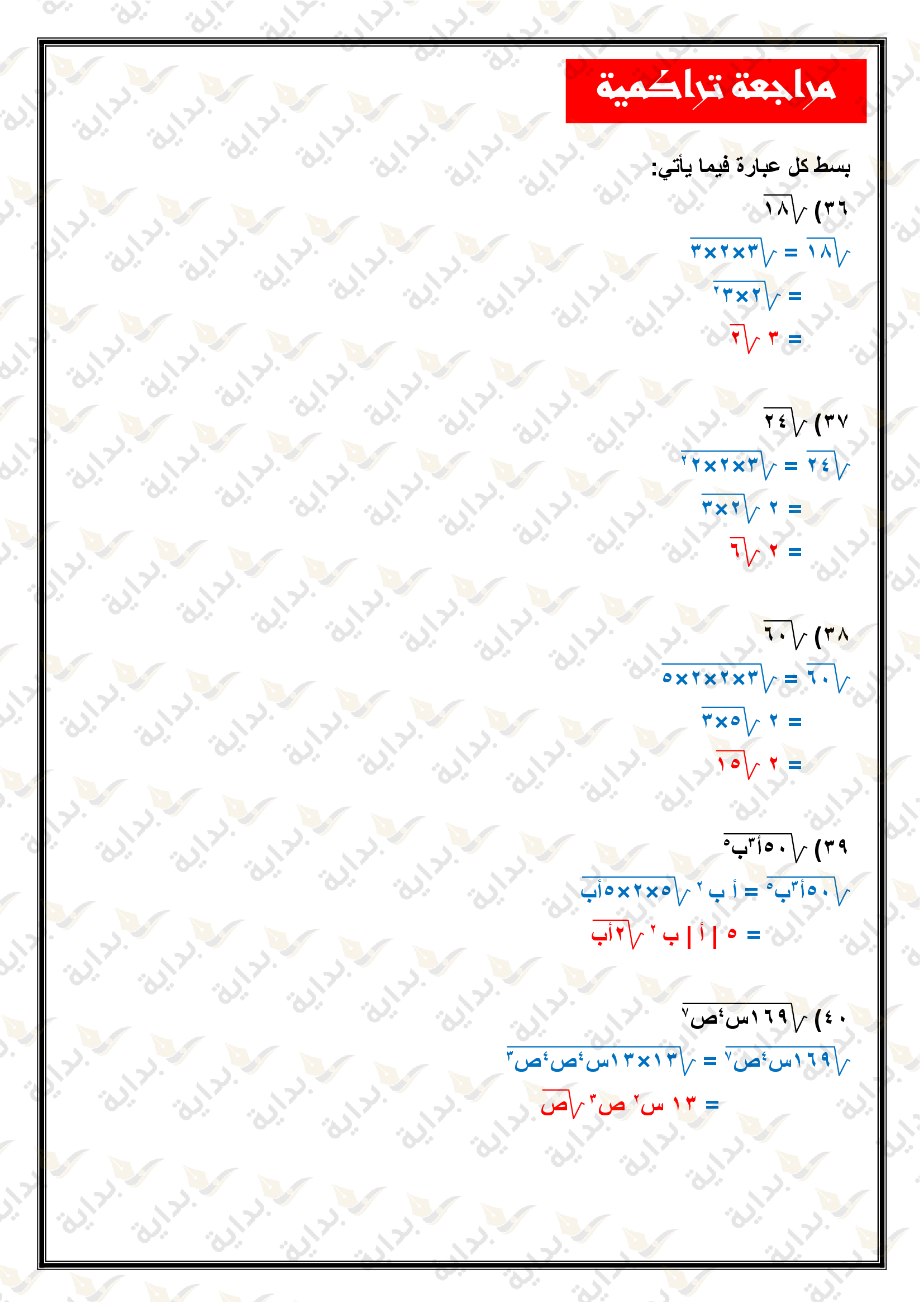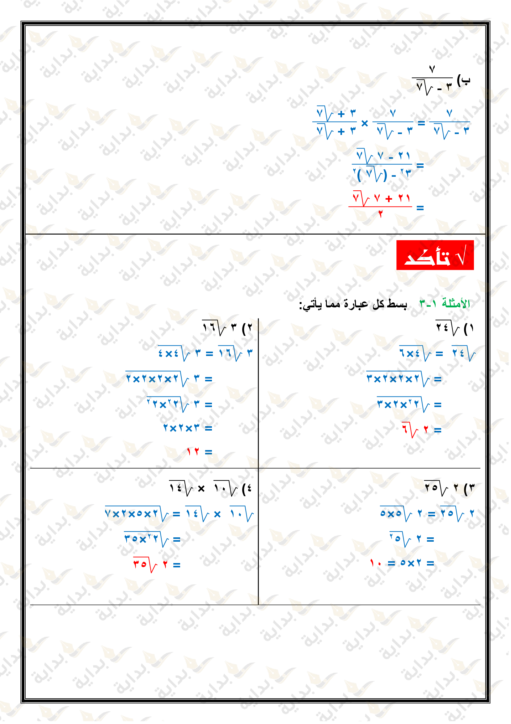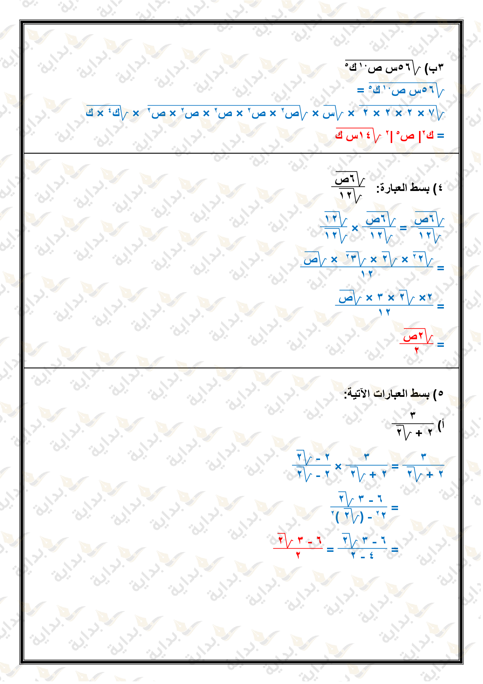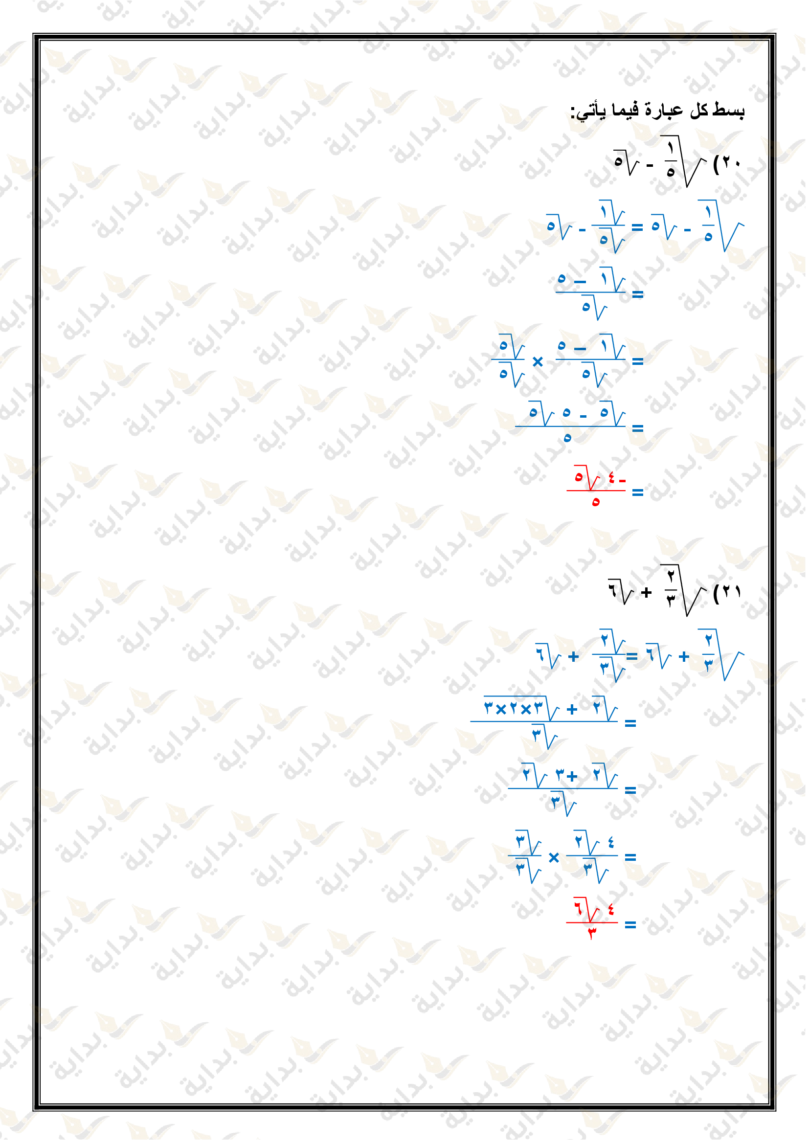 تبسيط العبارات الجذرية