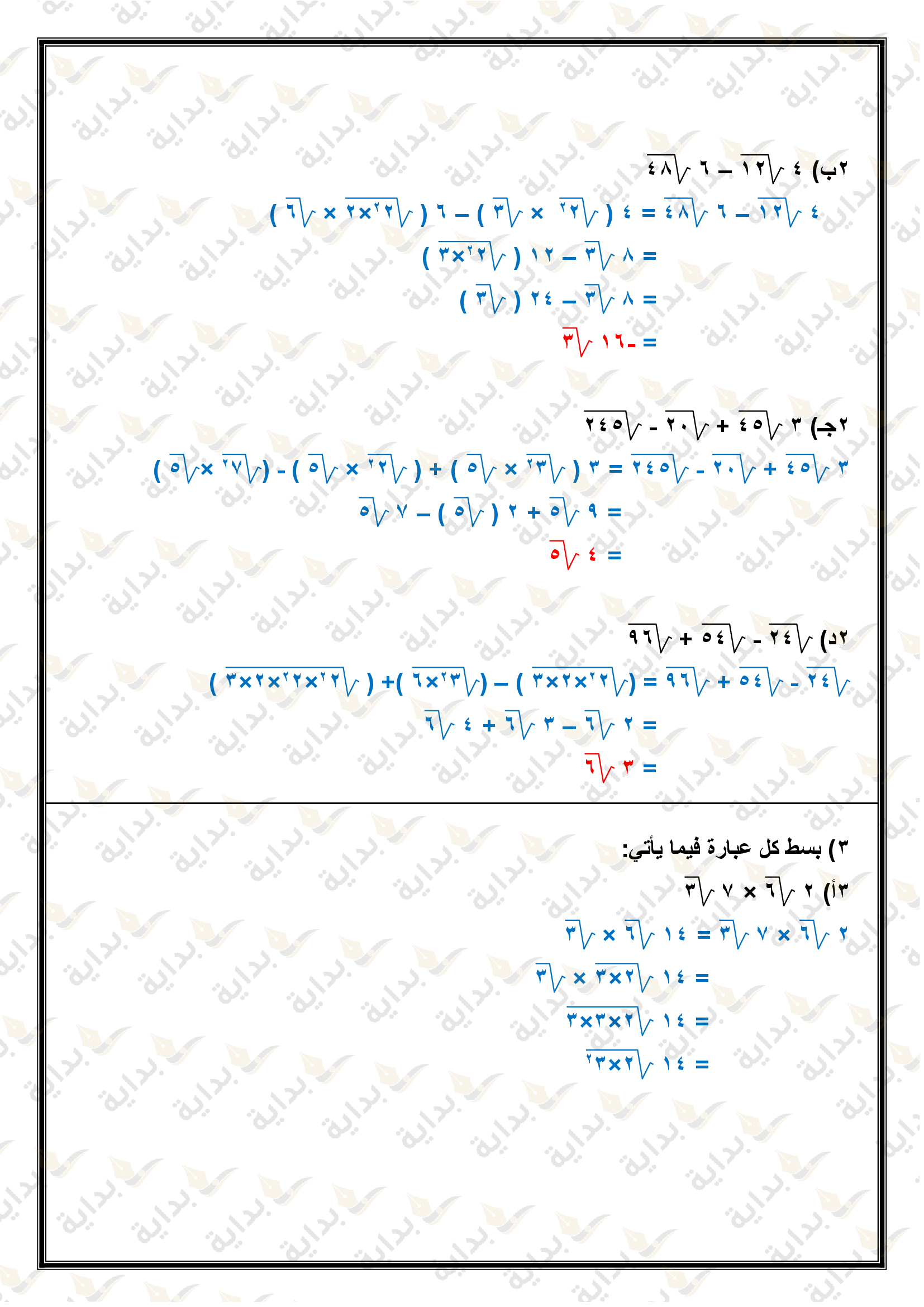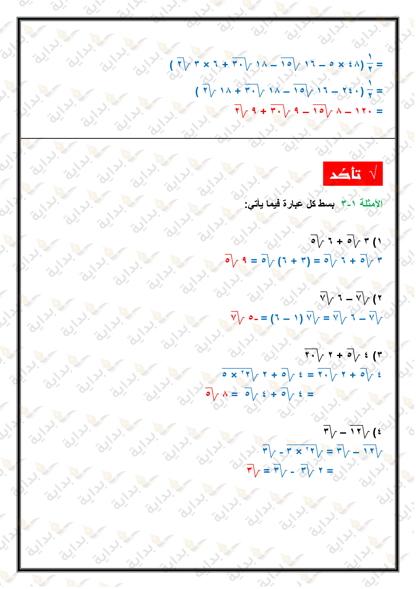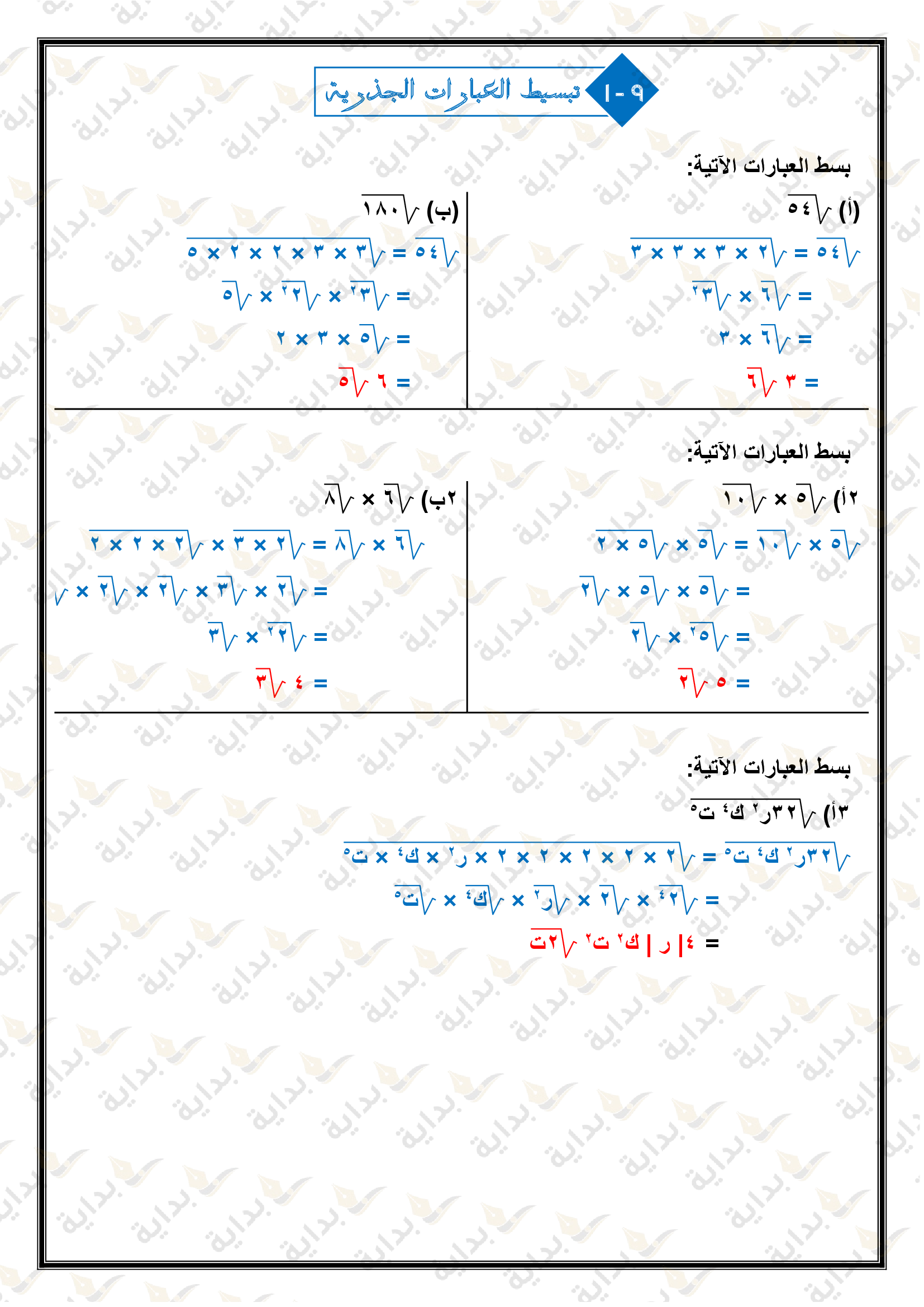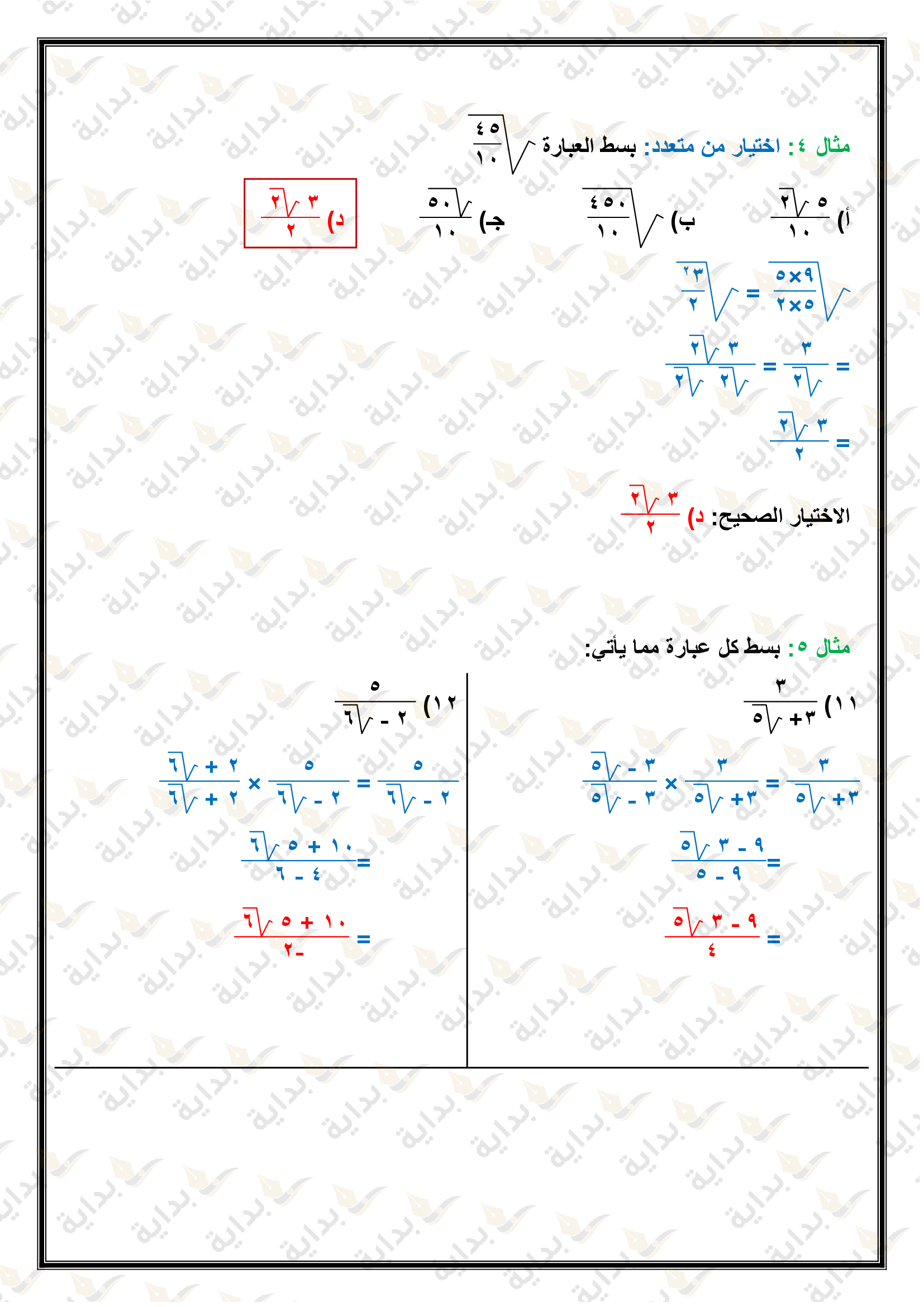 تبسيط العبارات الجذرية