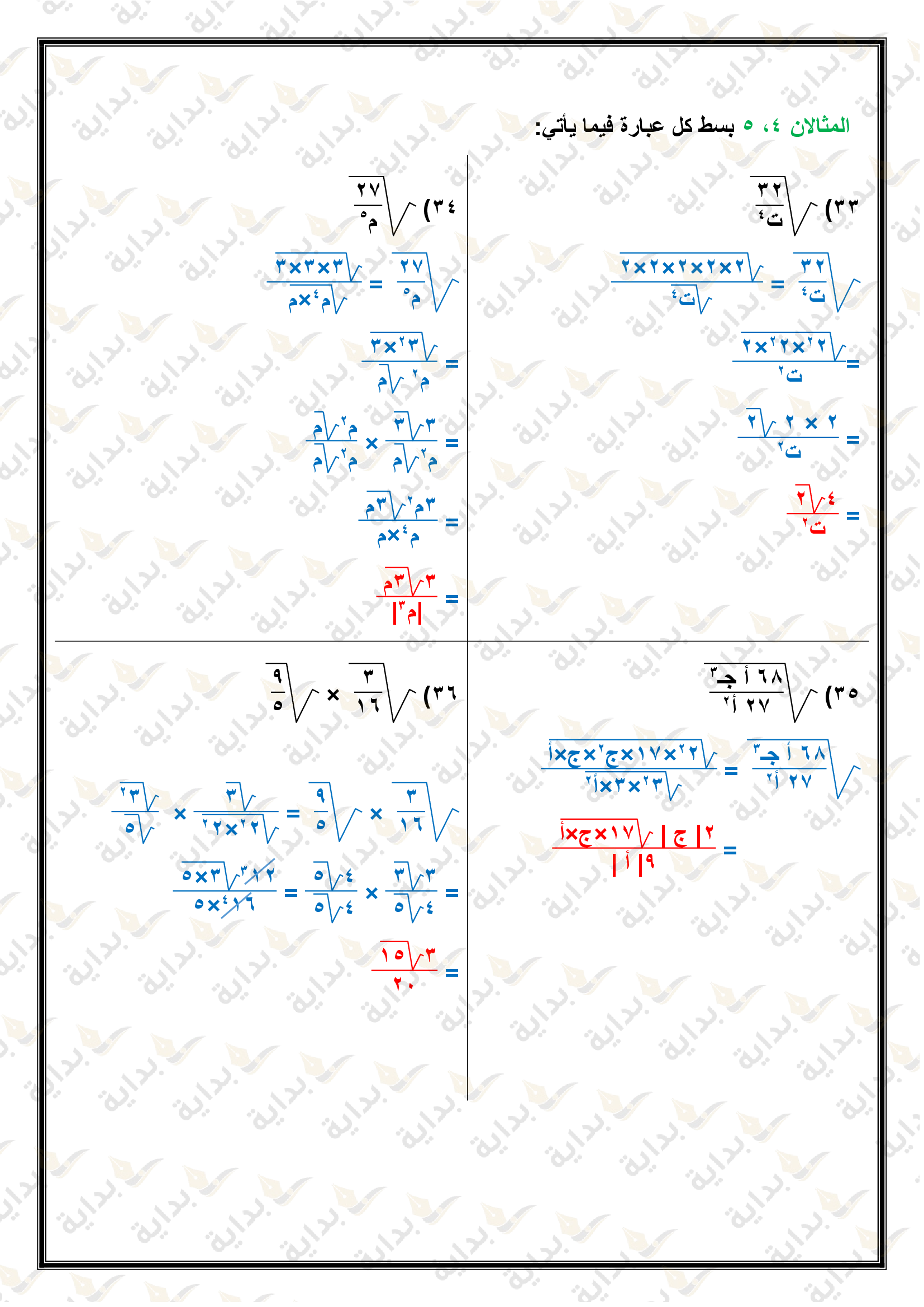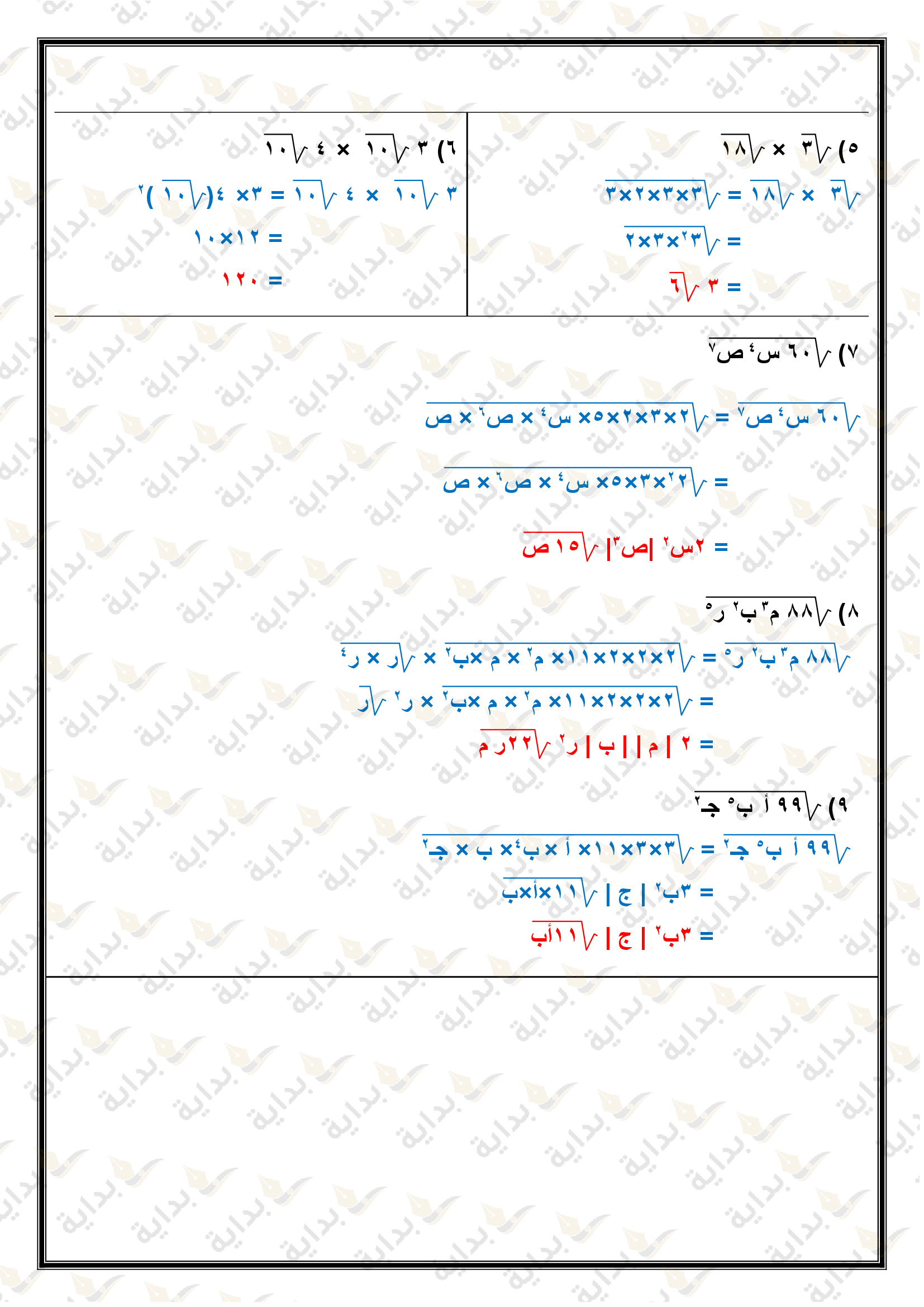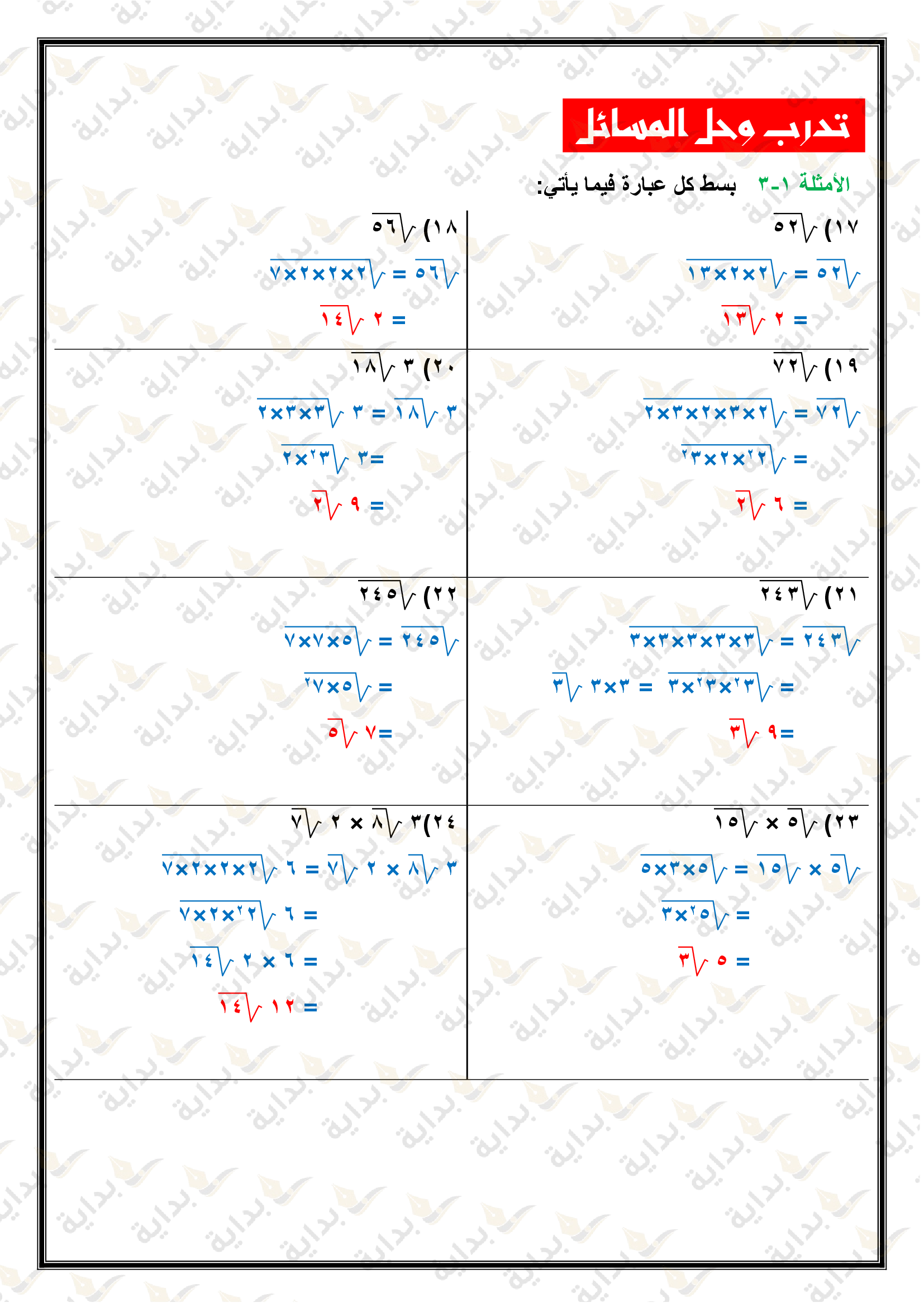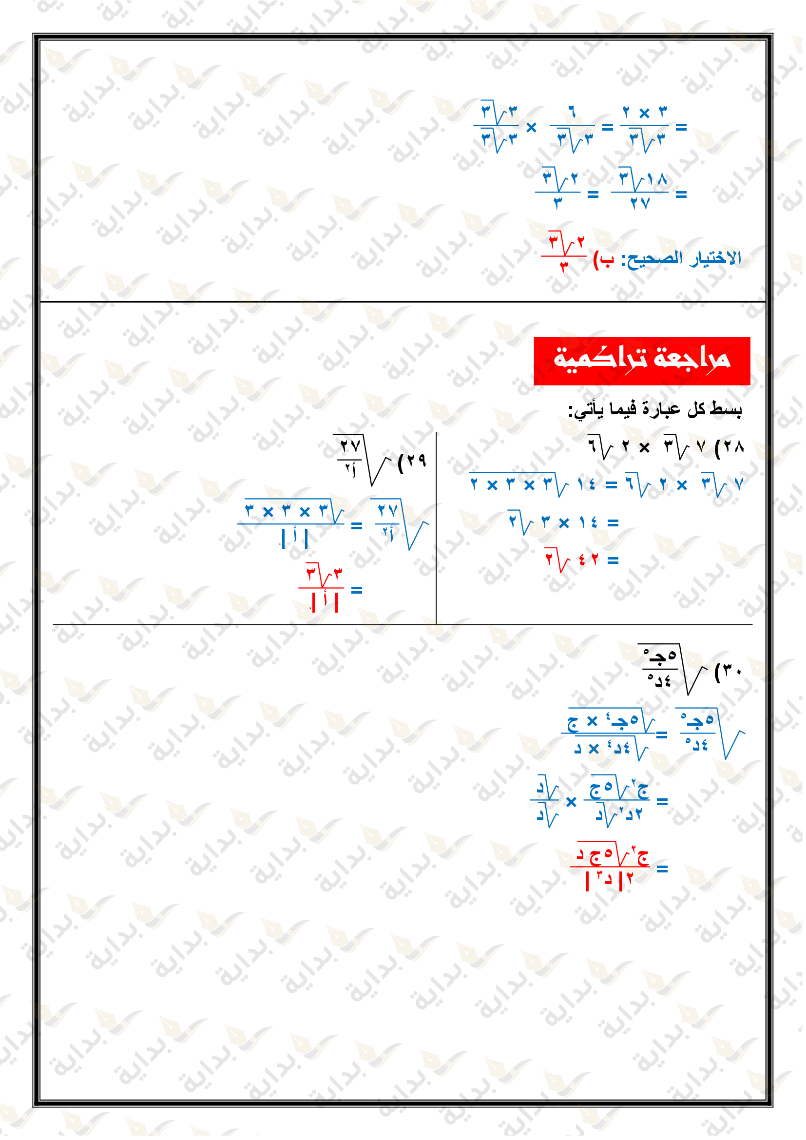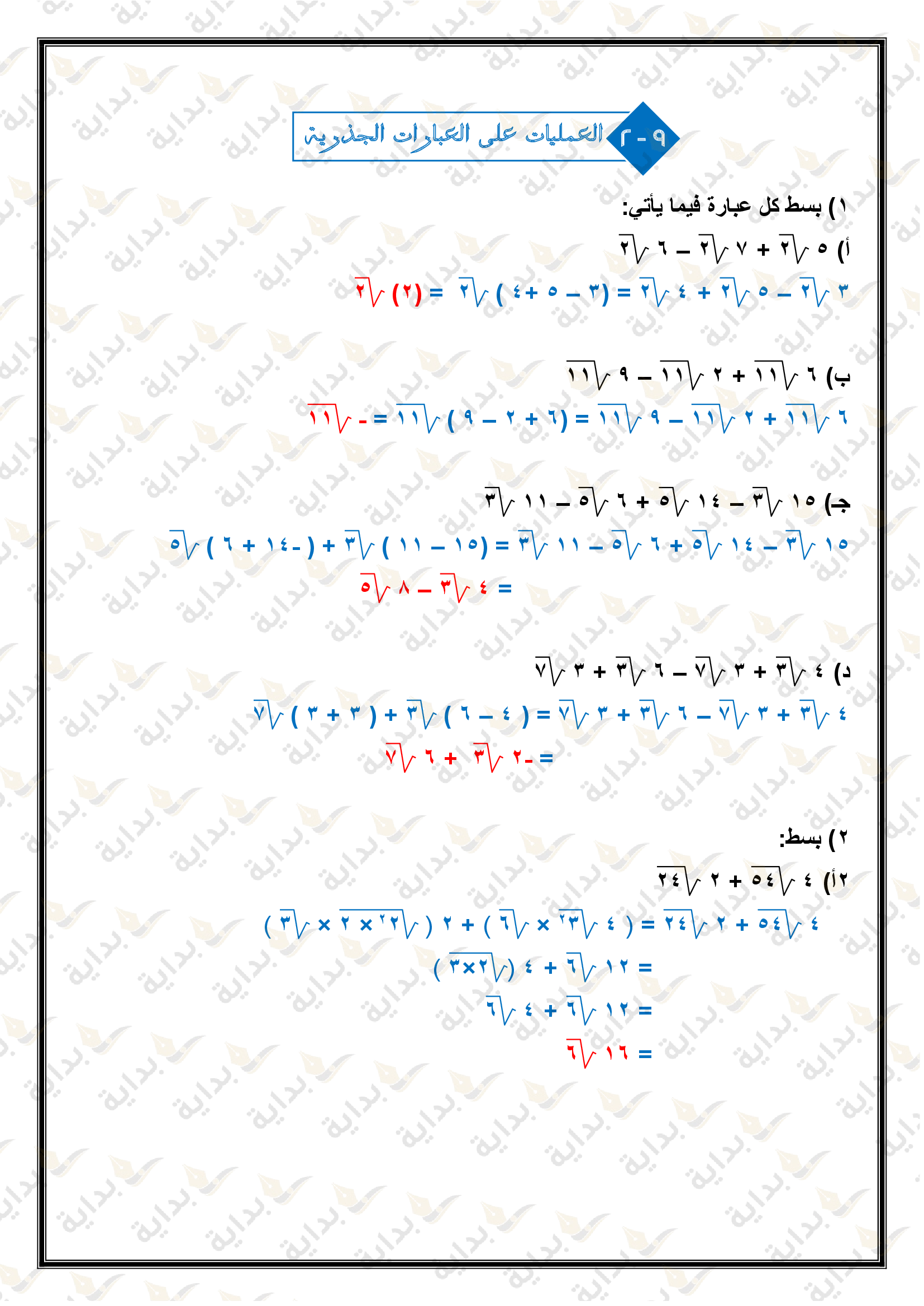 تبسيط العبارات الجذرية
