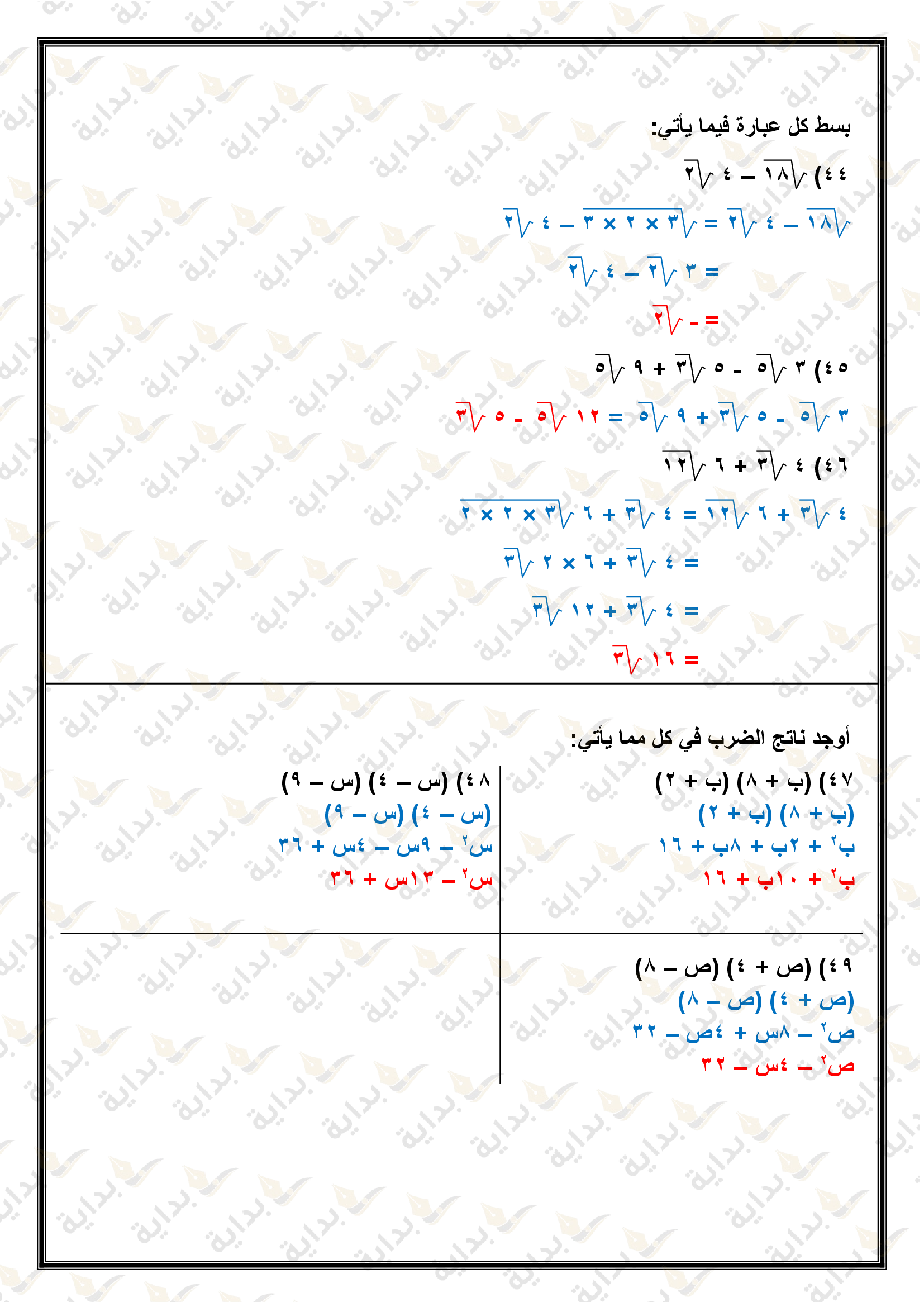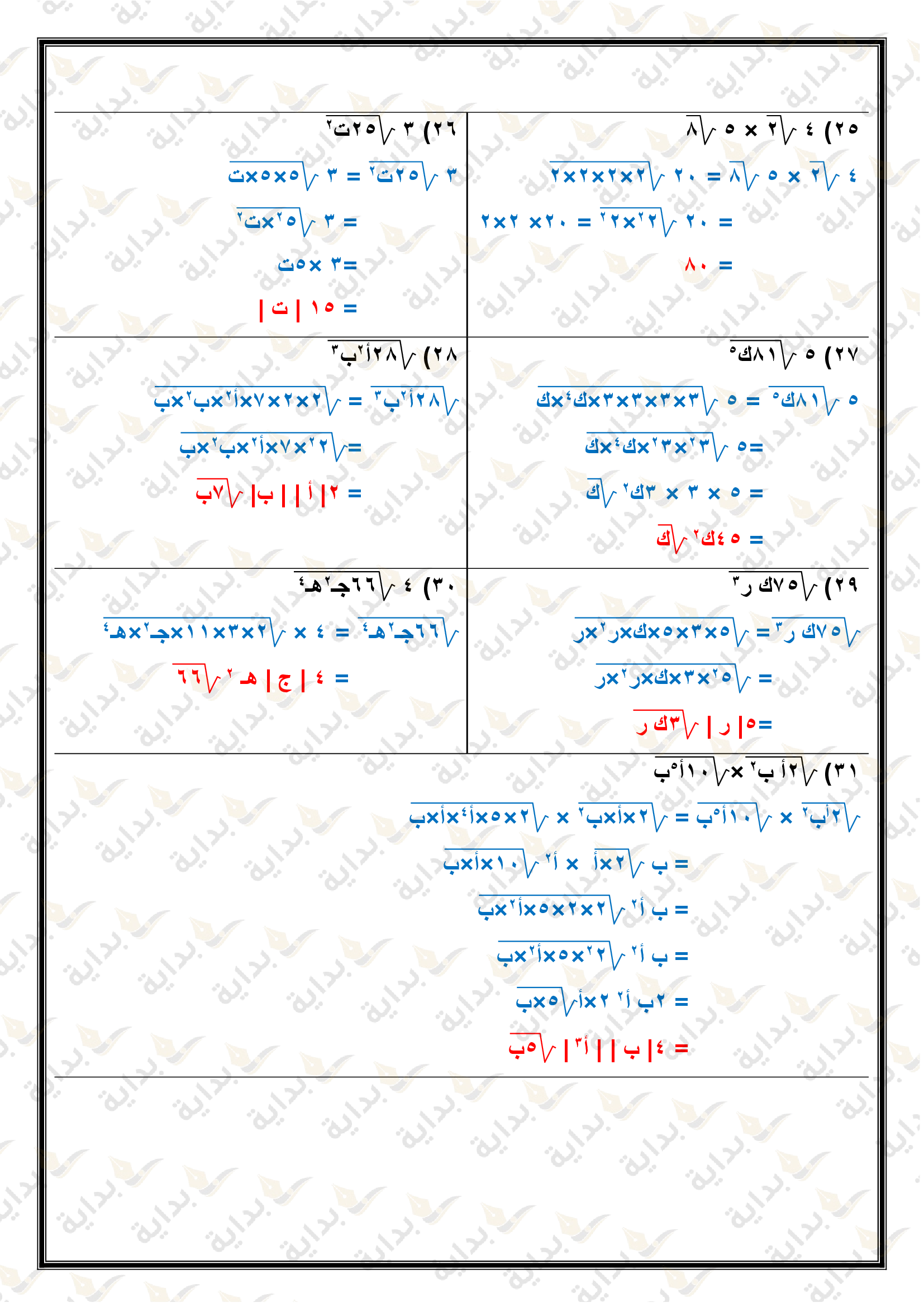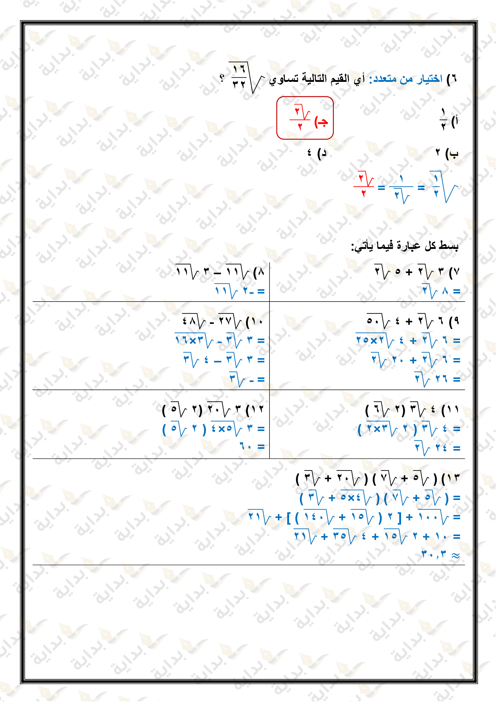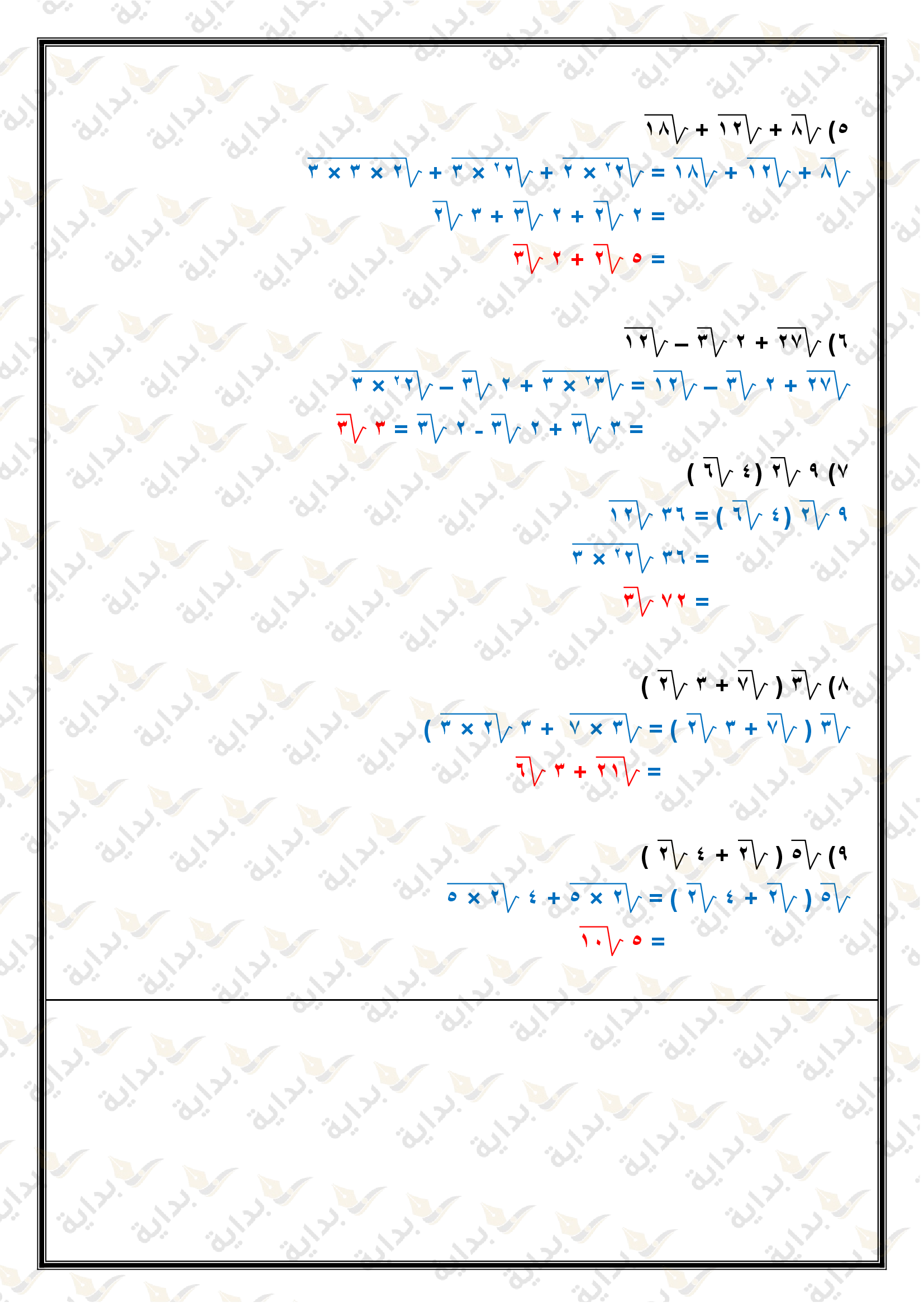 تبسيط العبارات الجذرية
