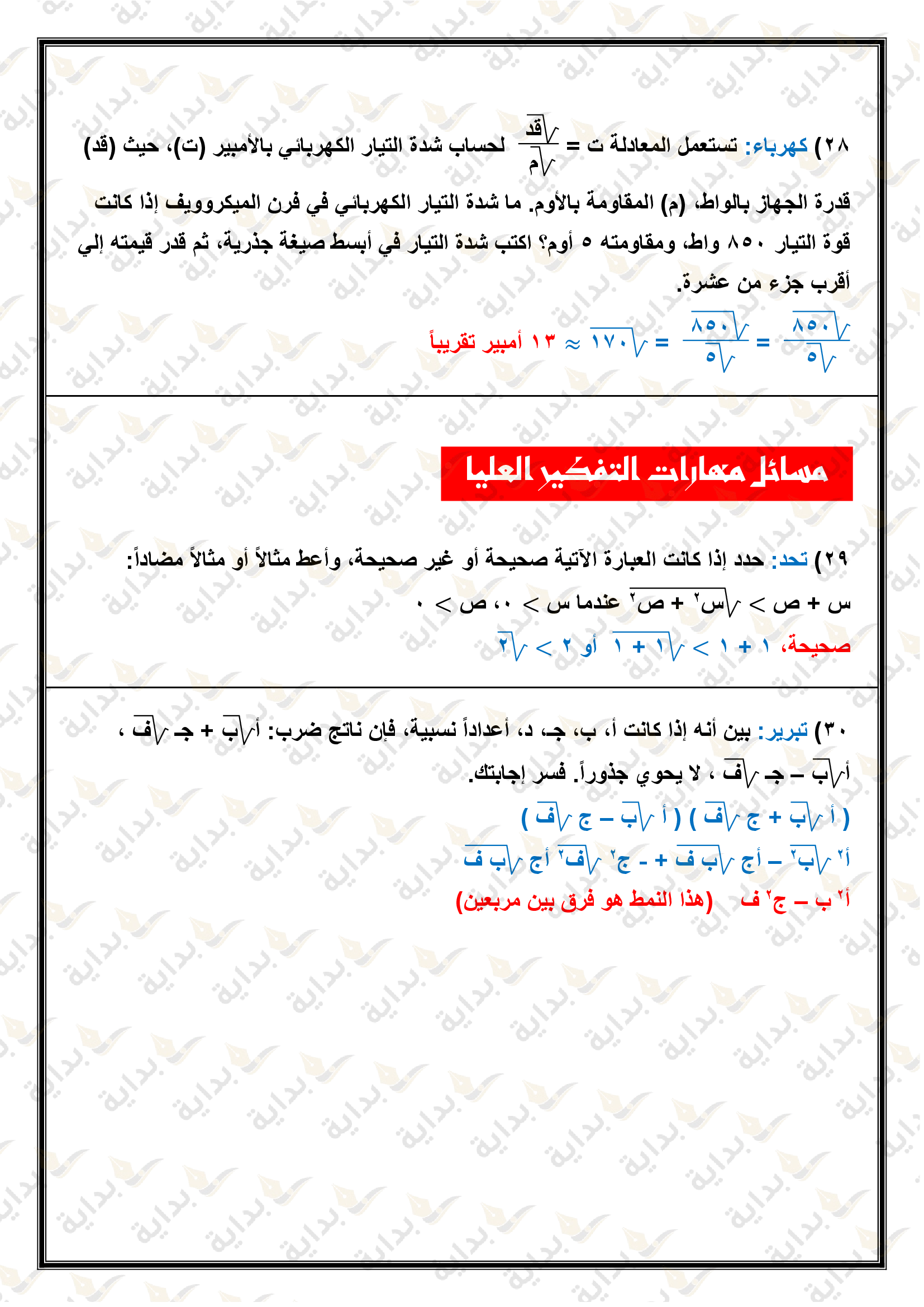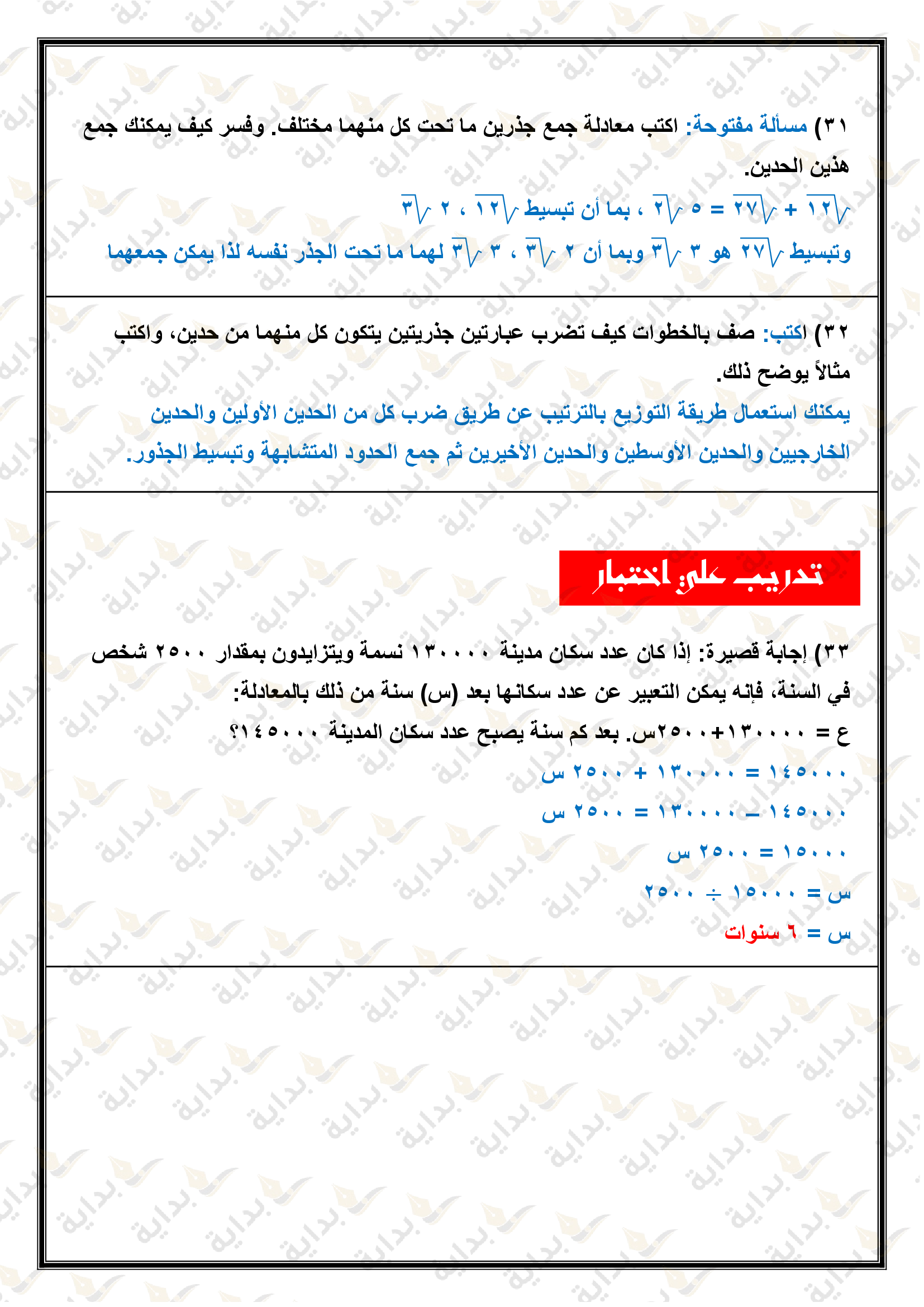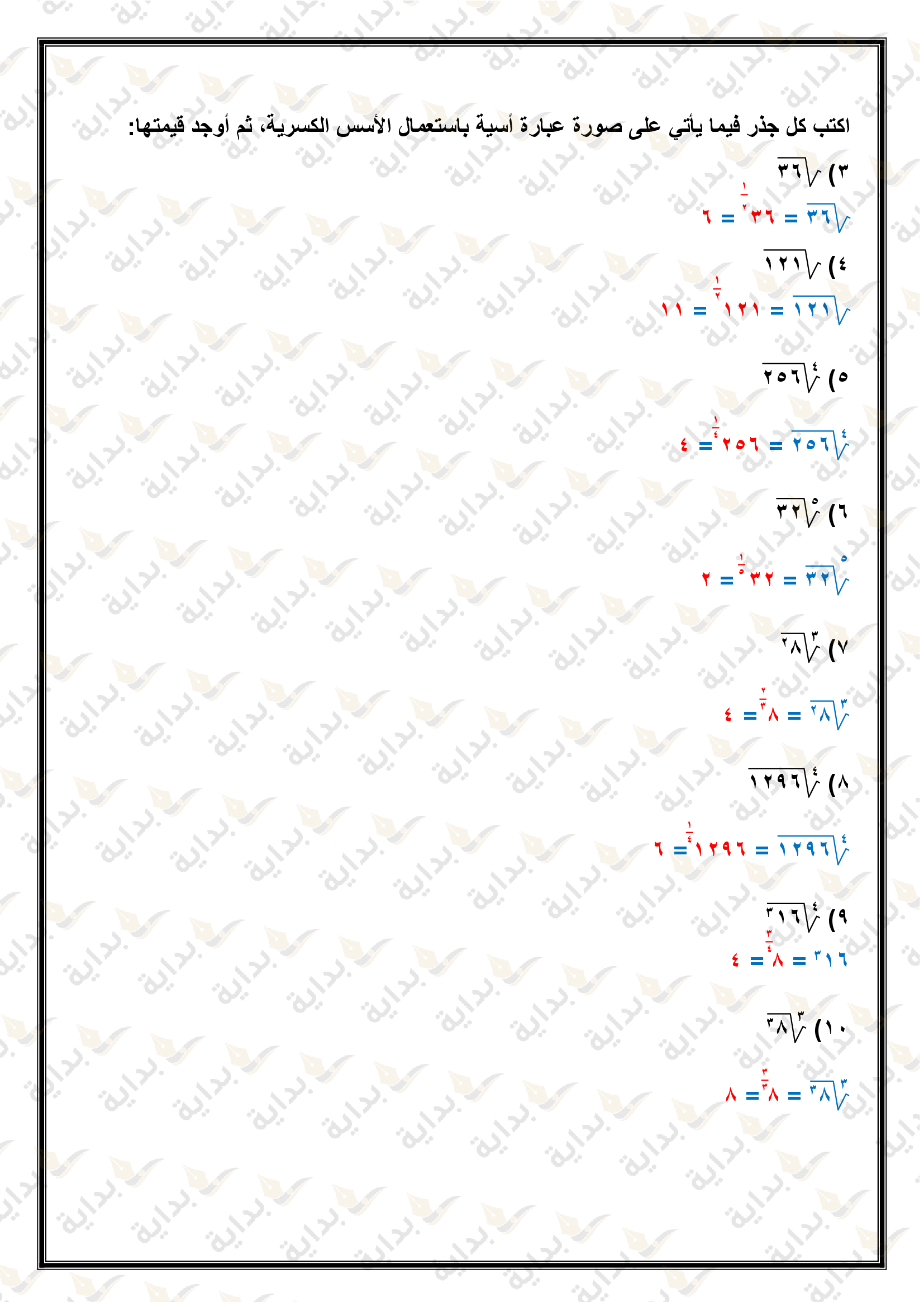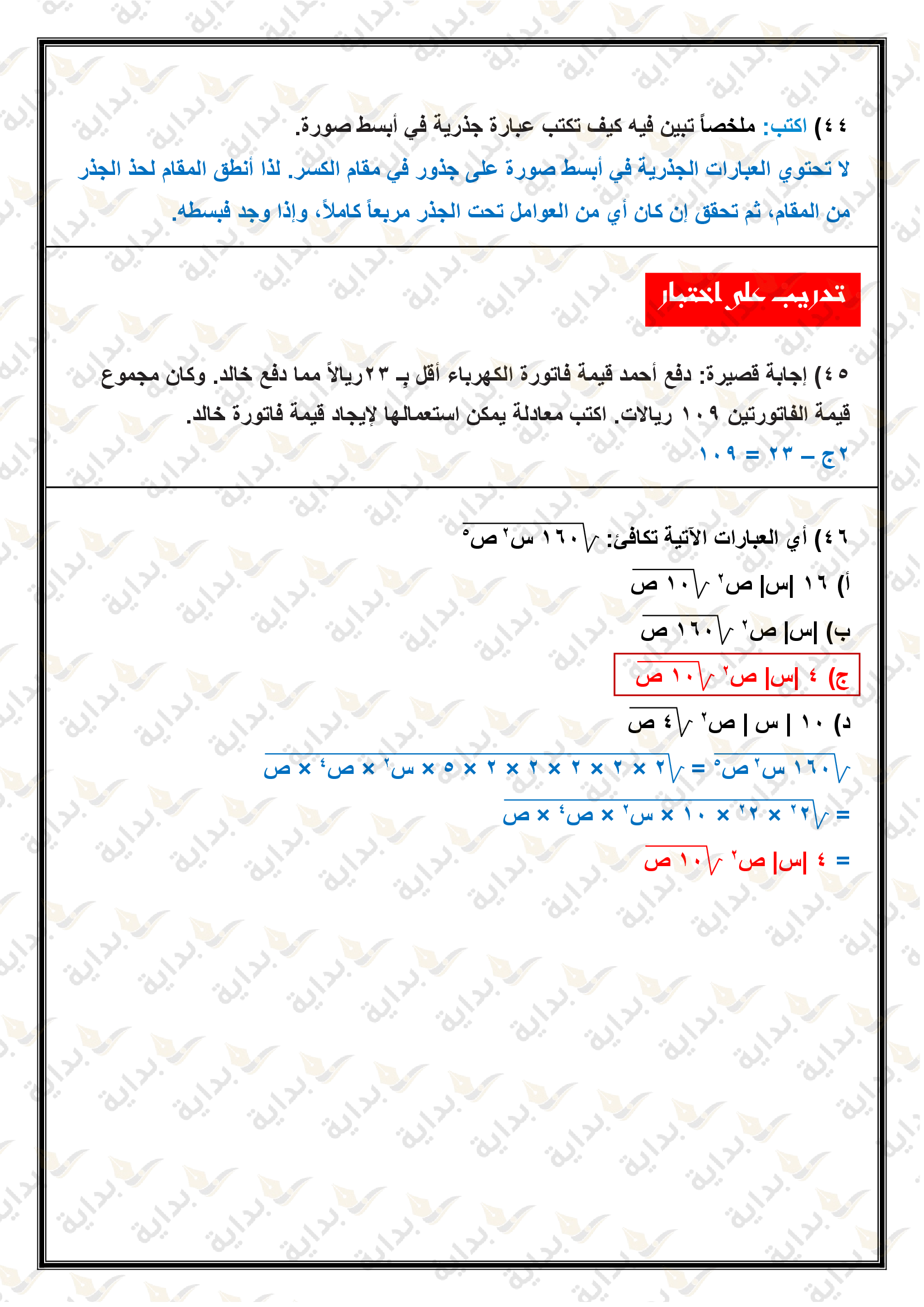 تبسيط العبارات الجذرية