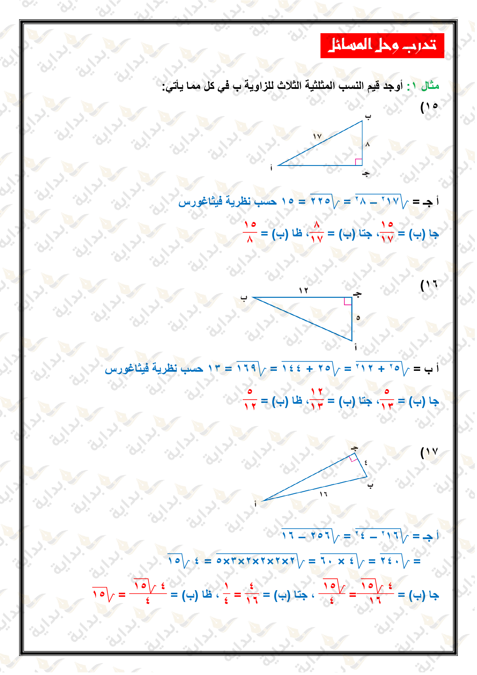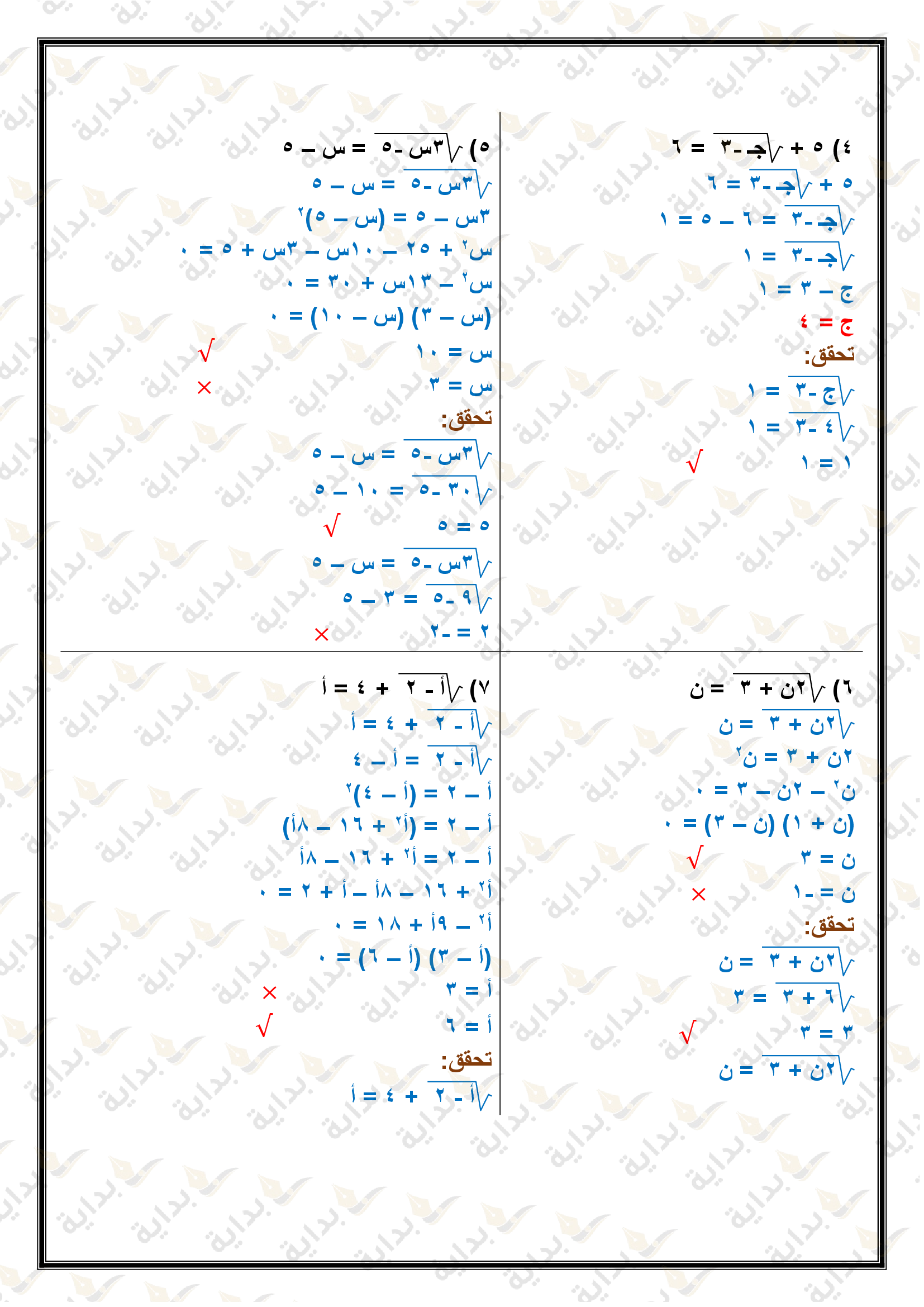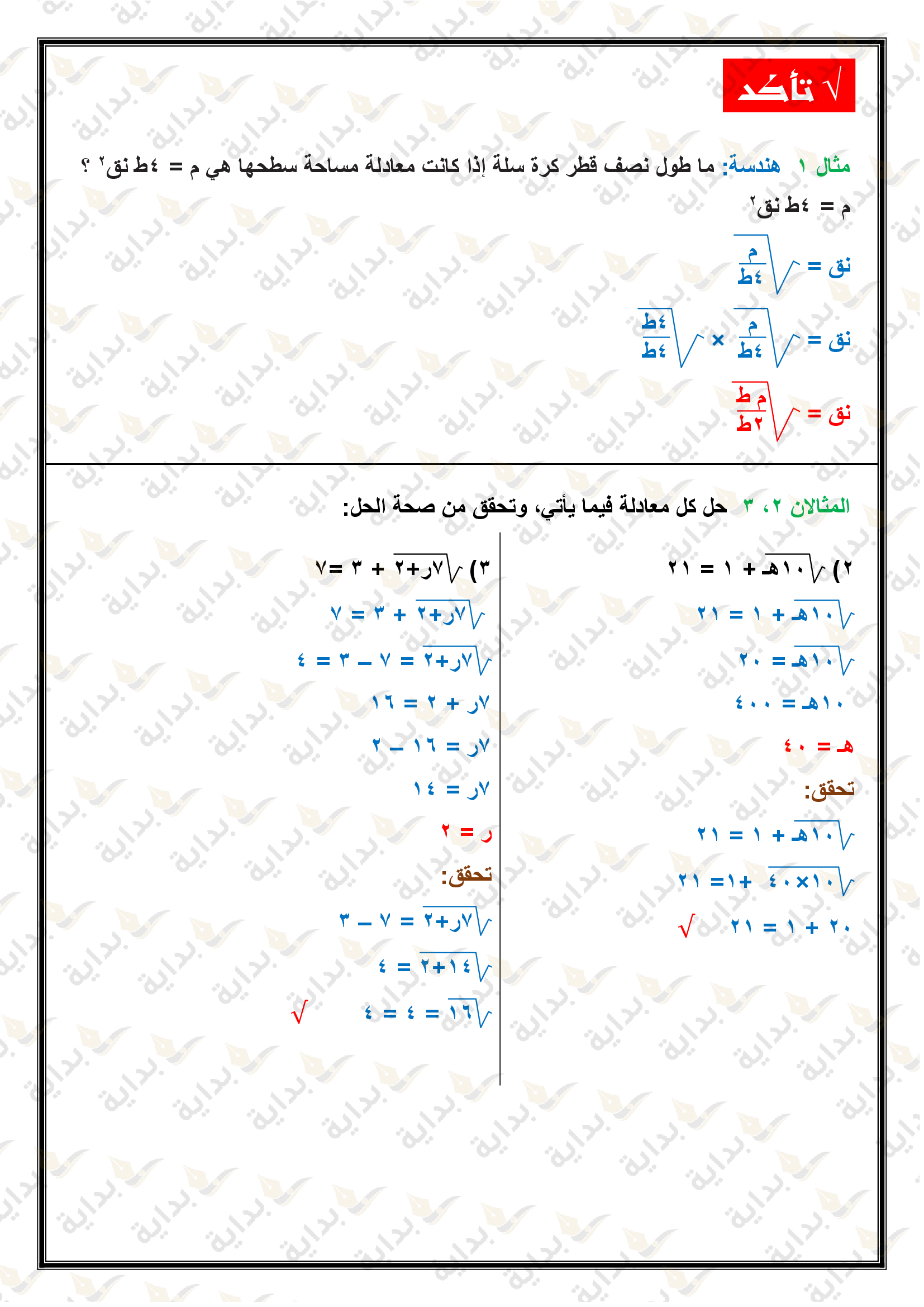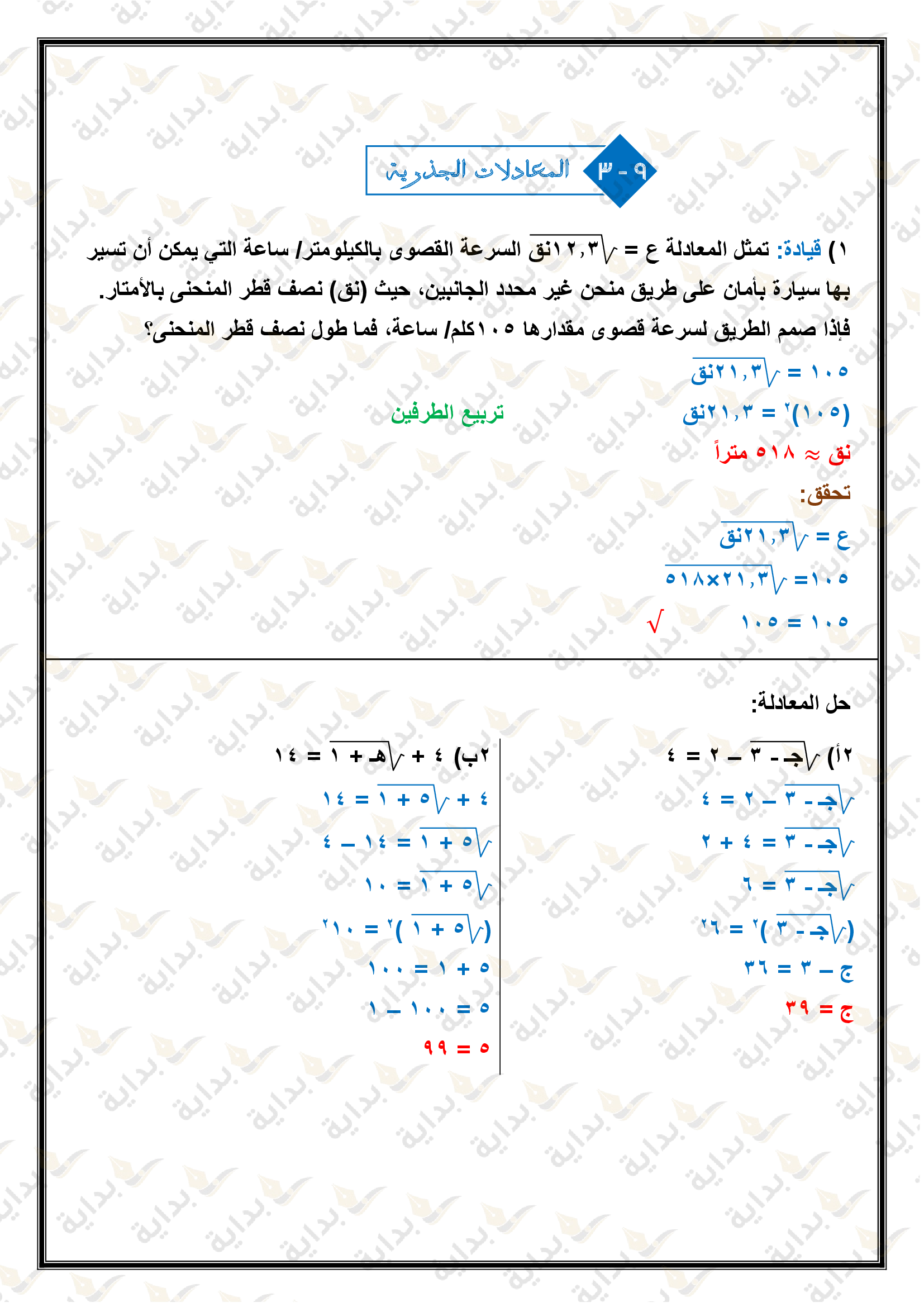 المعادلات الجذرية والمثلثات