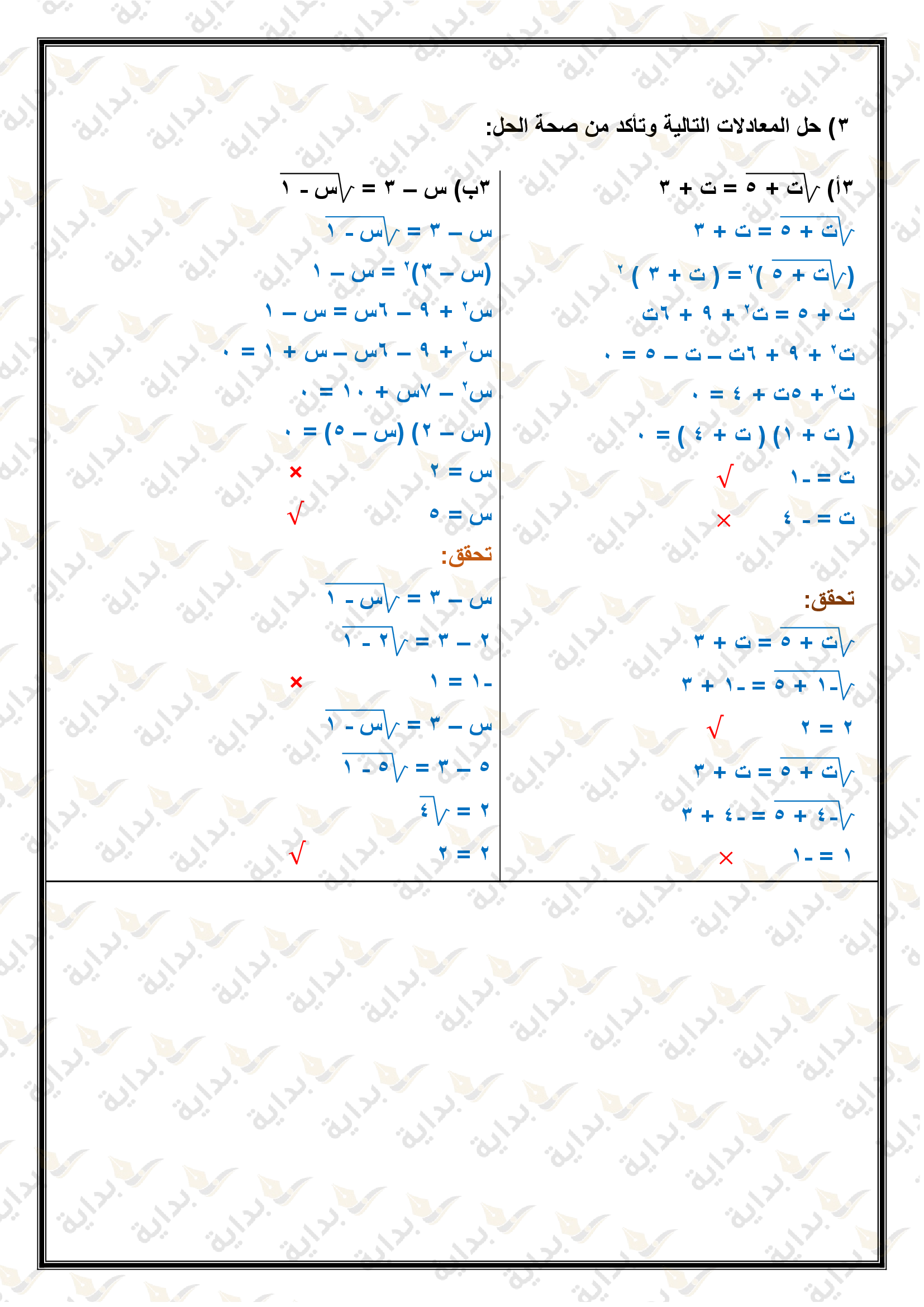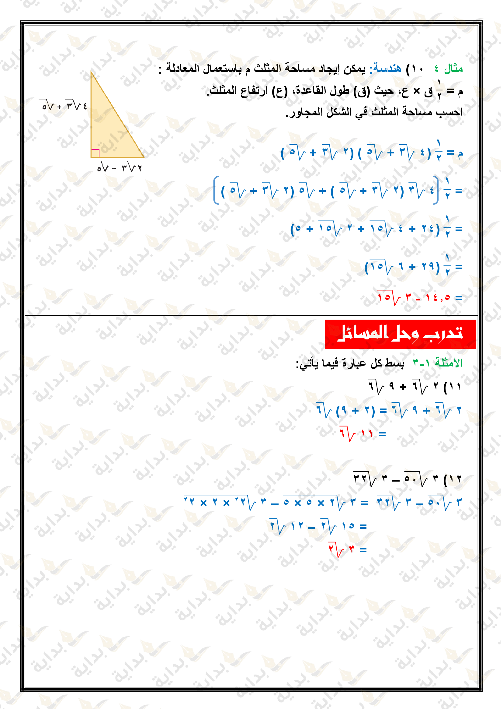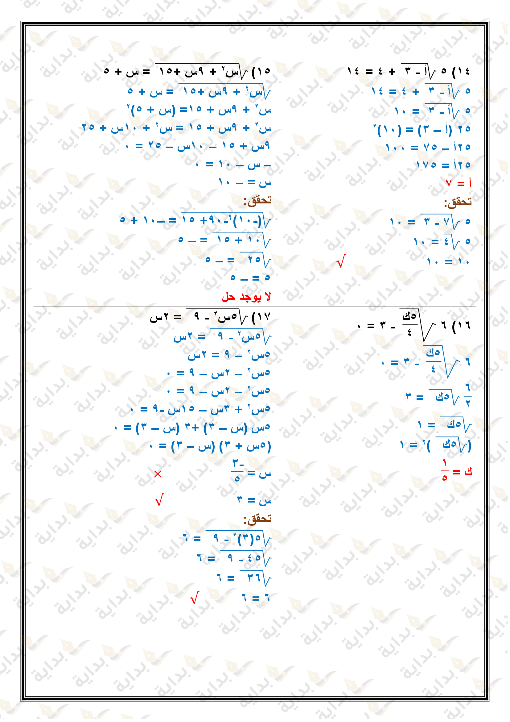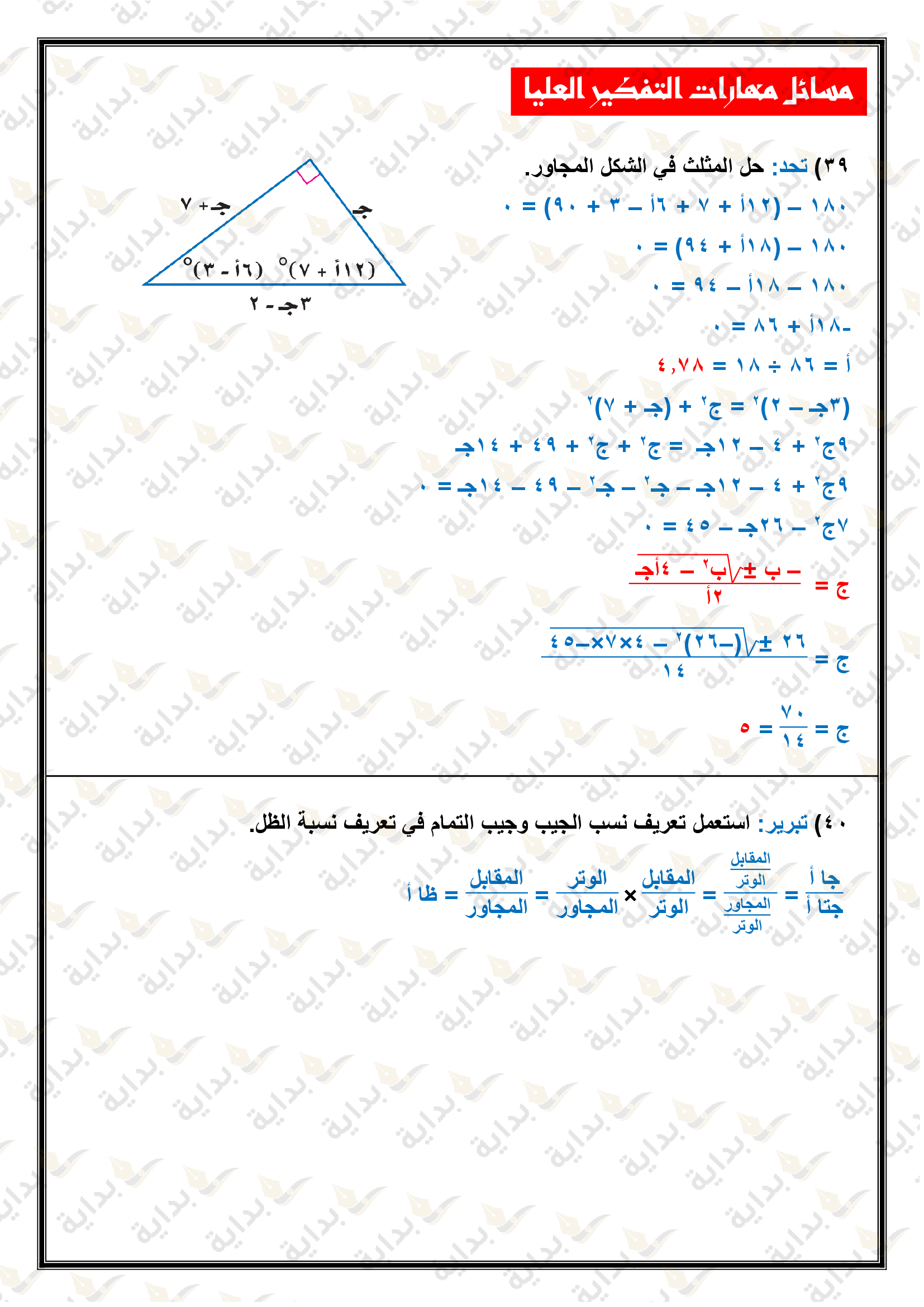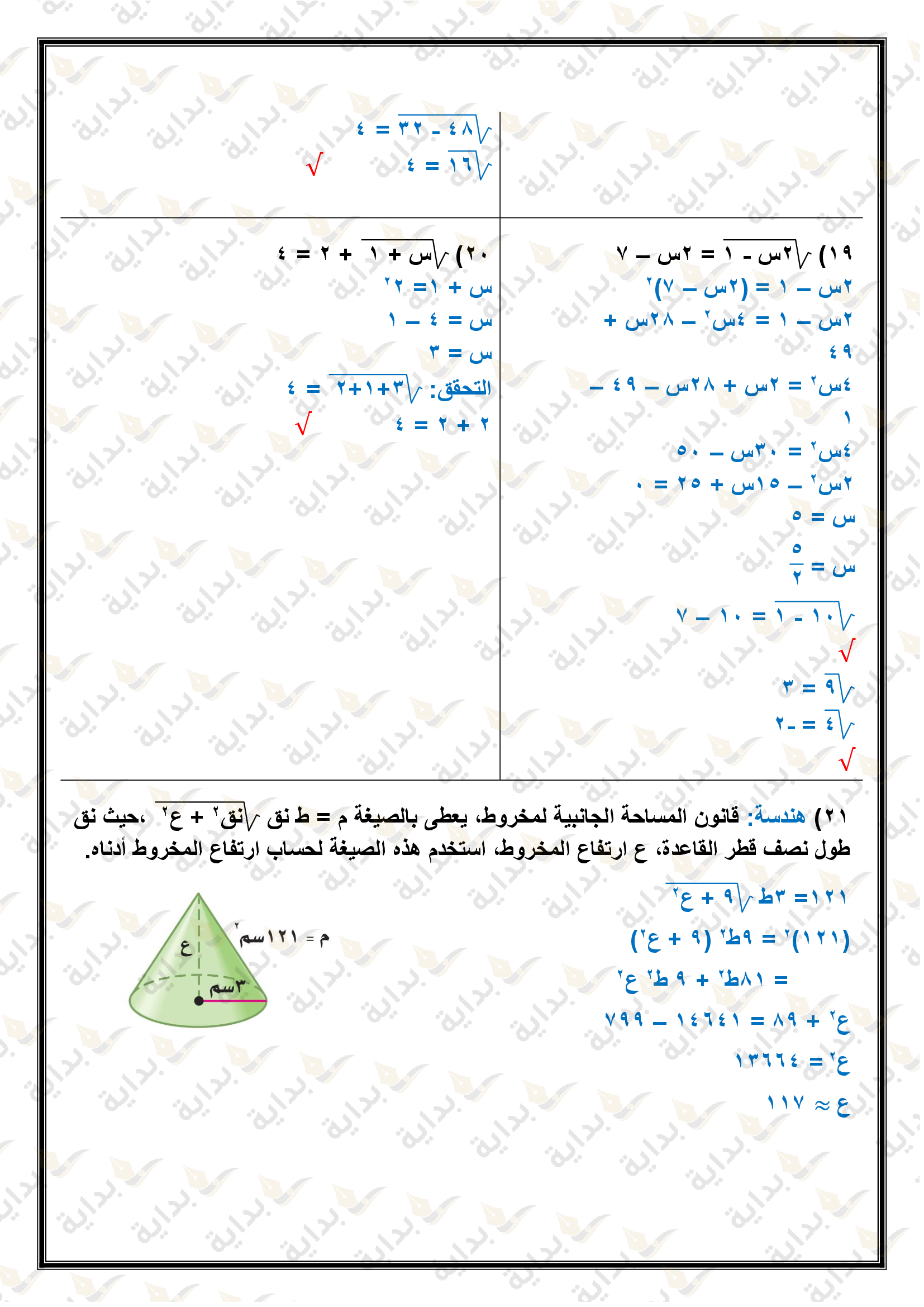 المعادلات الجذرية والمثلثات